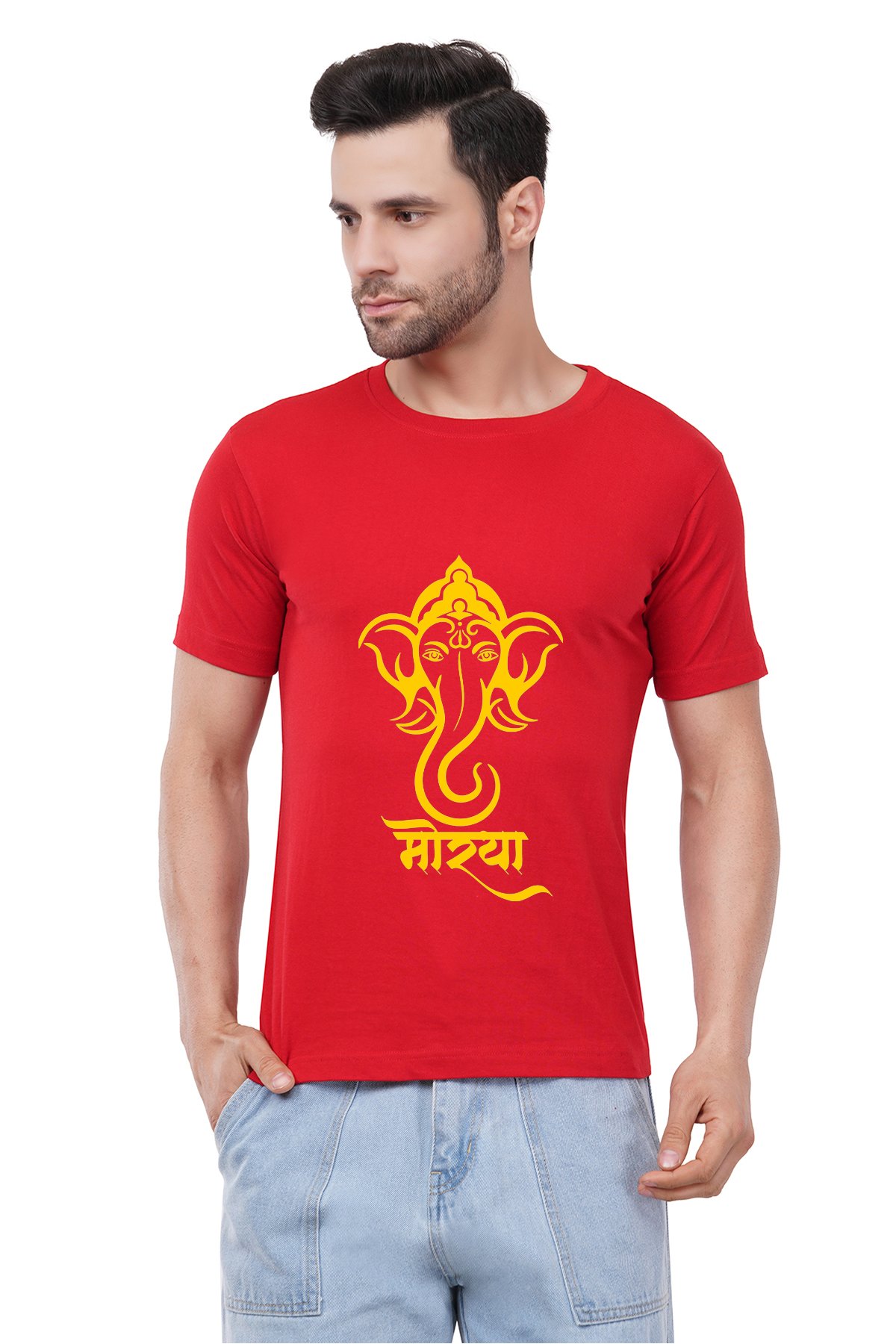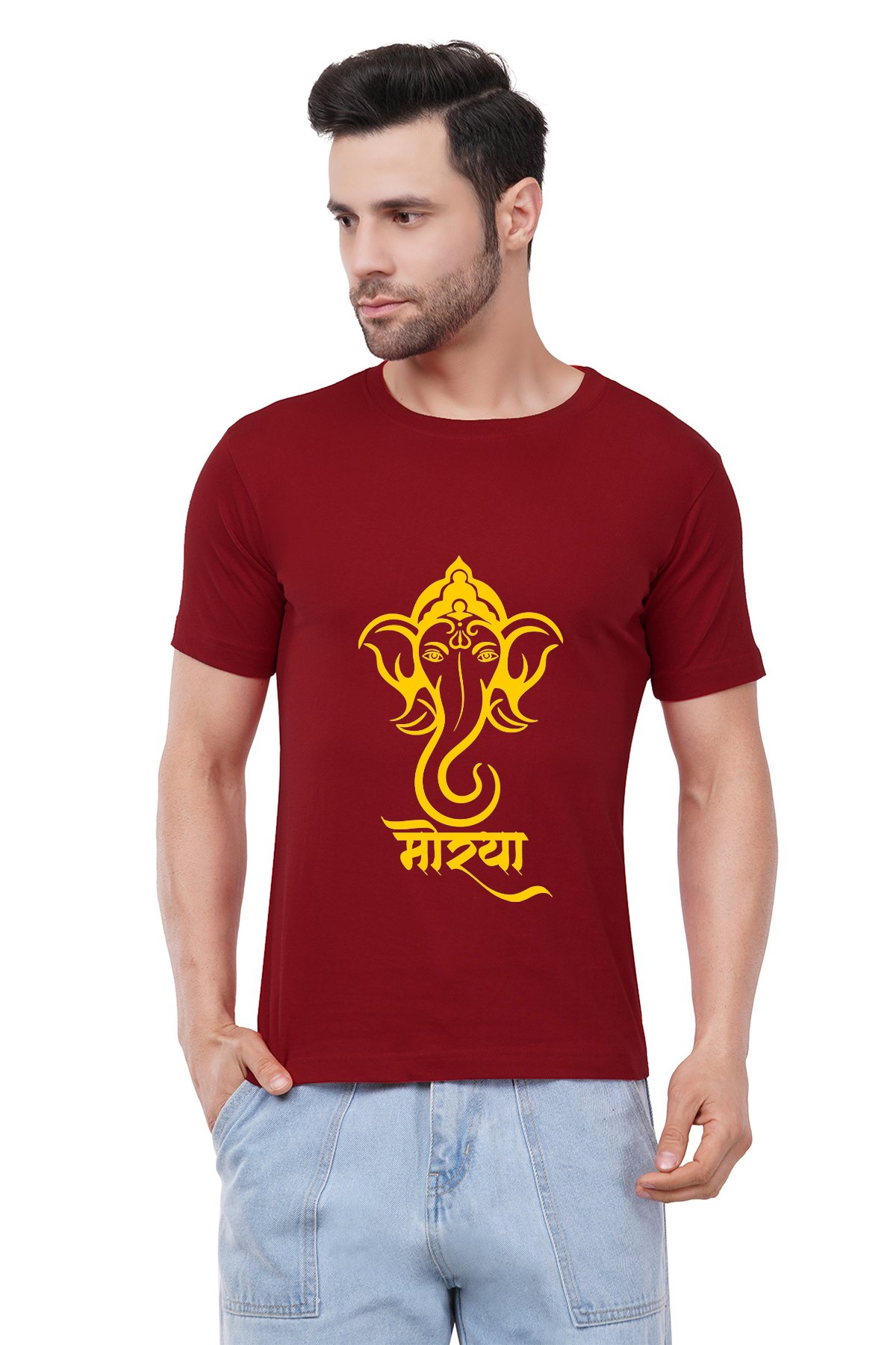 Caseria Men's Cotton Graphic Printed Half Sleeve T-Shirt - Morya Marathi
