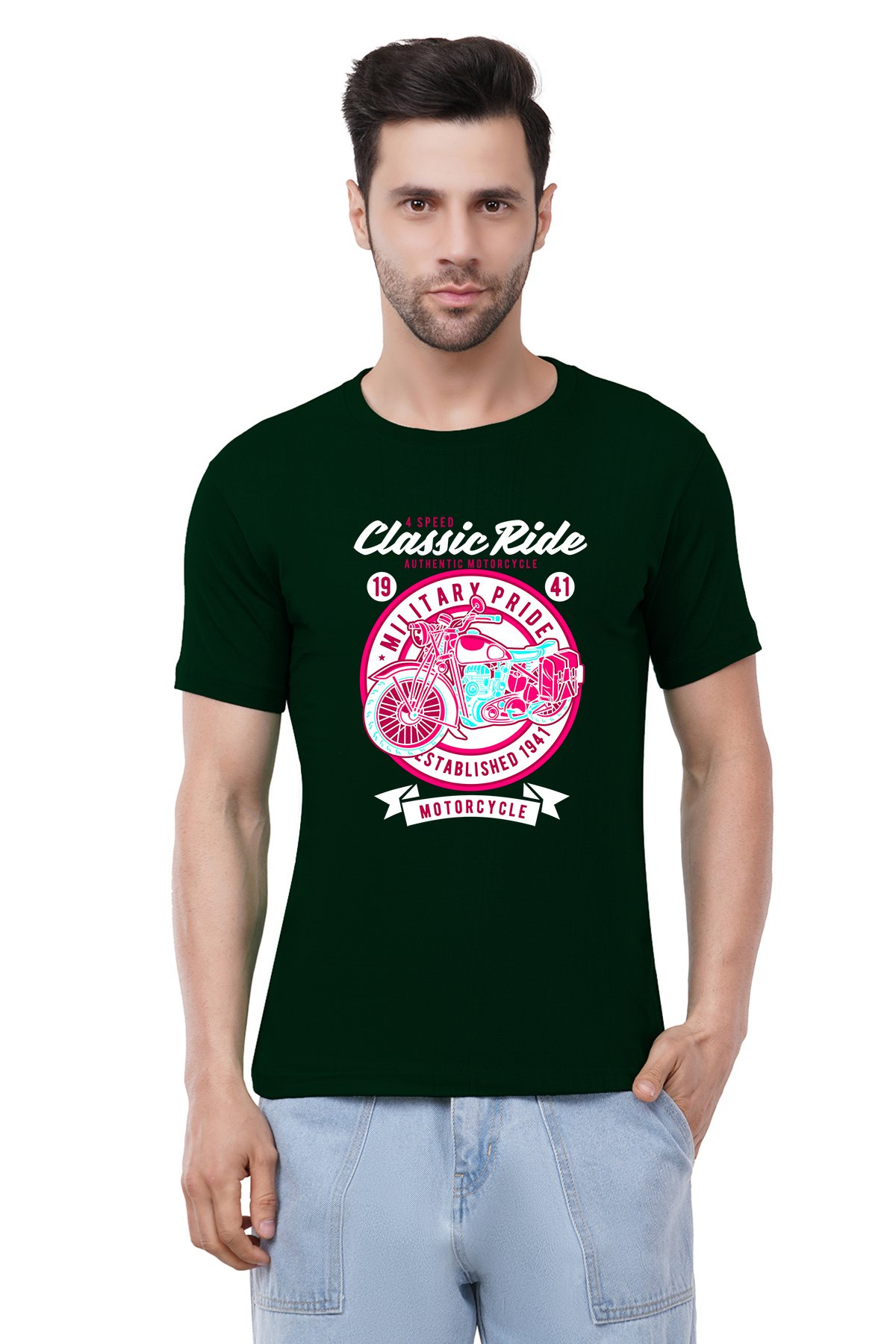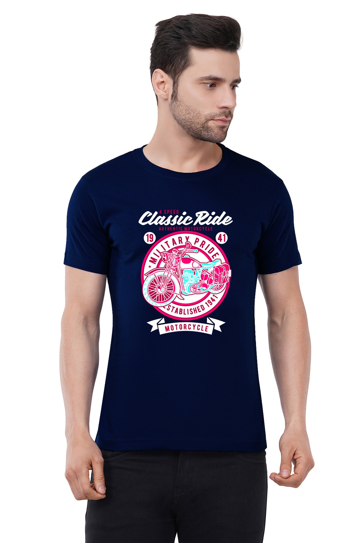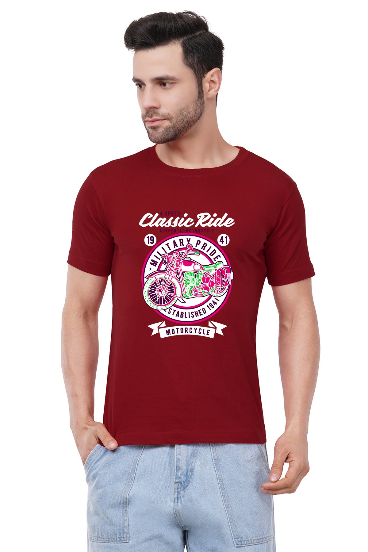 Caseria Men's Cotton Graphic Printed Half Sleeve T-Shirt - Motorcycle Classic Ride