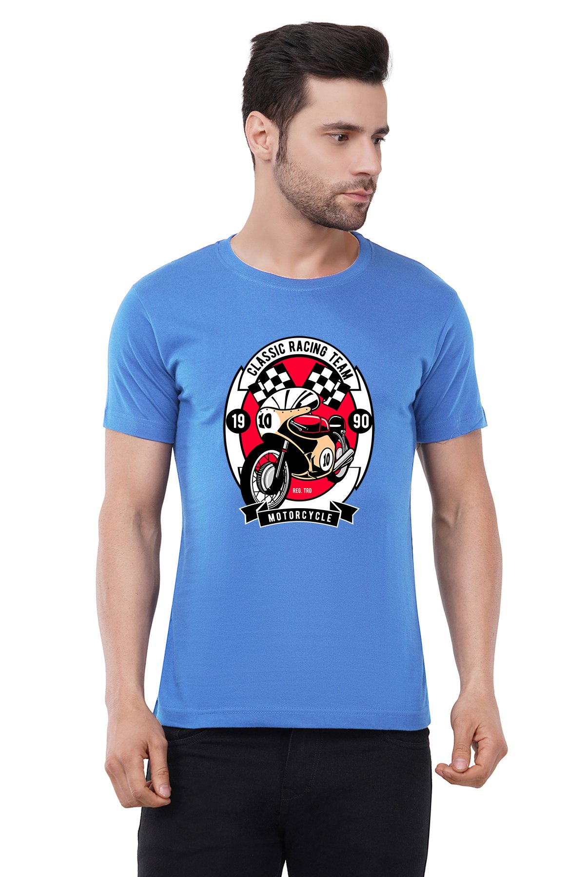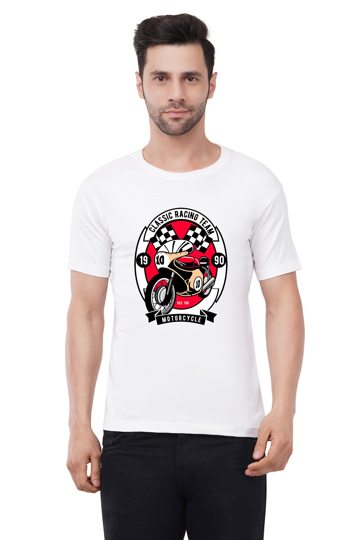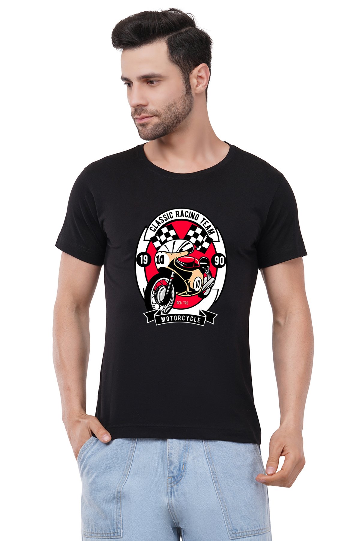 Caseria Men's Cotton Graphic Printed Half Sleeve T-Shirt - Motorcycle Racing