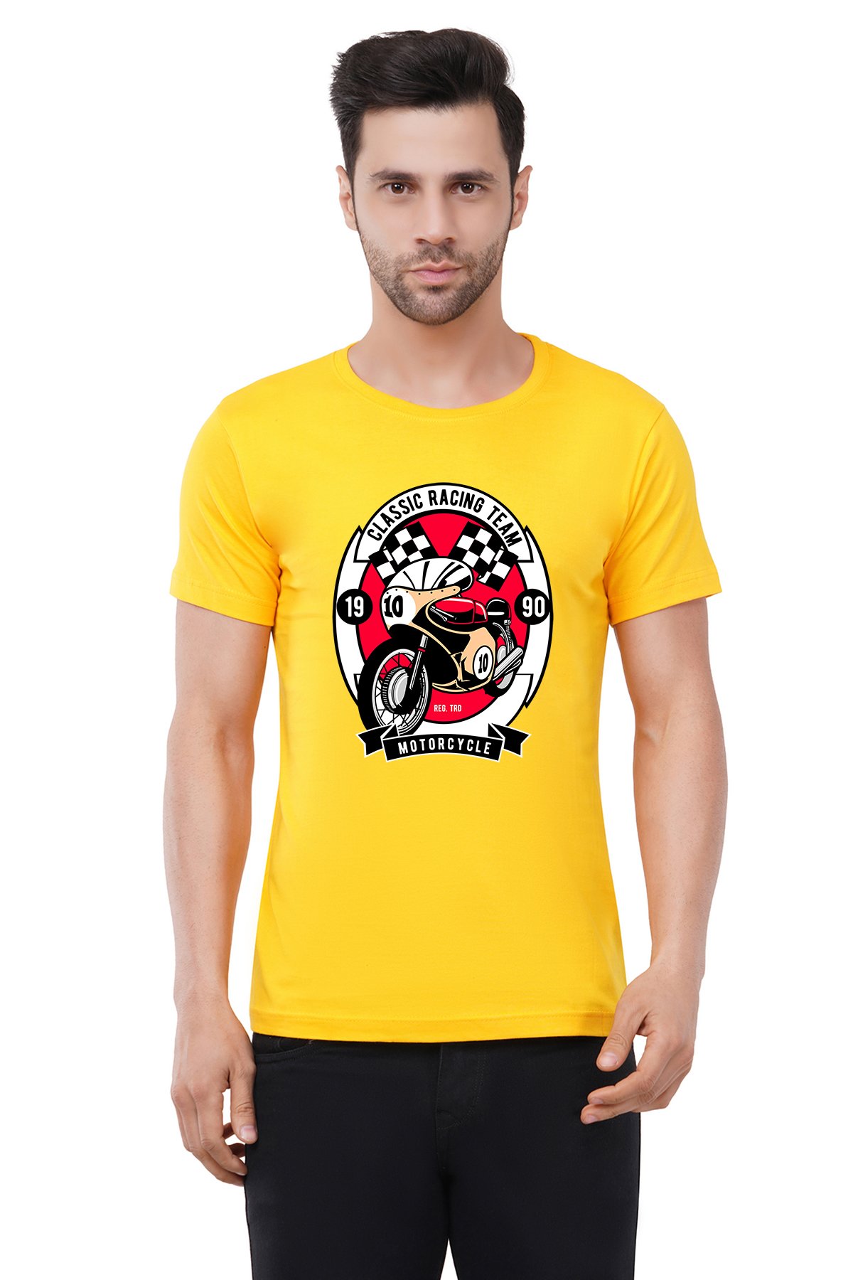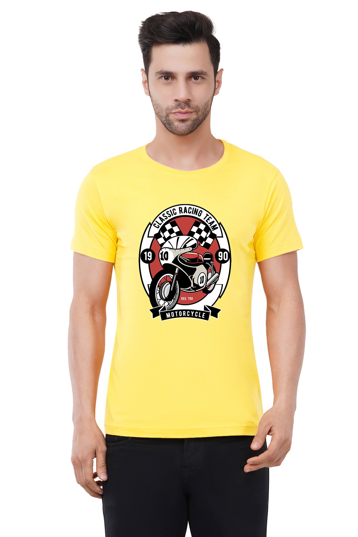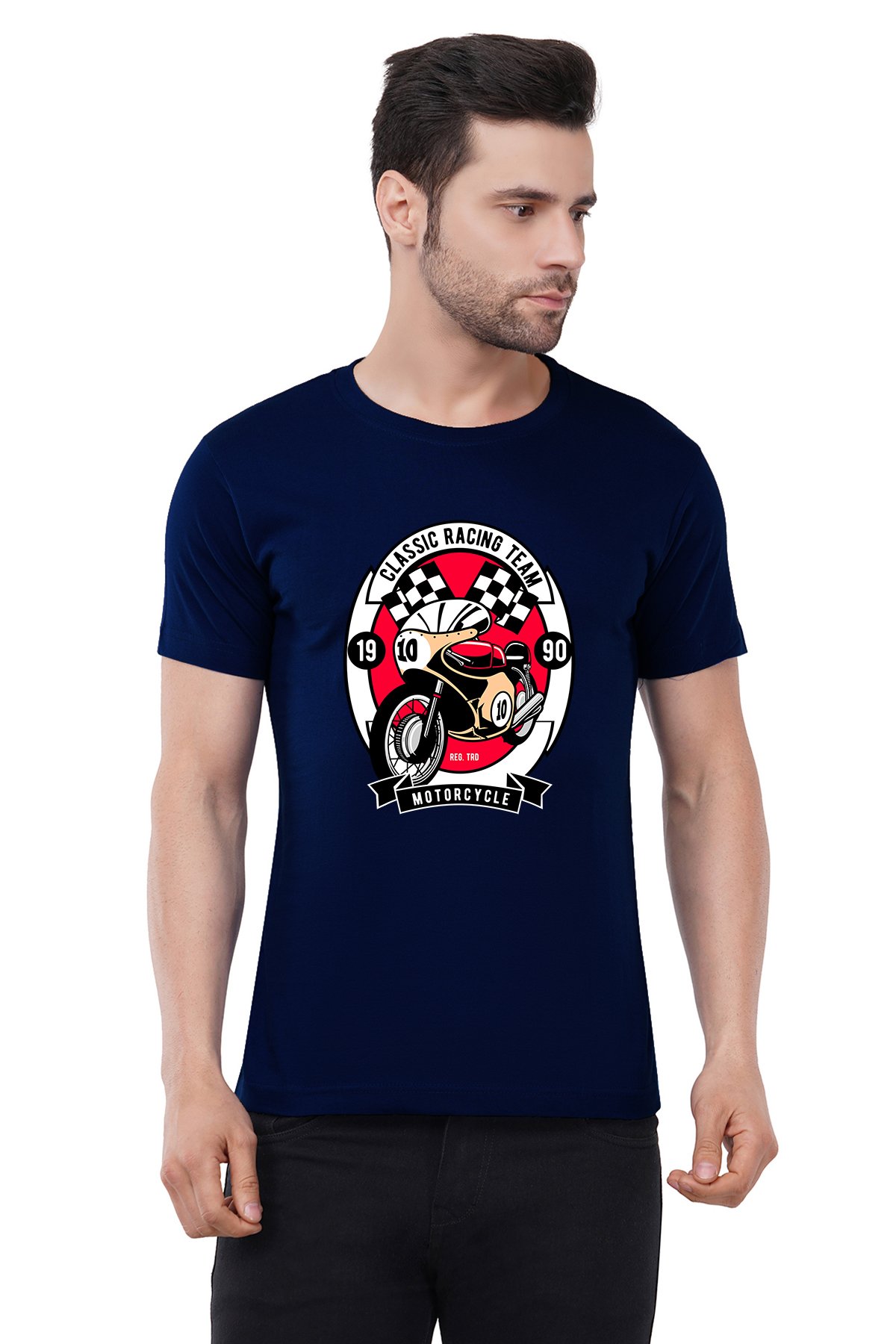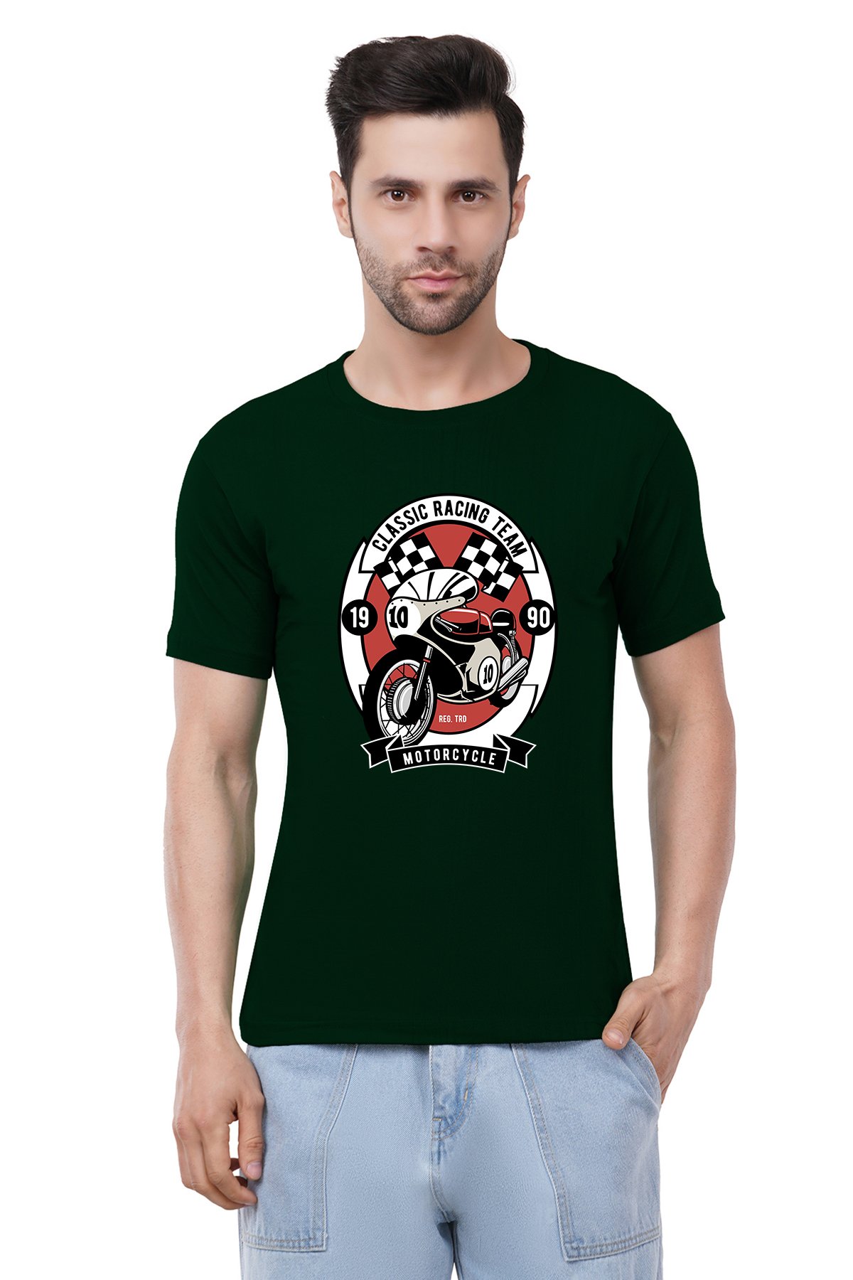 Caseria Men's Cotton Graphic Printed Half Sleeve T-Shirt - Motorcycle Racing