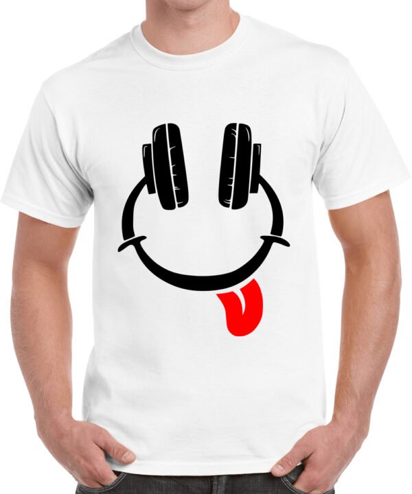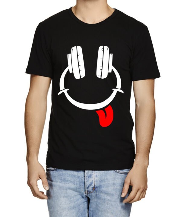 Caseria Men's Cotton Graphic Printed Half Sleeve T-Shirt - Music Smiley