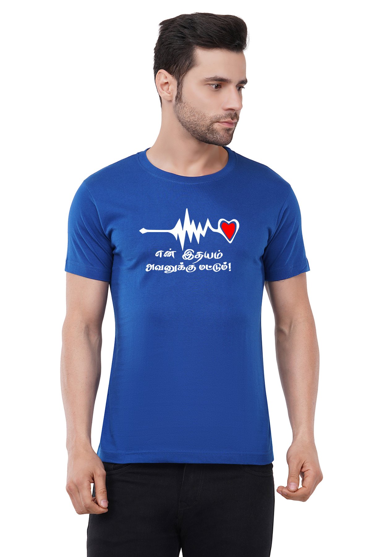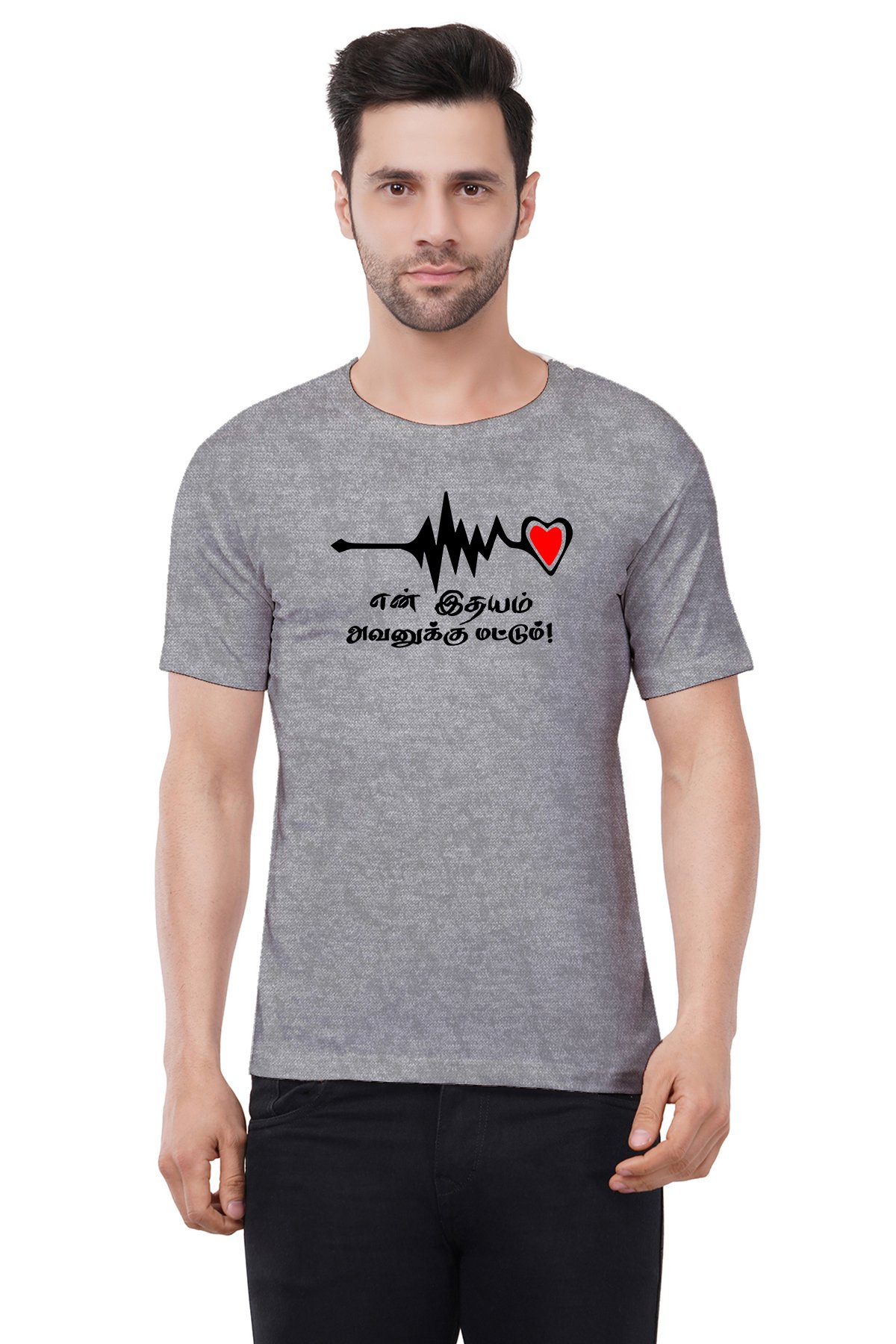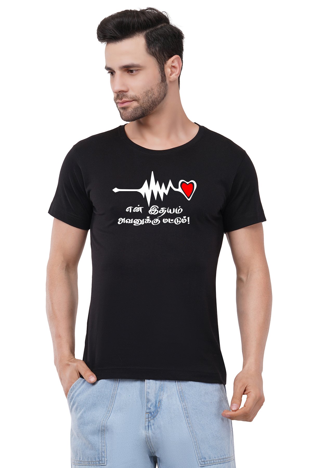 Caseria Men's Cotton Graphic Printed Half Sleeve T-Shirt - My heart is only for him! Tamil