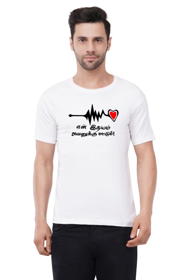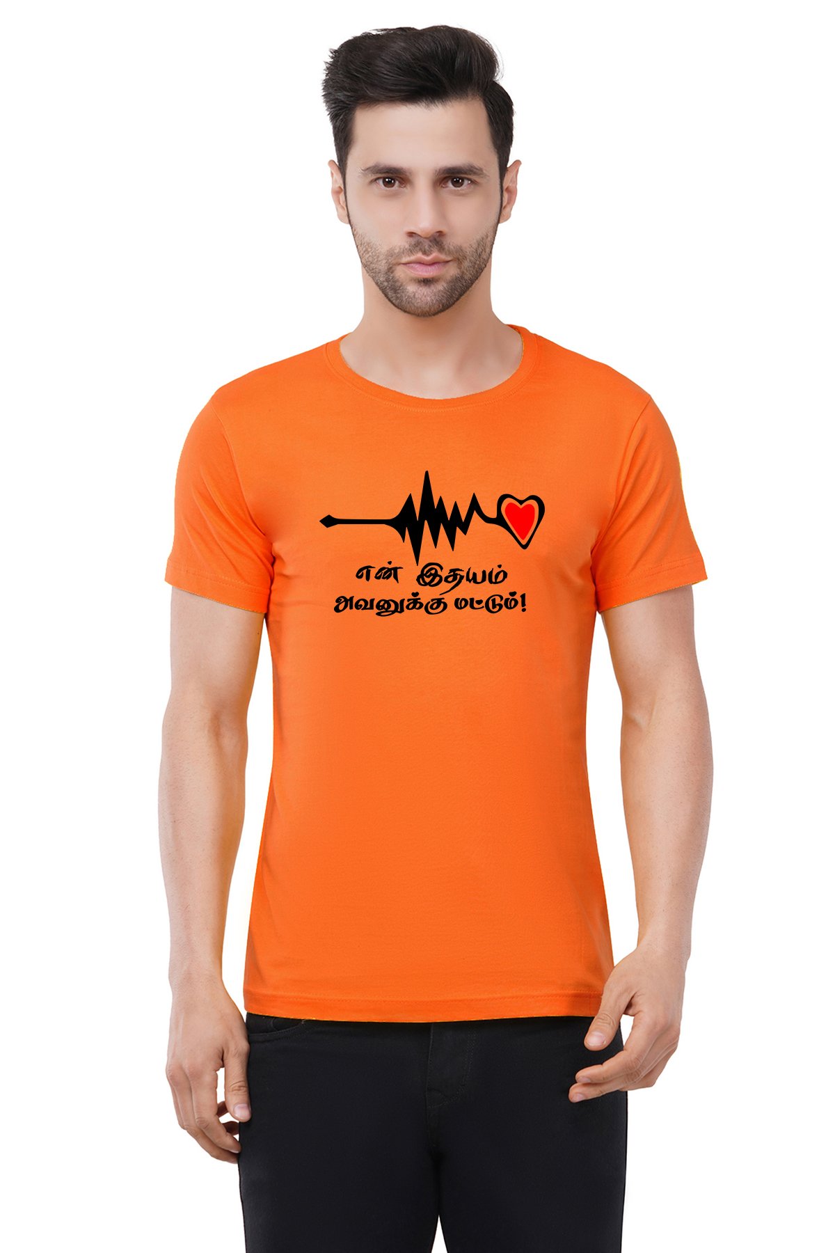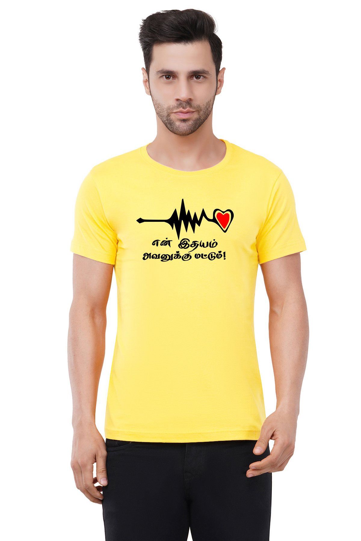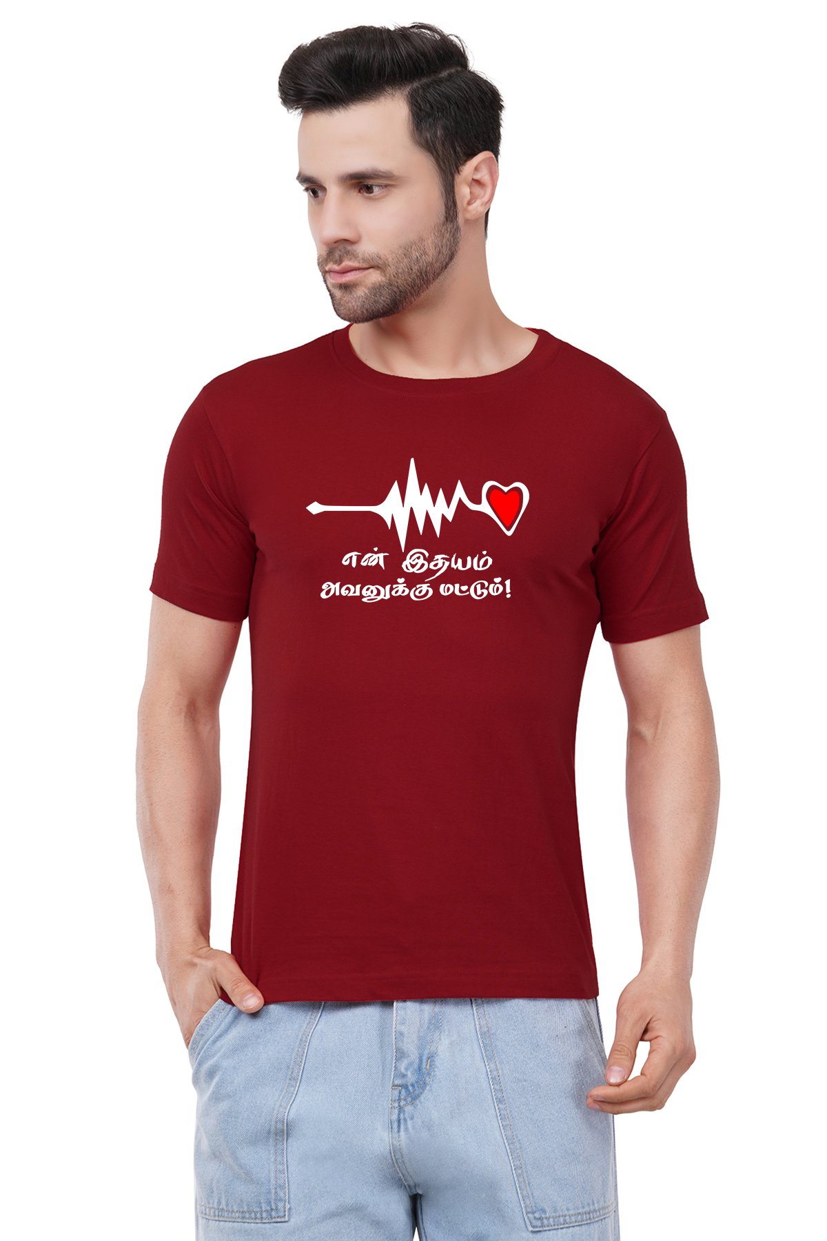 Caseria Men's Cotton Graphic Printed Half Sleeve T-Shirt - My heart is only for him! Tamil