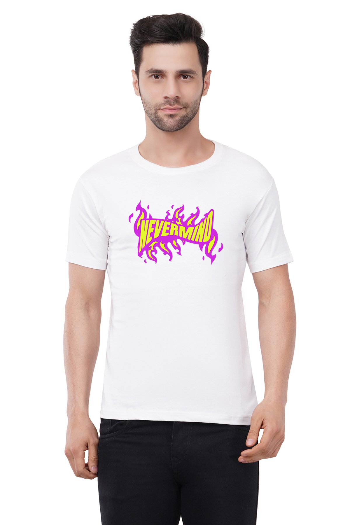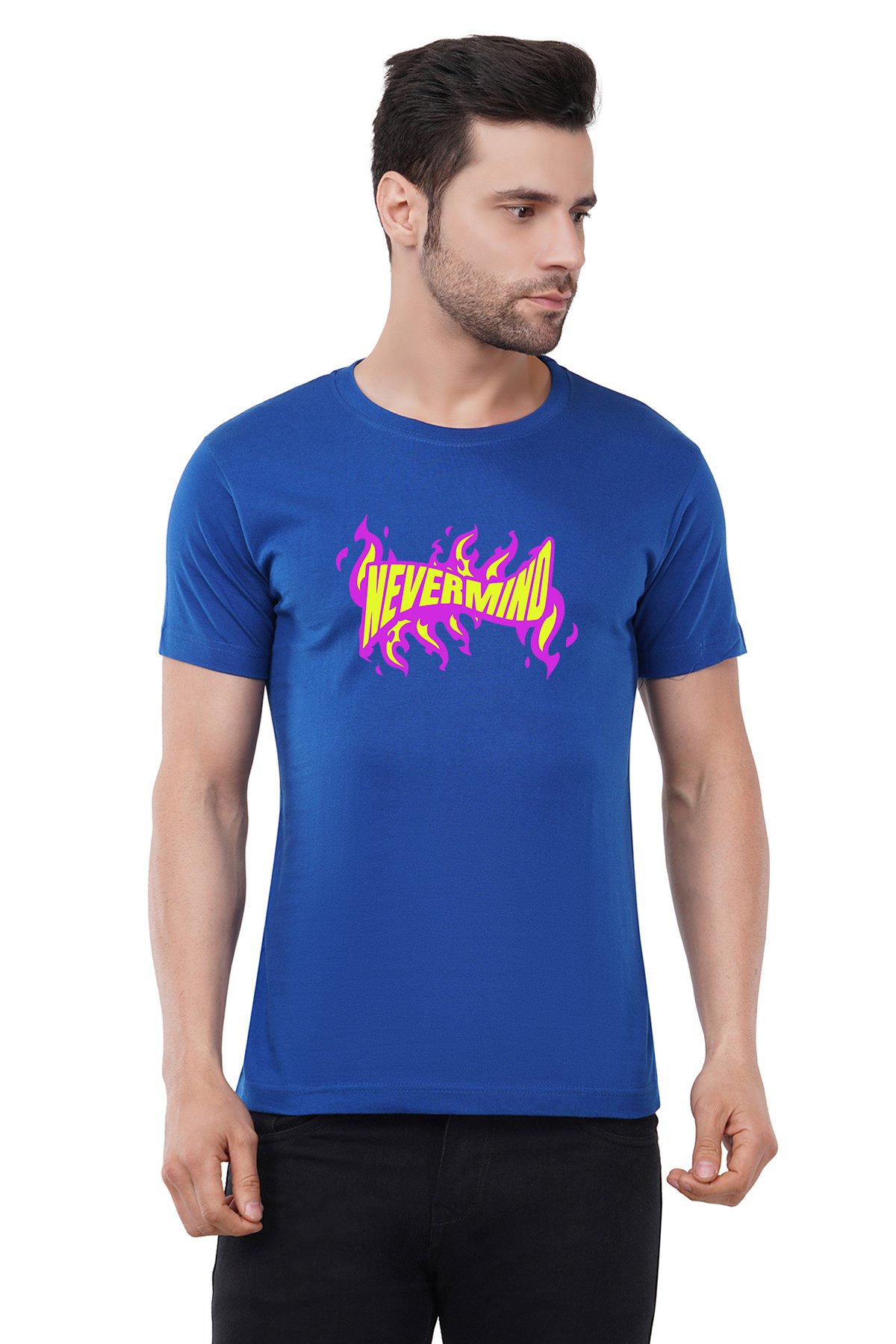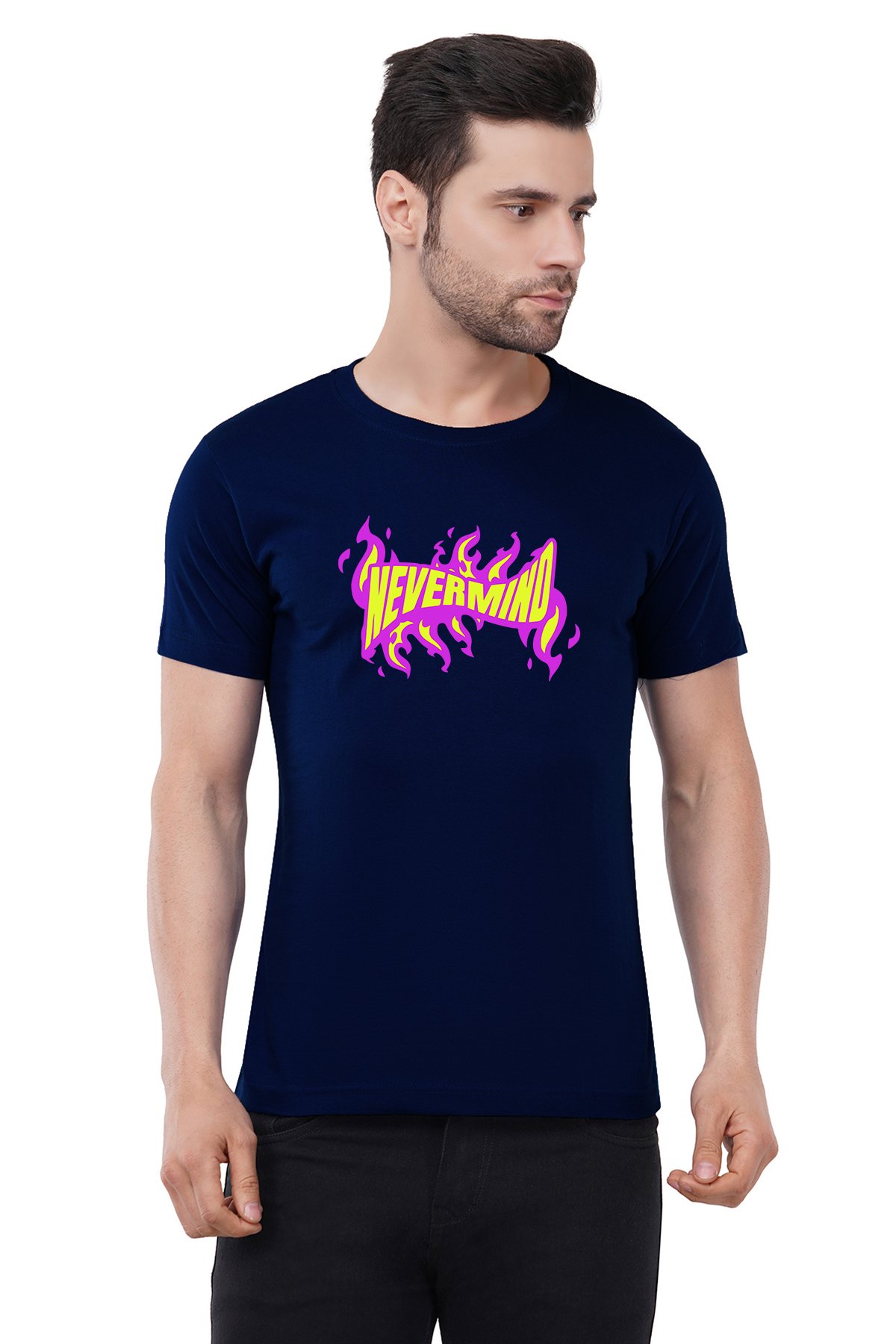 Caseria Men's Cotton Graphic Printed Half Sleeve T-Shirt - Nevermind