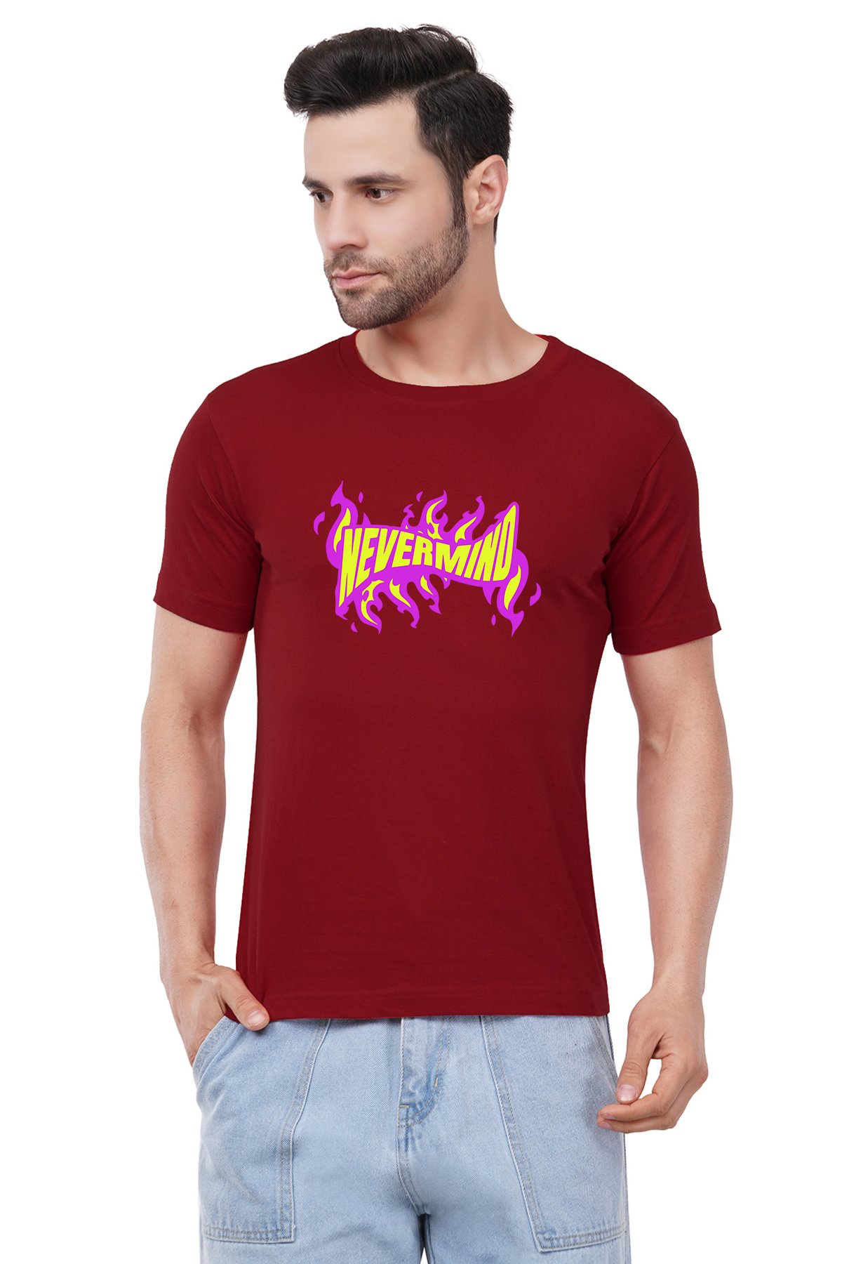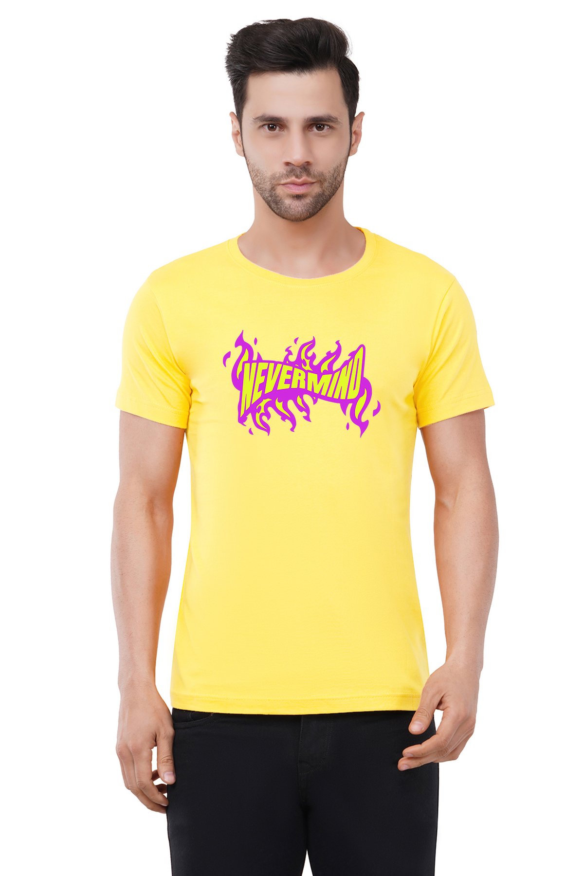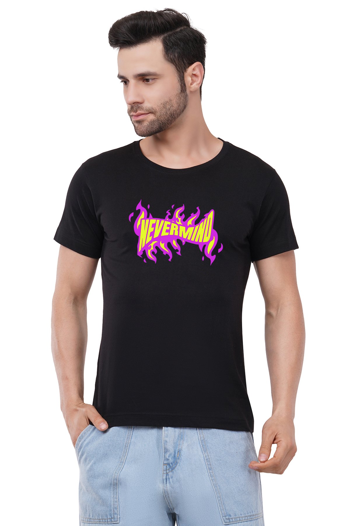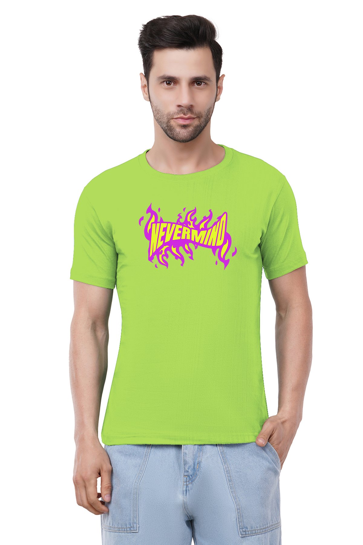 Caseria Men's Cotton Graphic Printed Half Sleeve T-Shirt - Nevermind