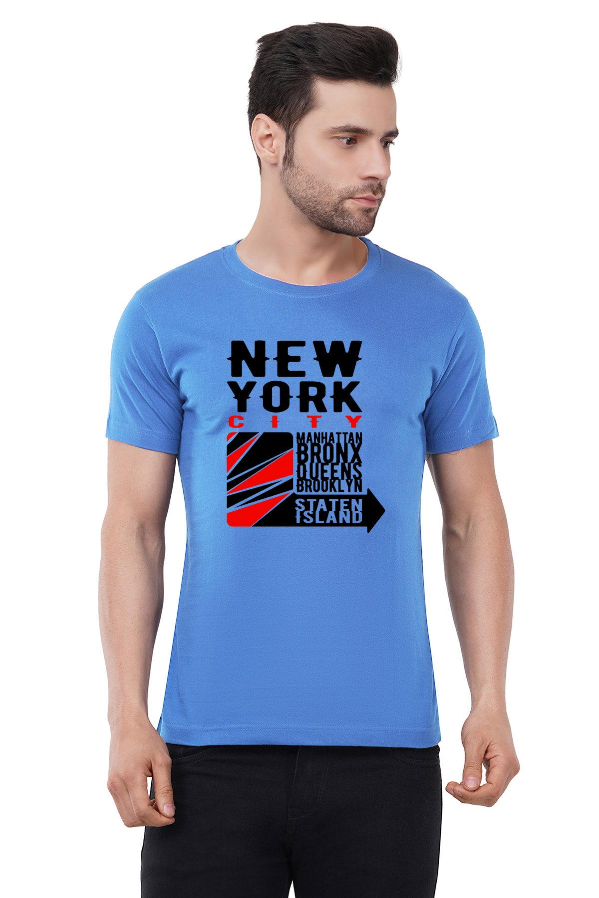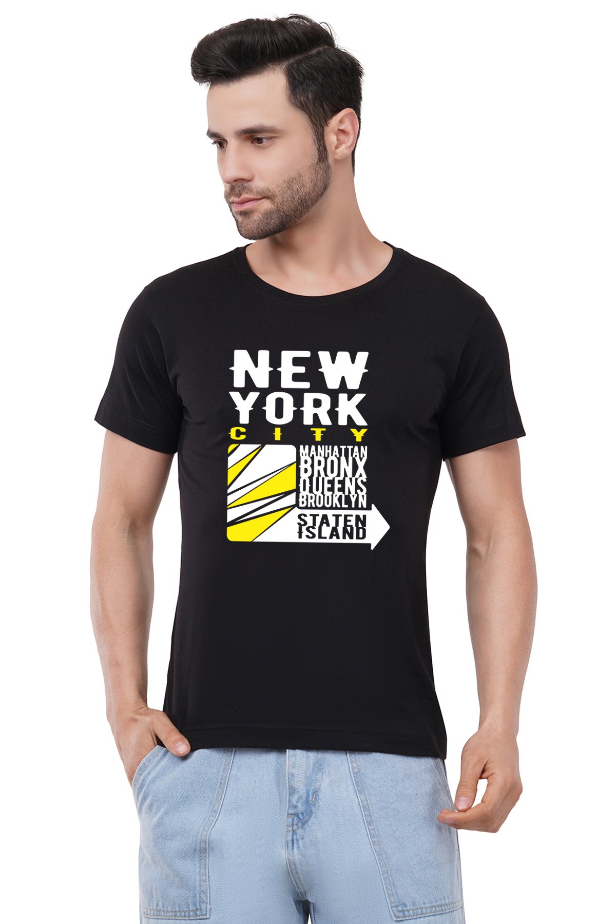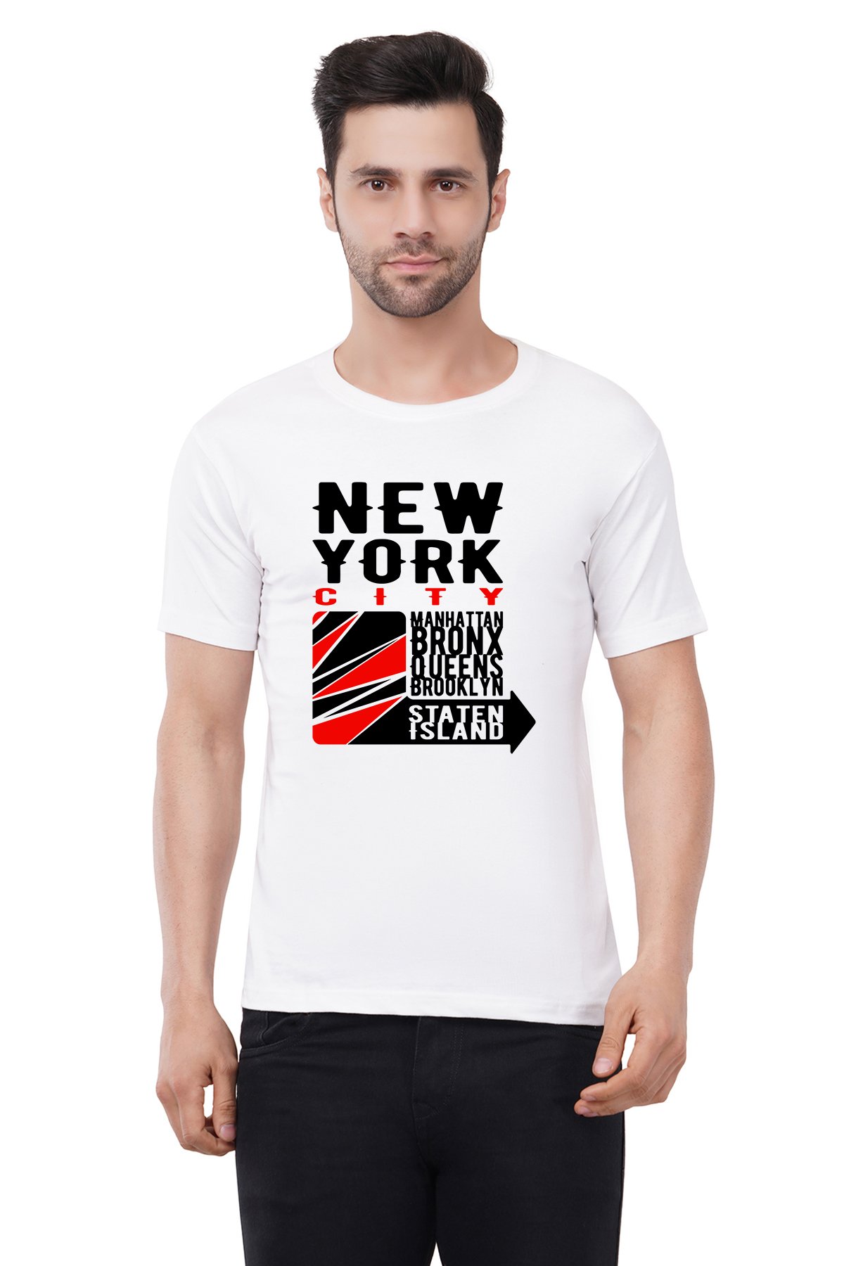 Caseria Men's Cotton Graphic Printed Half Sleeve T-Shirt - New York Island