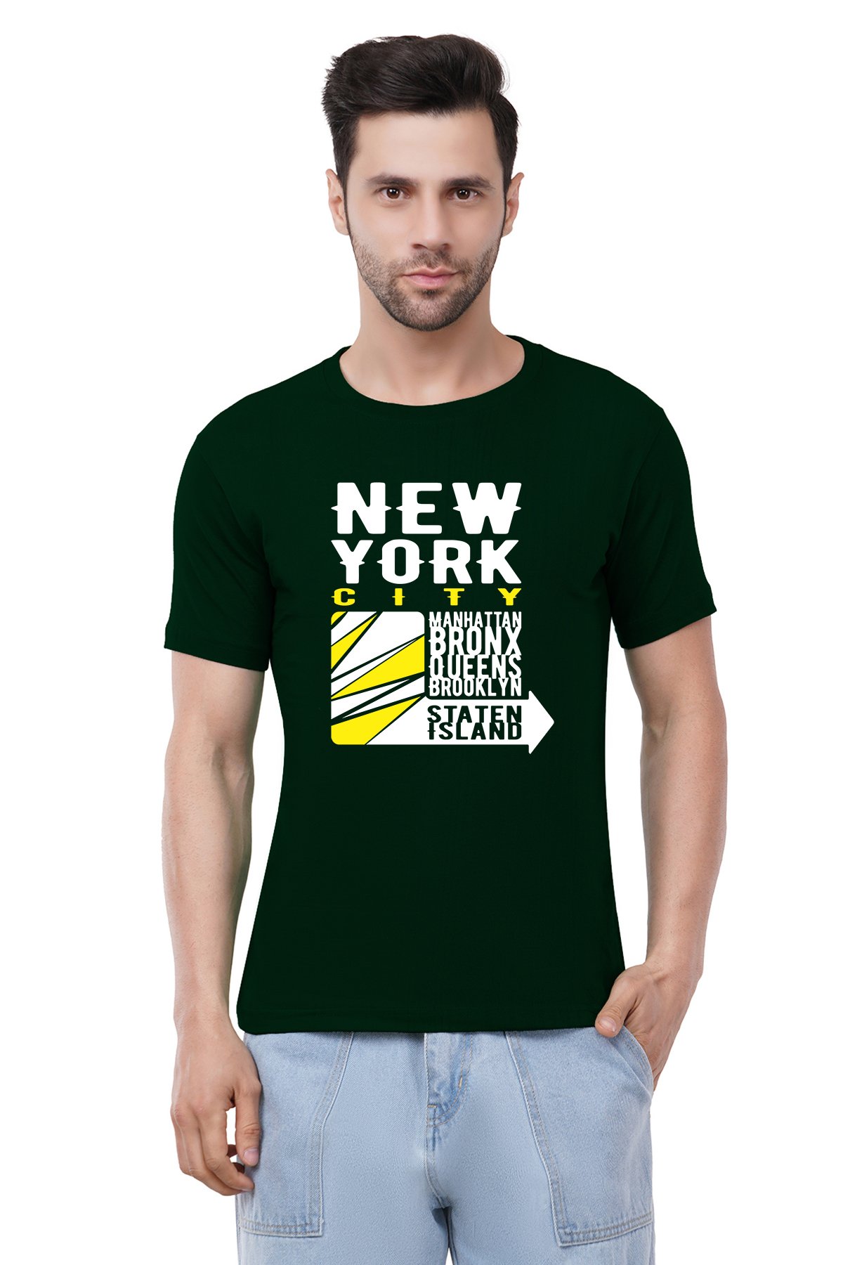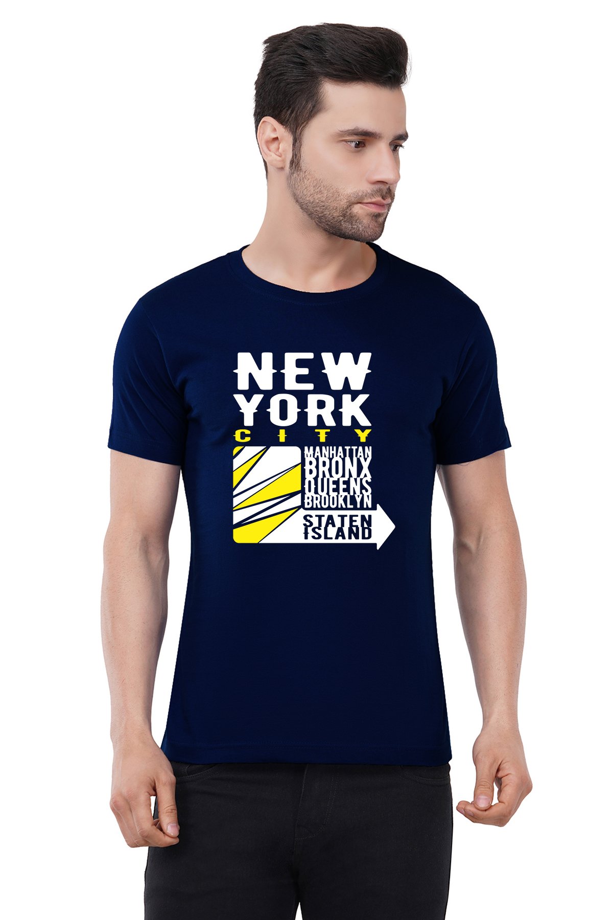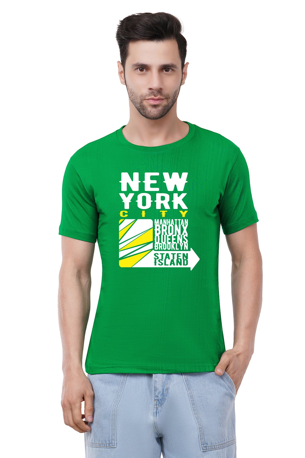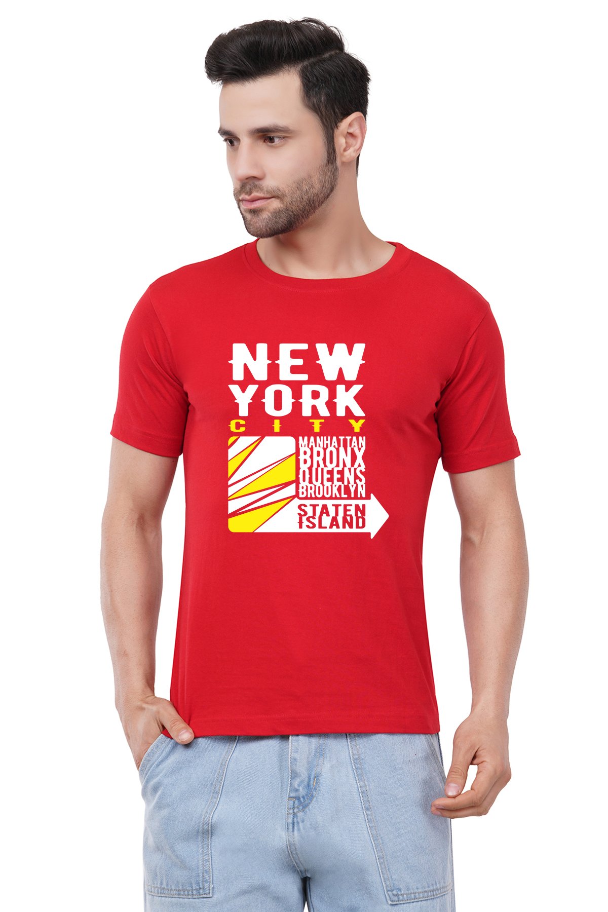 Caseria Men's Cotton Graphic Printed Half Sleeve T-Shirt - New York Island