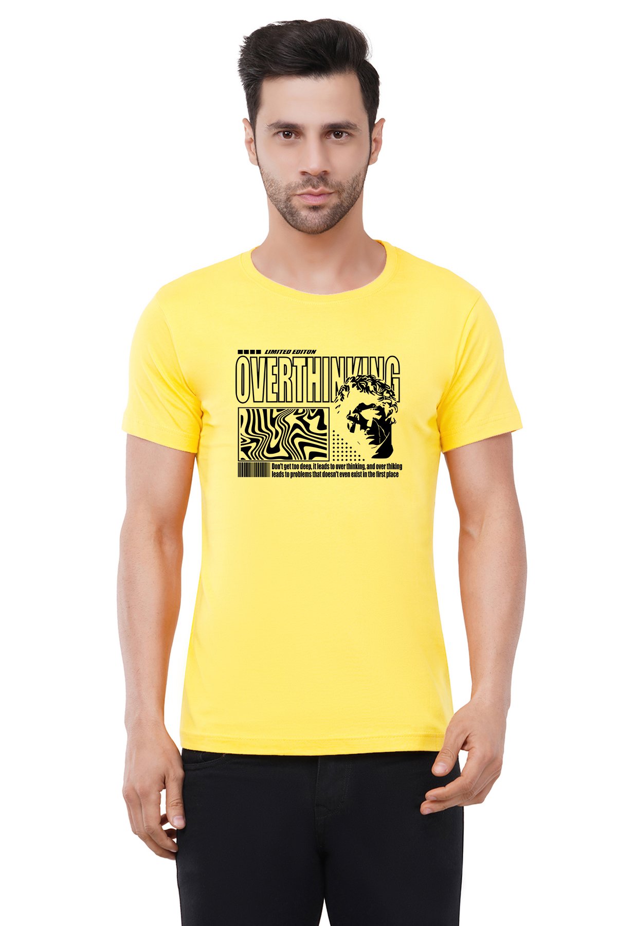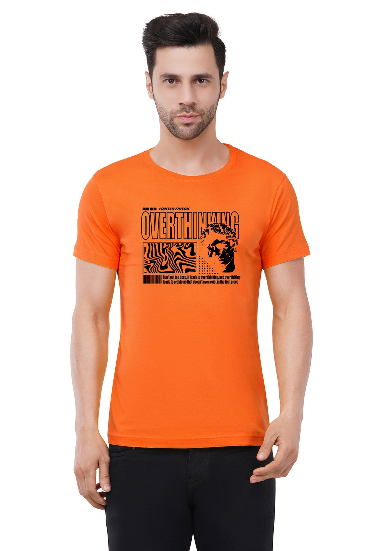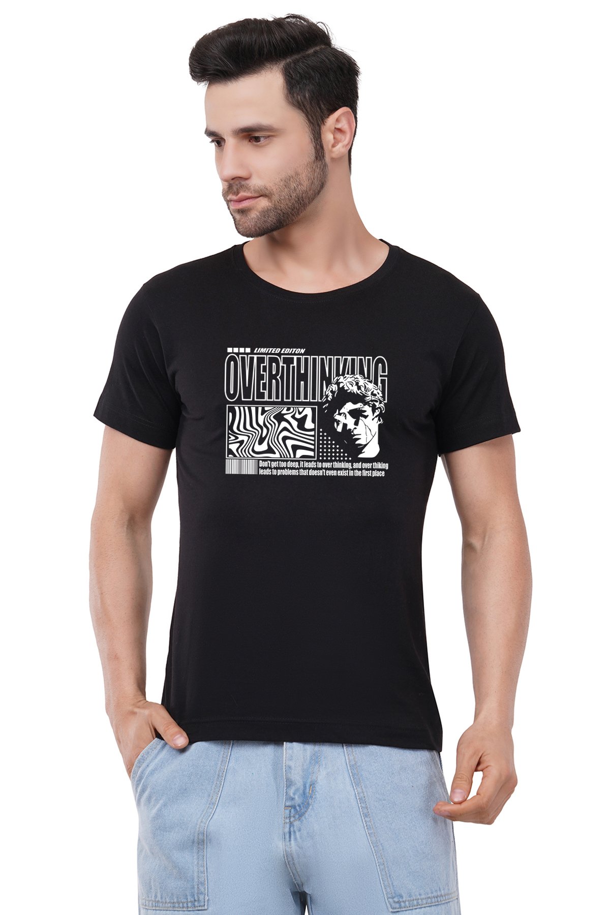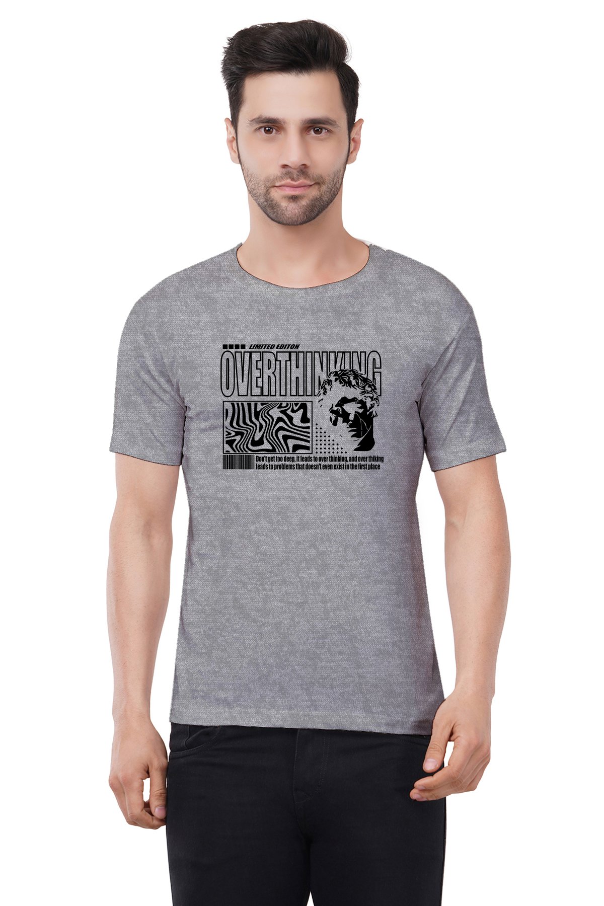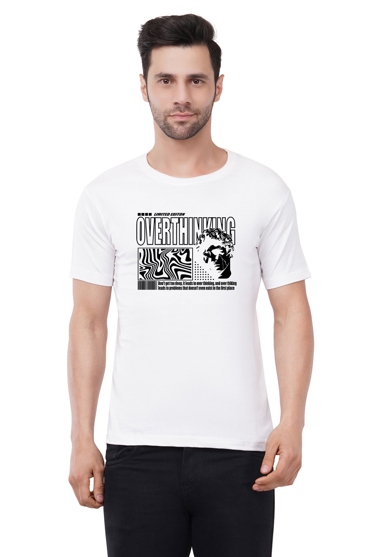 Caseria Men's Cotton Graphic Printed Half Sleeve T-Shirt - Overthinking