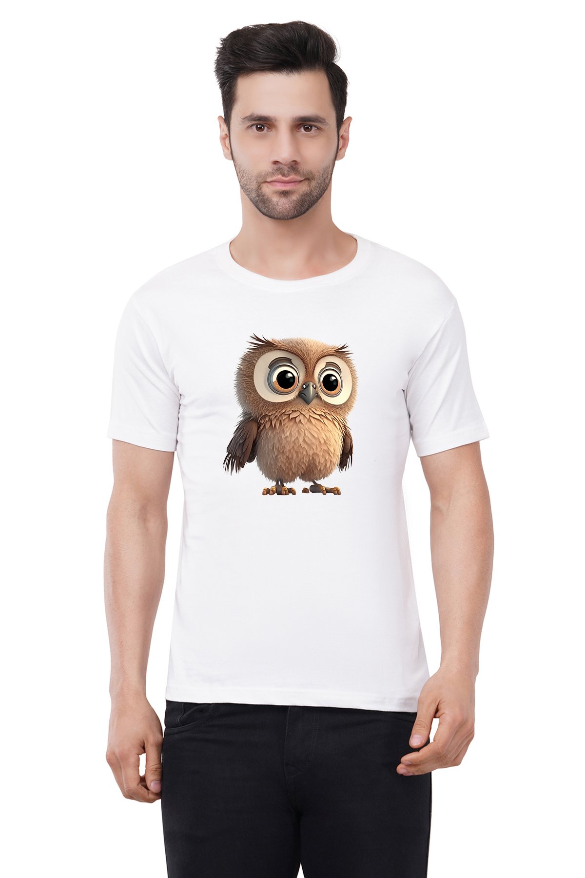 Caseria Men's Cotton Graphic Printed Half Sleeve T-Shirt - Owl Eyes