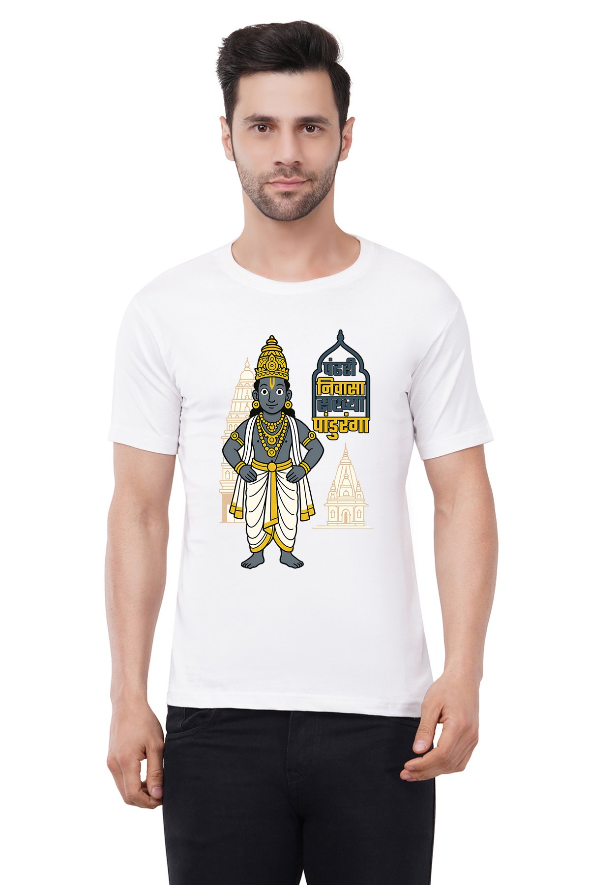 Caseria Men's Cotton Graphic Printed Half Sleeve T-Shirt - Pandhari Nivasa Sakhya Marathi