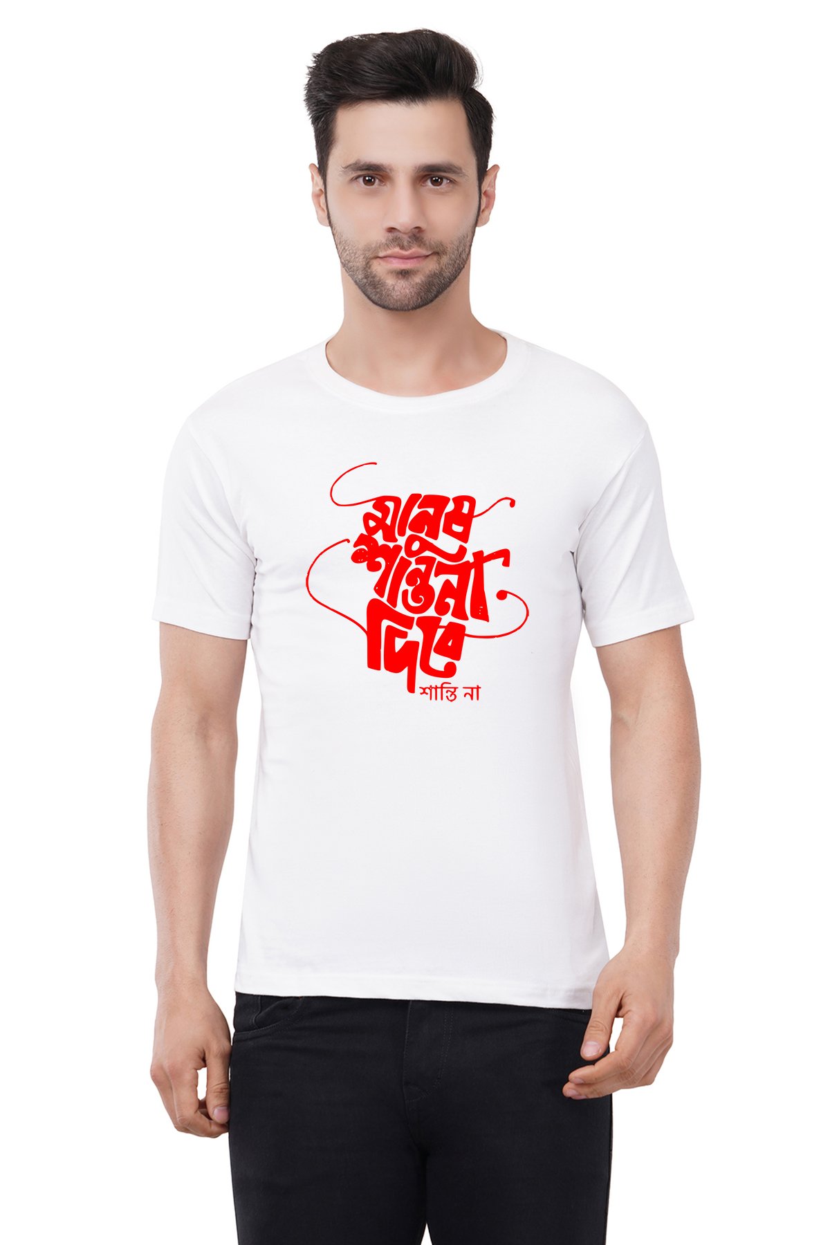 Caseria Men's Cotton Graphic Printed Half Sleeve T-Shirt - People will not Bengali