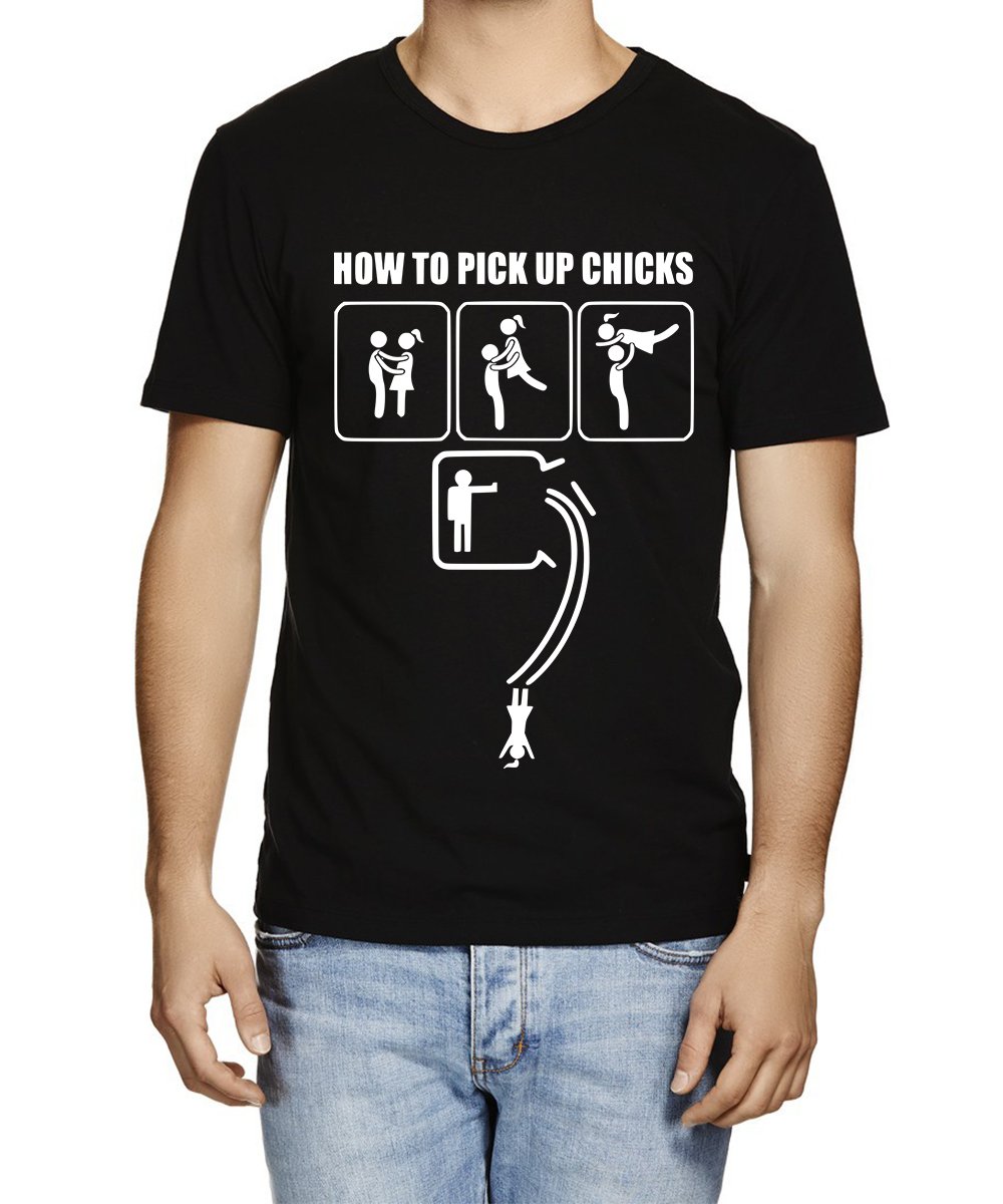Caseria Men's Cotton Graphic Printed Half Sleeve T-Shirt - Pick Up Chicks