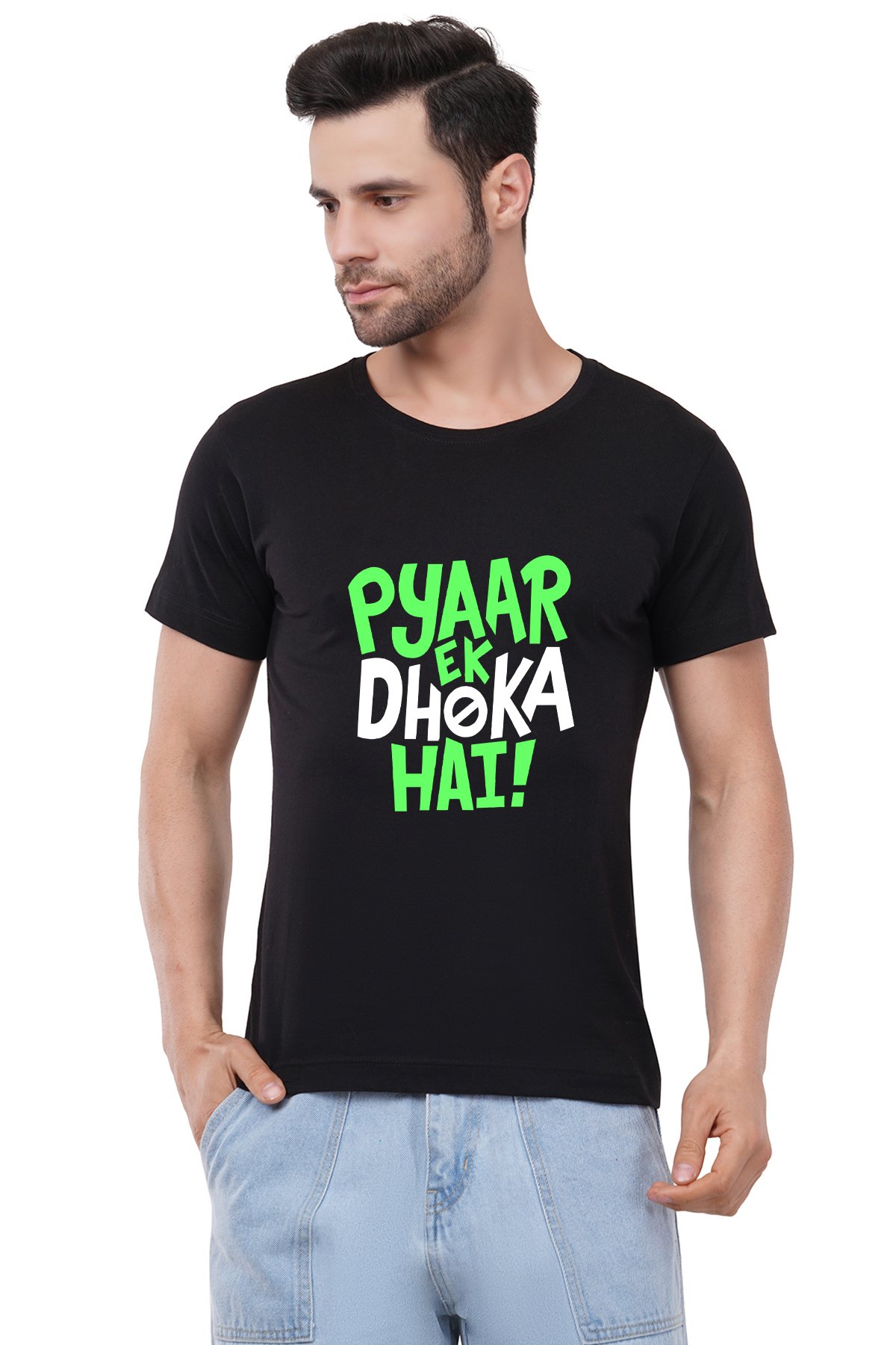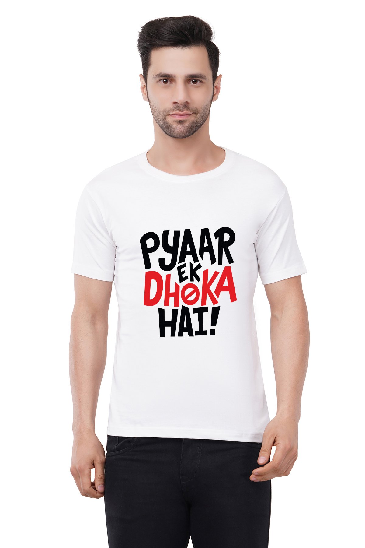 Caseria Men's Cotton Graphic Printed Half Sleeve T-Shirt - Pyaar Ek Dhoka Hai