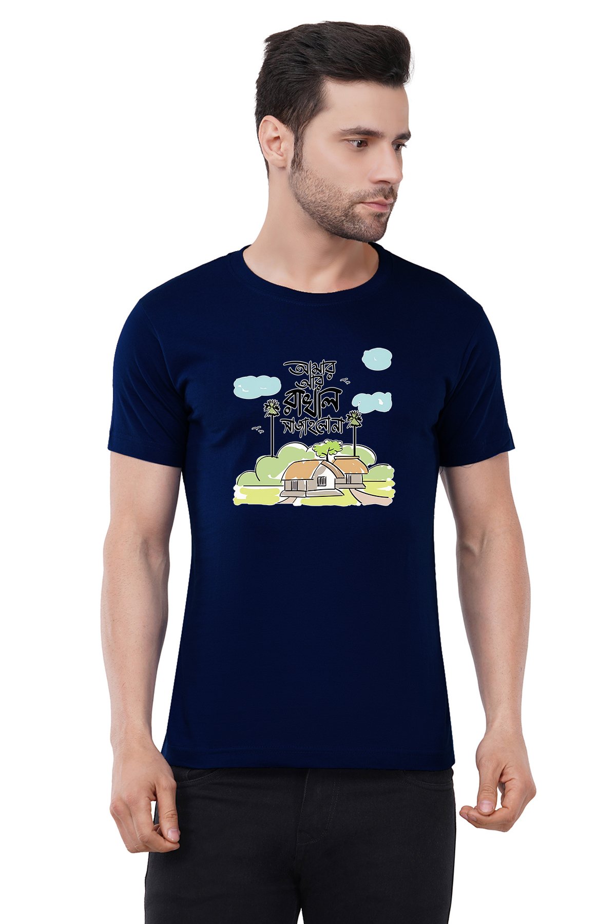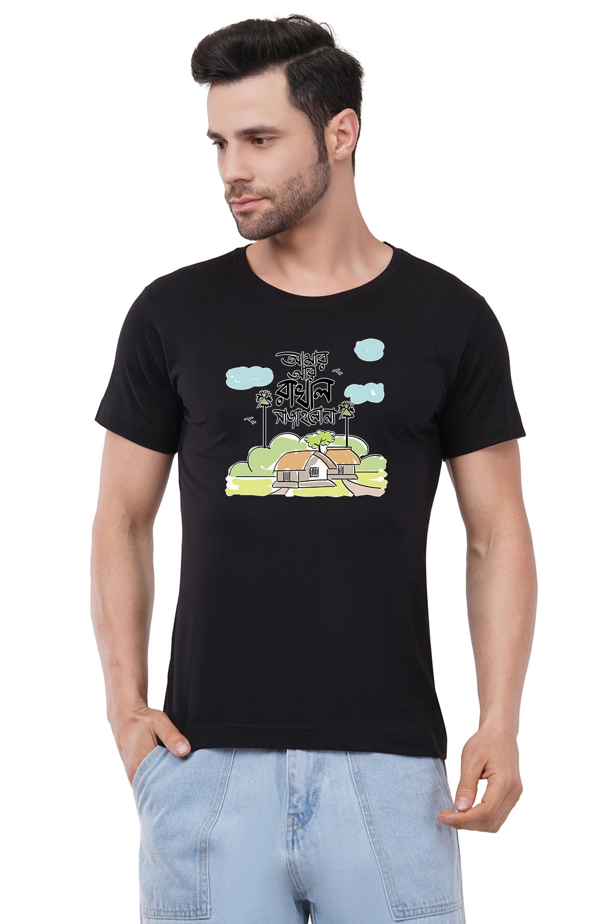 Caseria Men's Cotton Graphic Printed Half Sleeve T-Shirt - Rakhal Sajanglana Bengali