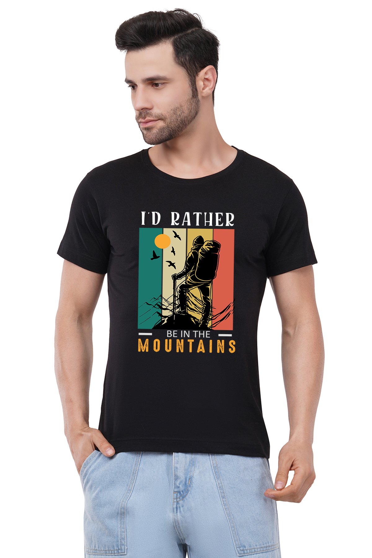 Caseria Men's Cotton Graphic Printed Half Sleeve T-Shirt - Rather Be In Mountains
