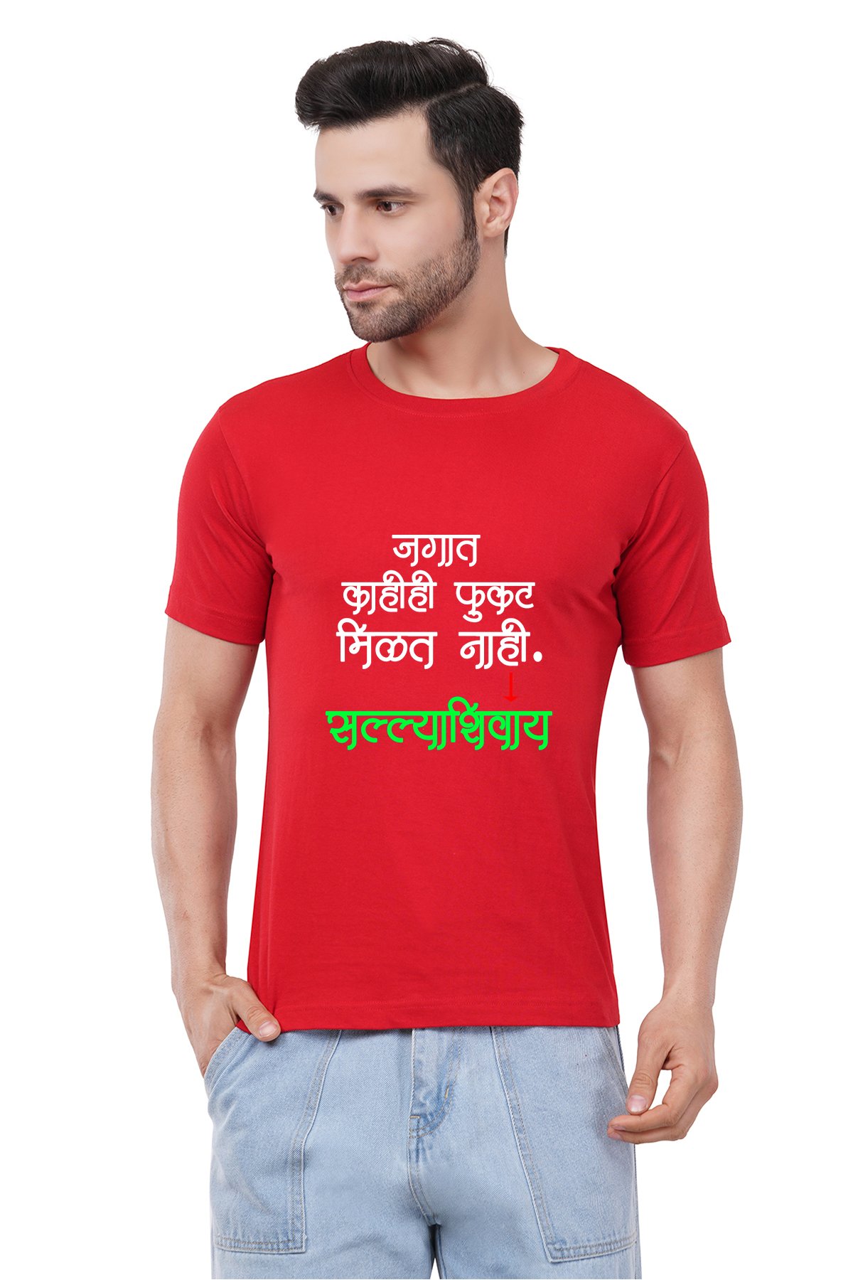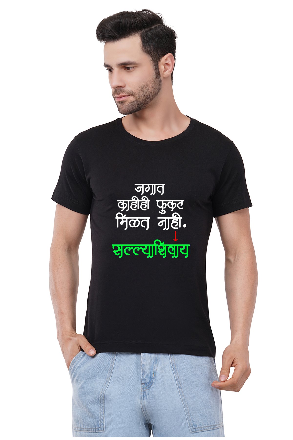 Caseria Men's Cotton Graphic Printed Half Sleeve T-Shirt - Salla Marathi