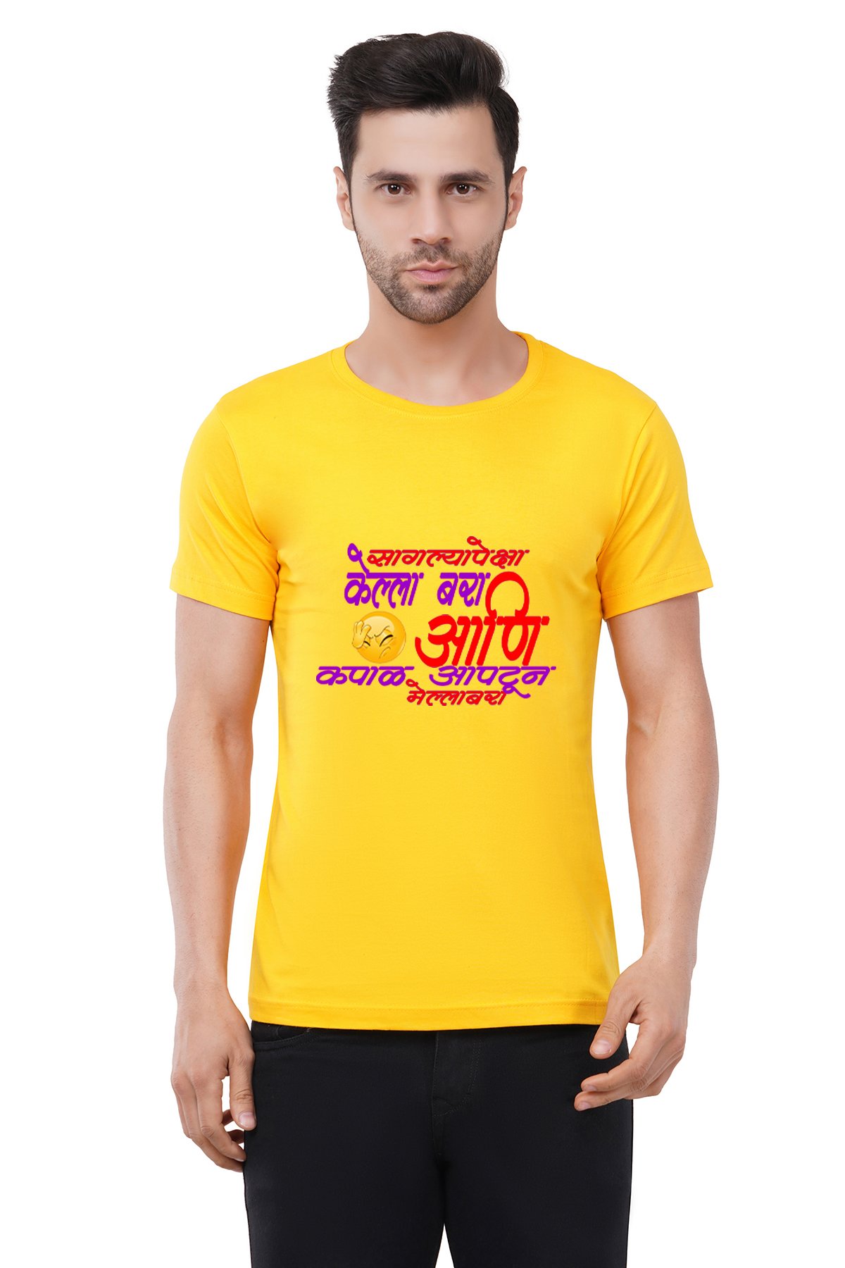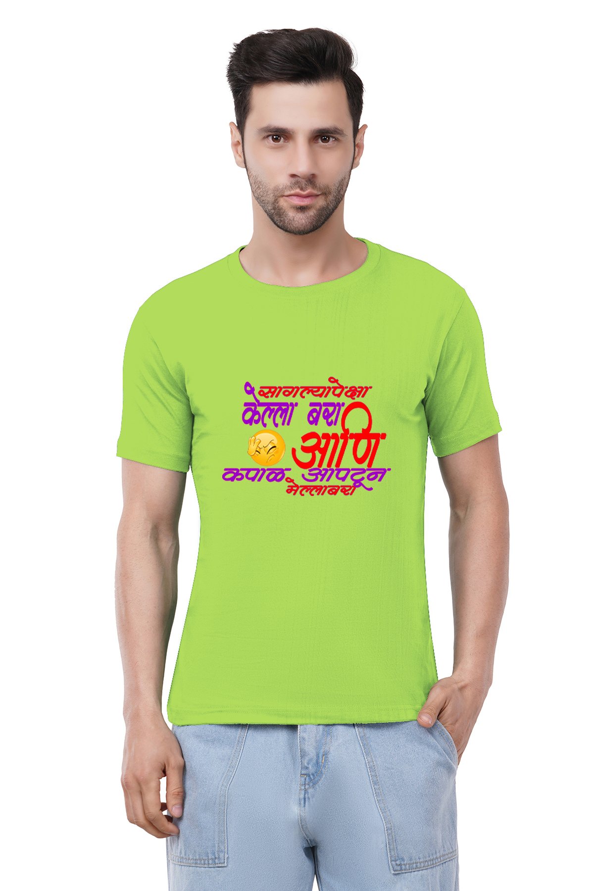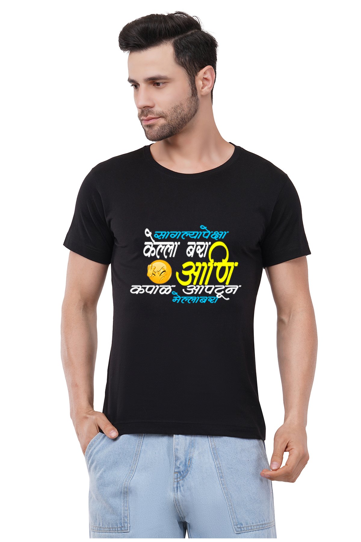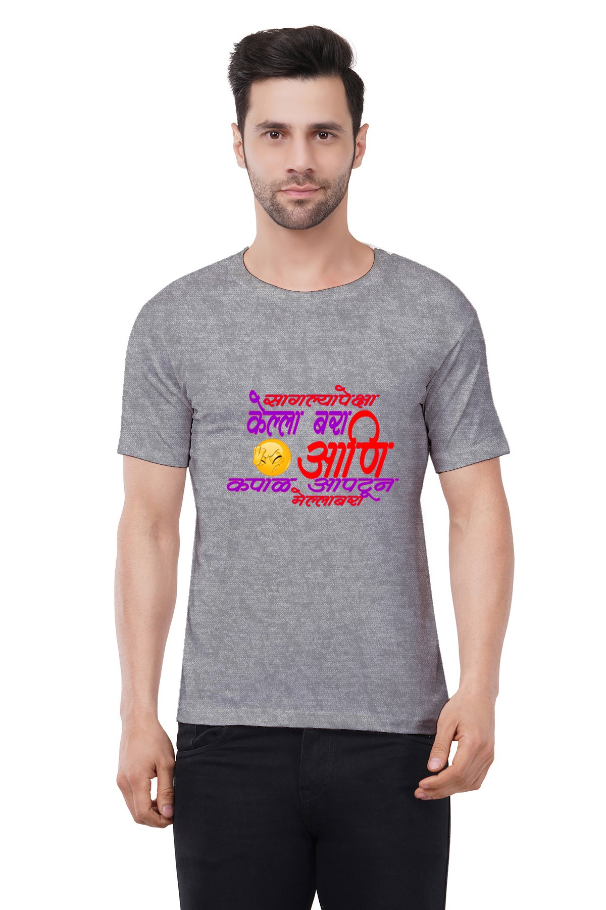 Caseria Men's Cotton Graphic Printed Half Sleeve T-Shirt - Sanglya Peksha Kella Bara Marathi