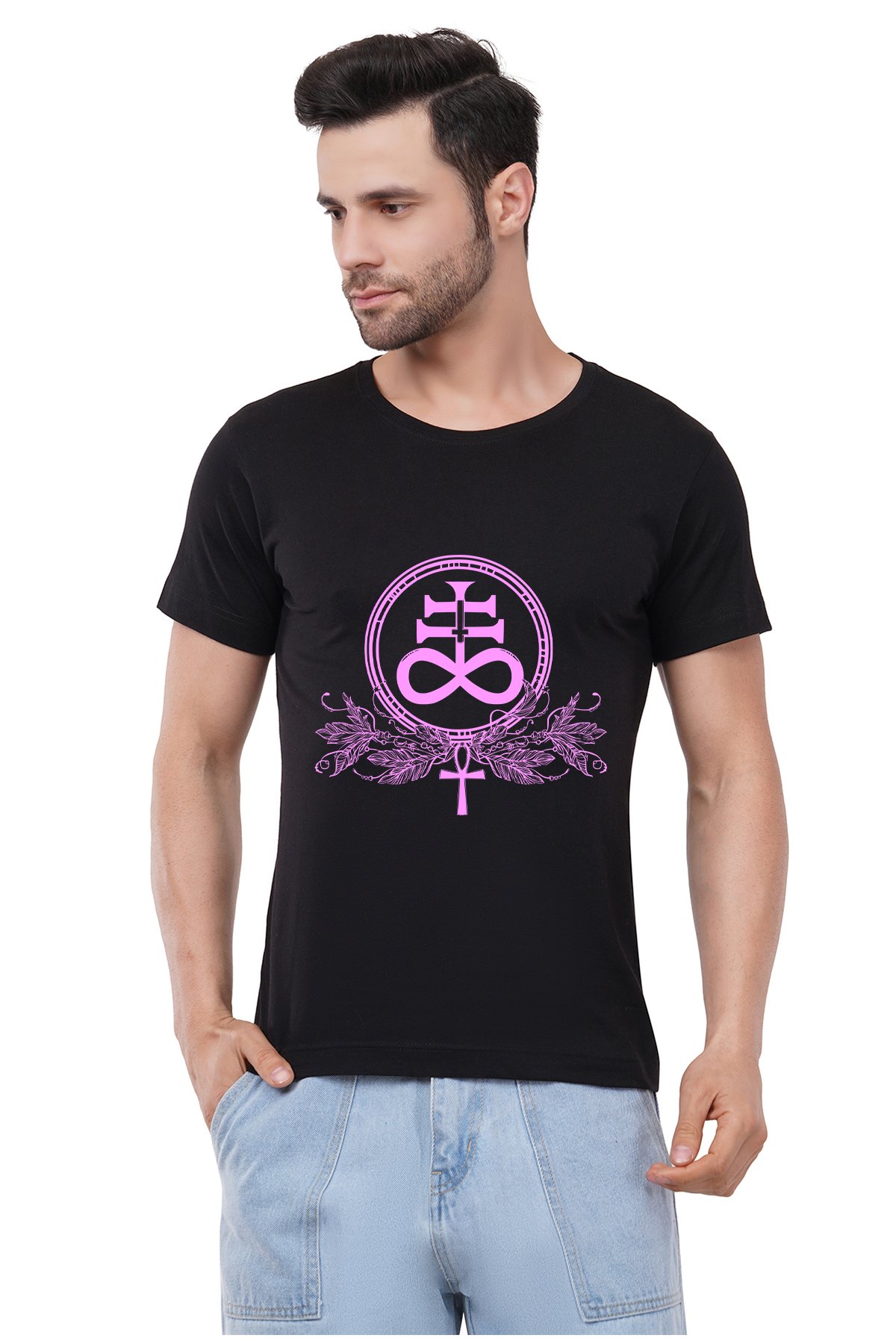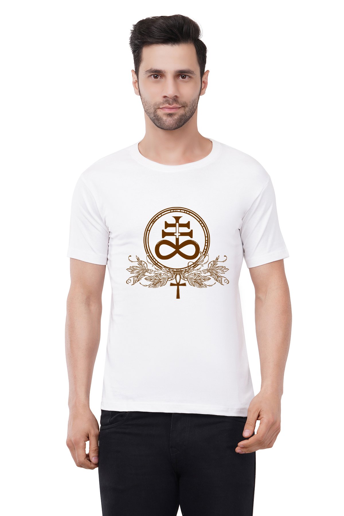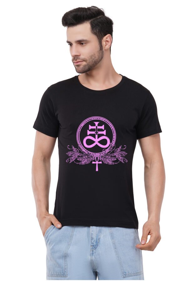 Caseria Men's Cotton Graphic Printed Half Sleeve T-Shirt - Satanic Cross Leviathan