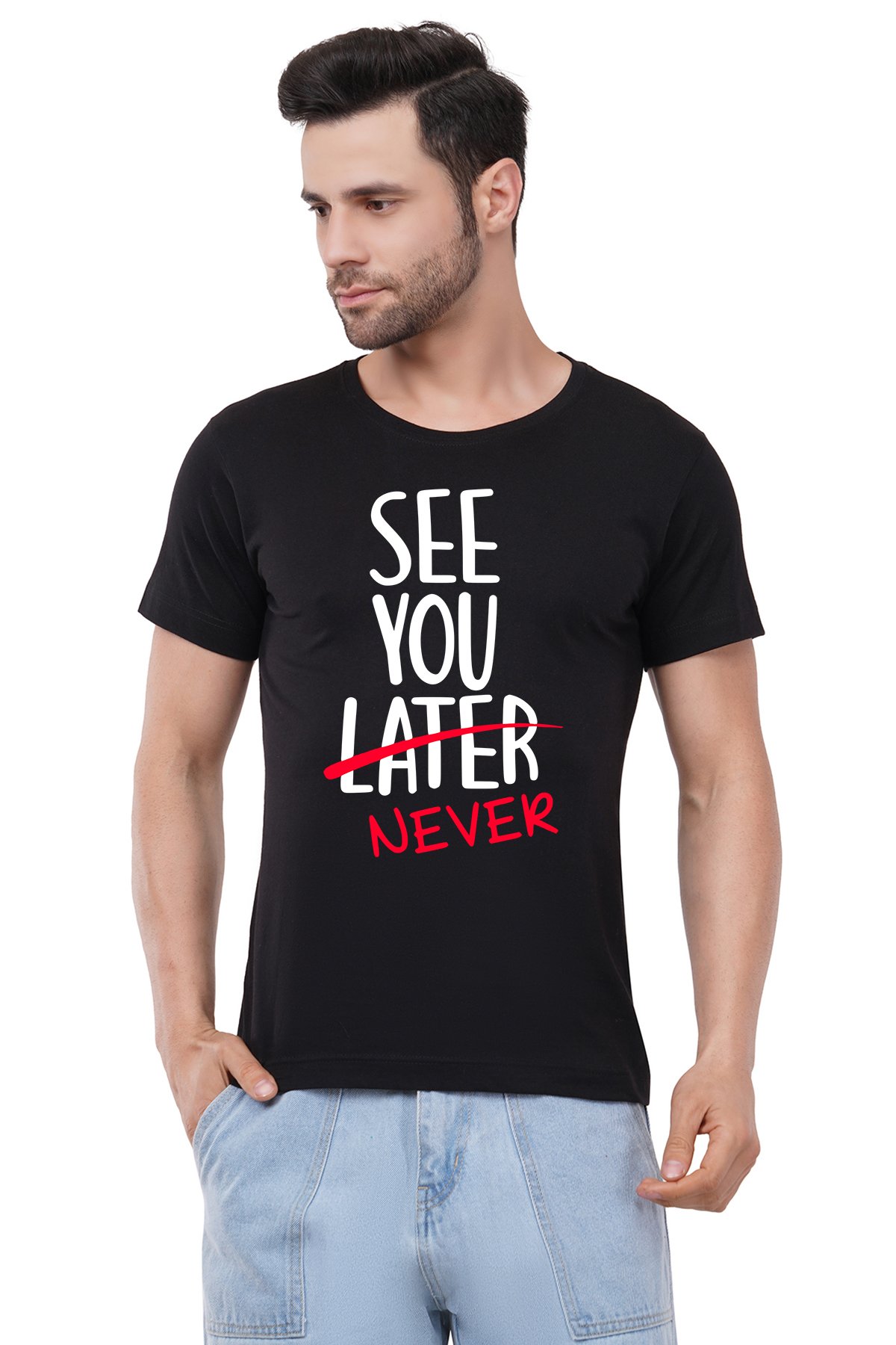 Caseria Men's Cotton Graphic Printed Half Sleeve T-Shirt - See You Never