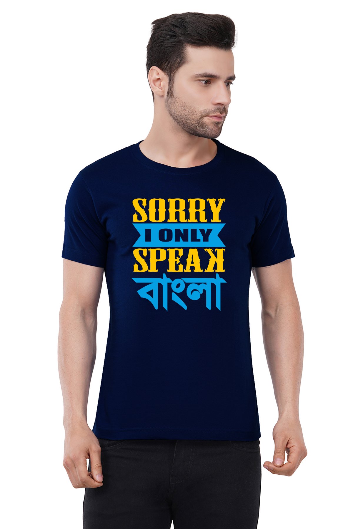 Caseria Men's Cotton Graphic Printed Half Sleeve T-Shirt - Sorry Speak Bangla