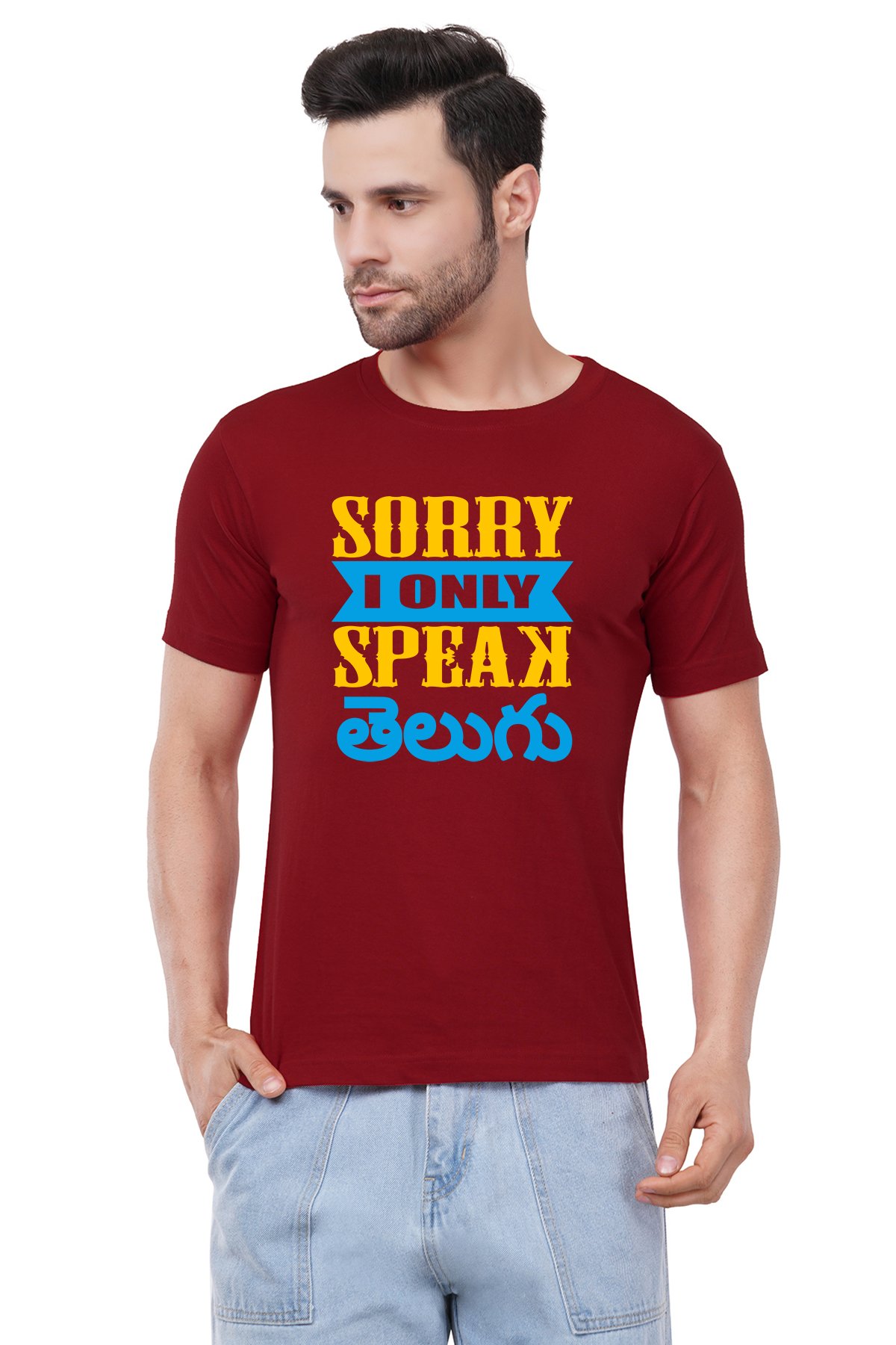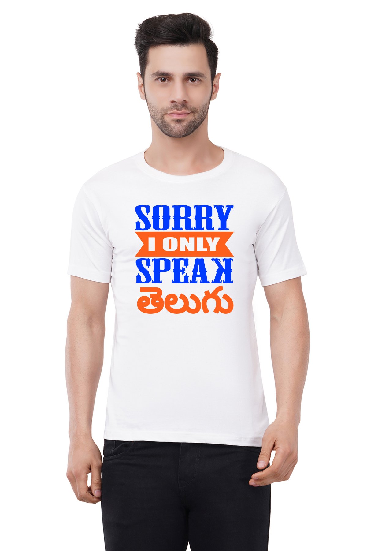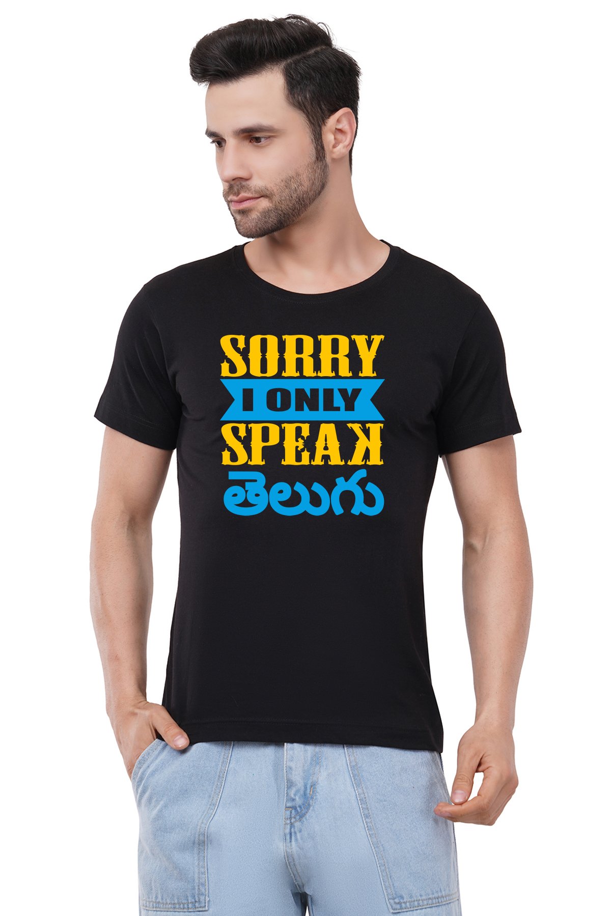 Caseria Men's Cotton Graphic Printed Half Sleeve T-Shirt - Sorry Speak Telugu