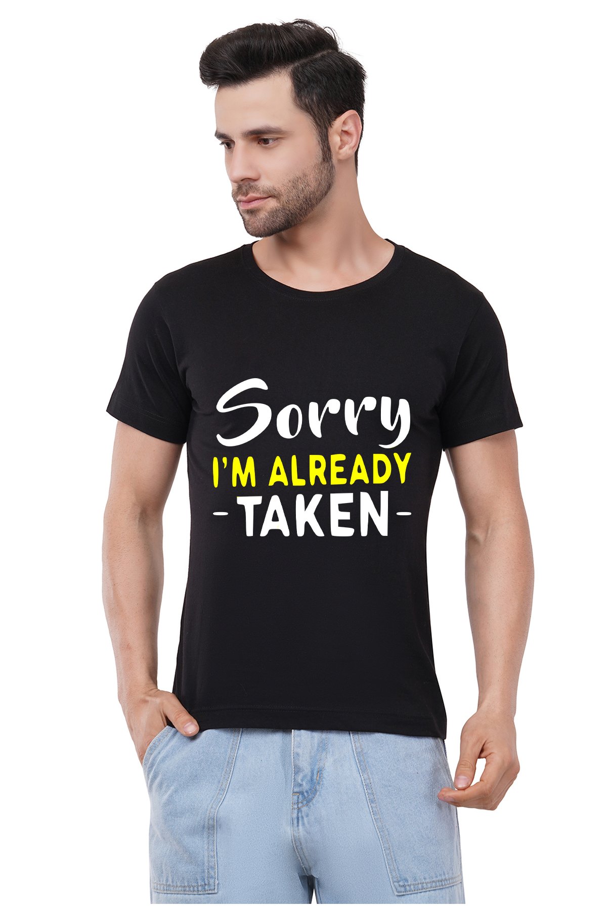 Caseria Men's Cotton Graphic Printed Half Sleeve T-Shirt - Sorry Taken