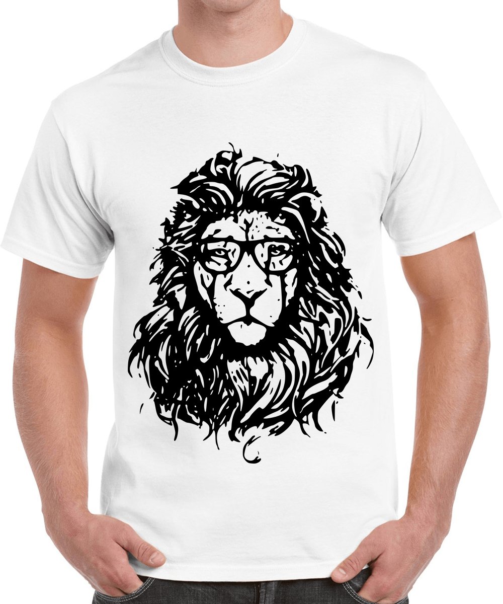 Caseria Men's Cotton Graphic Printed Half Sleeve T-Shirt - Spectacle Lion