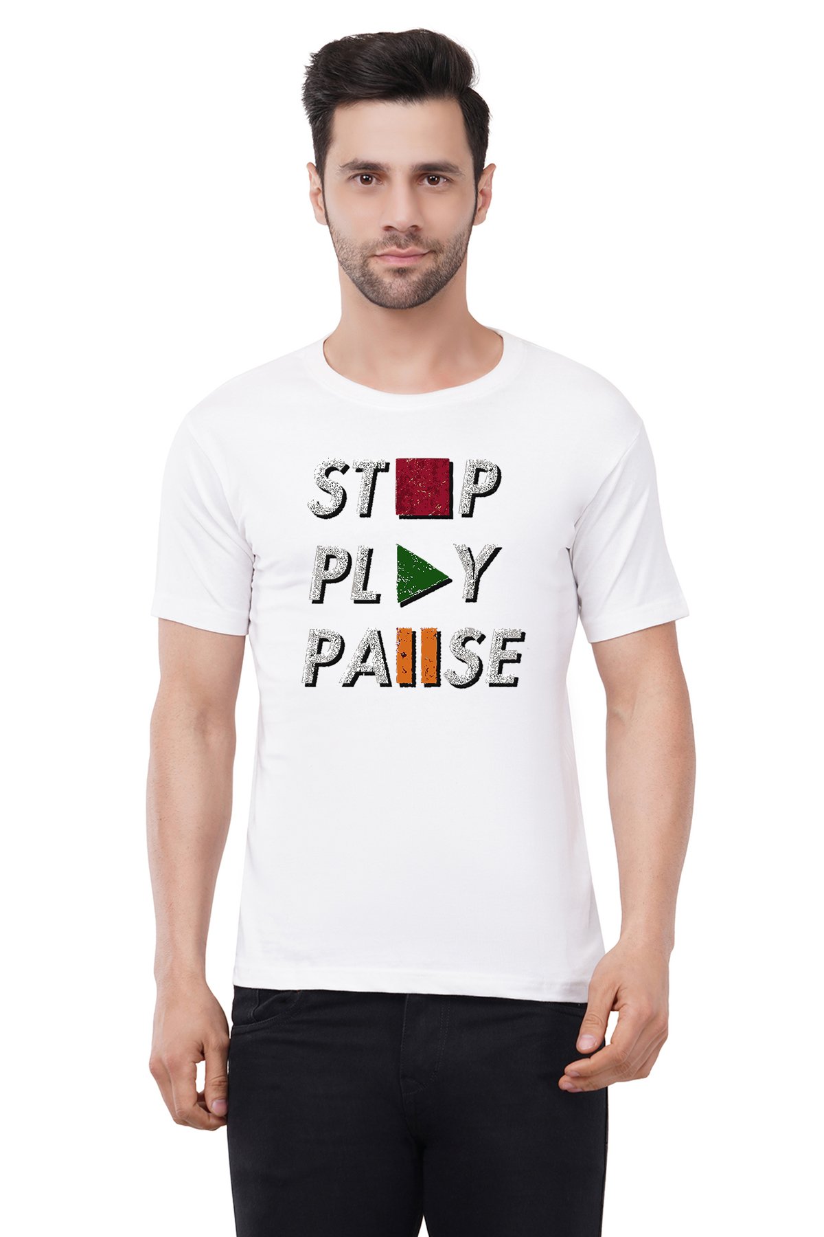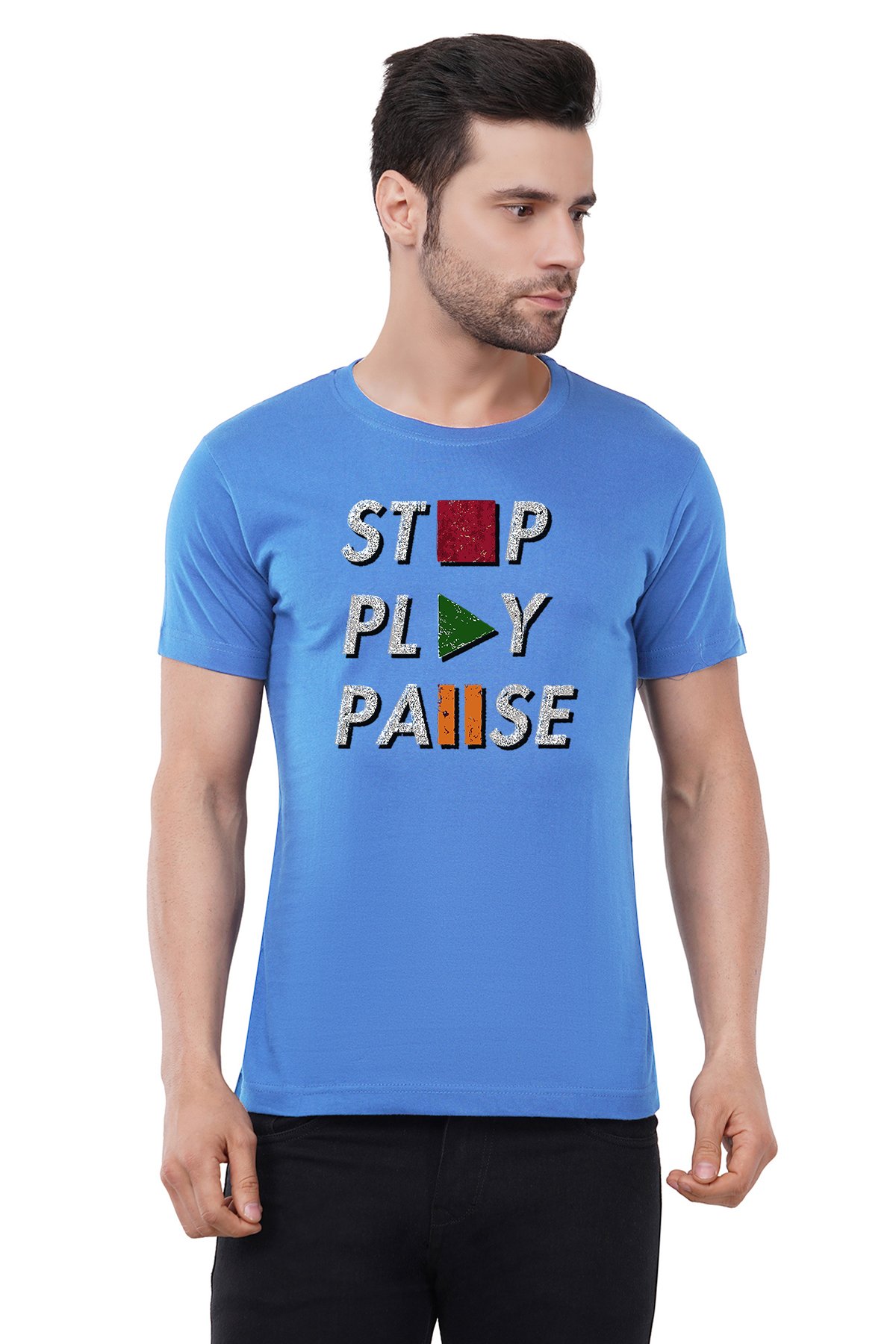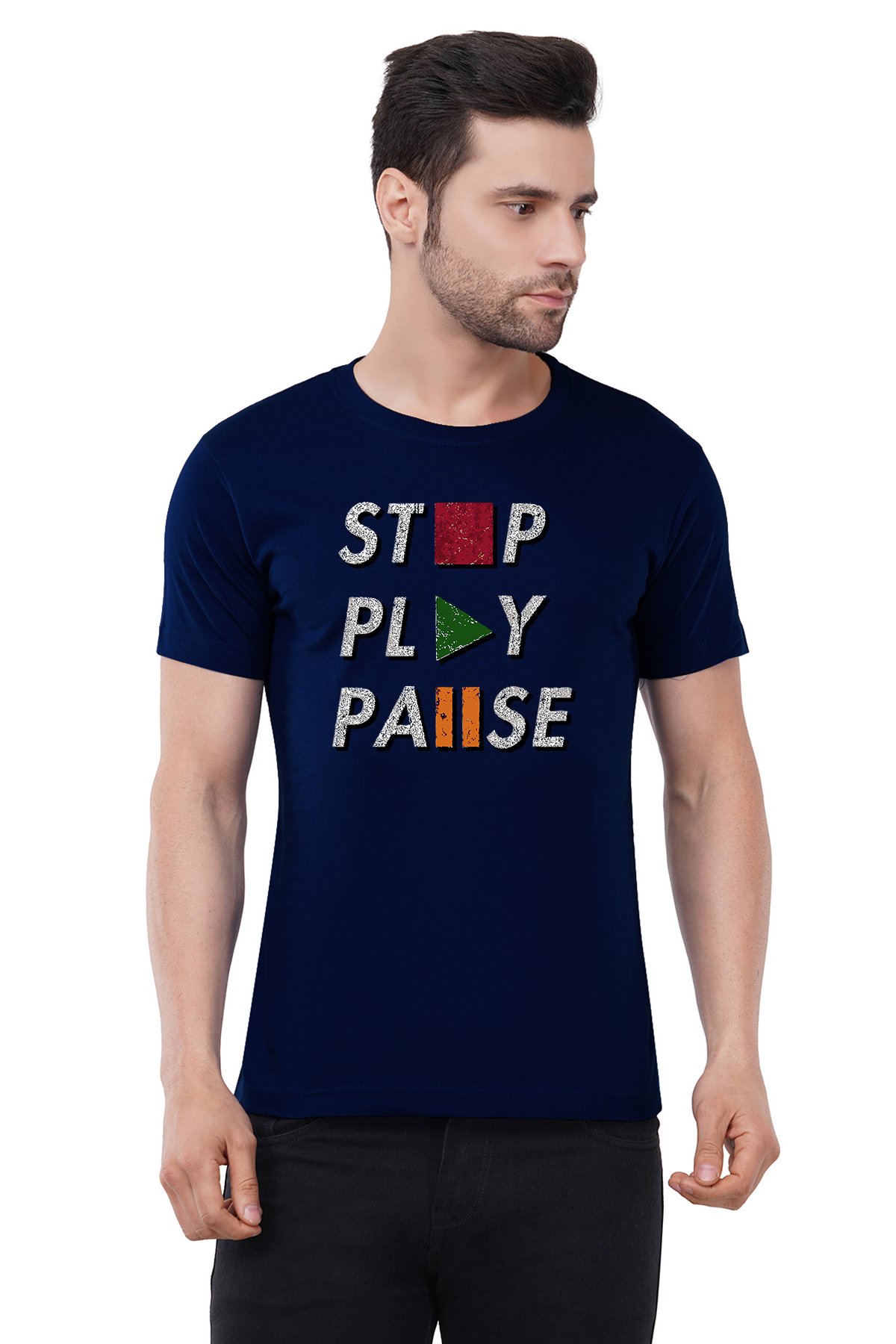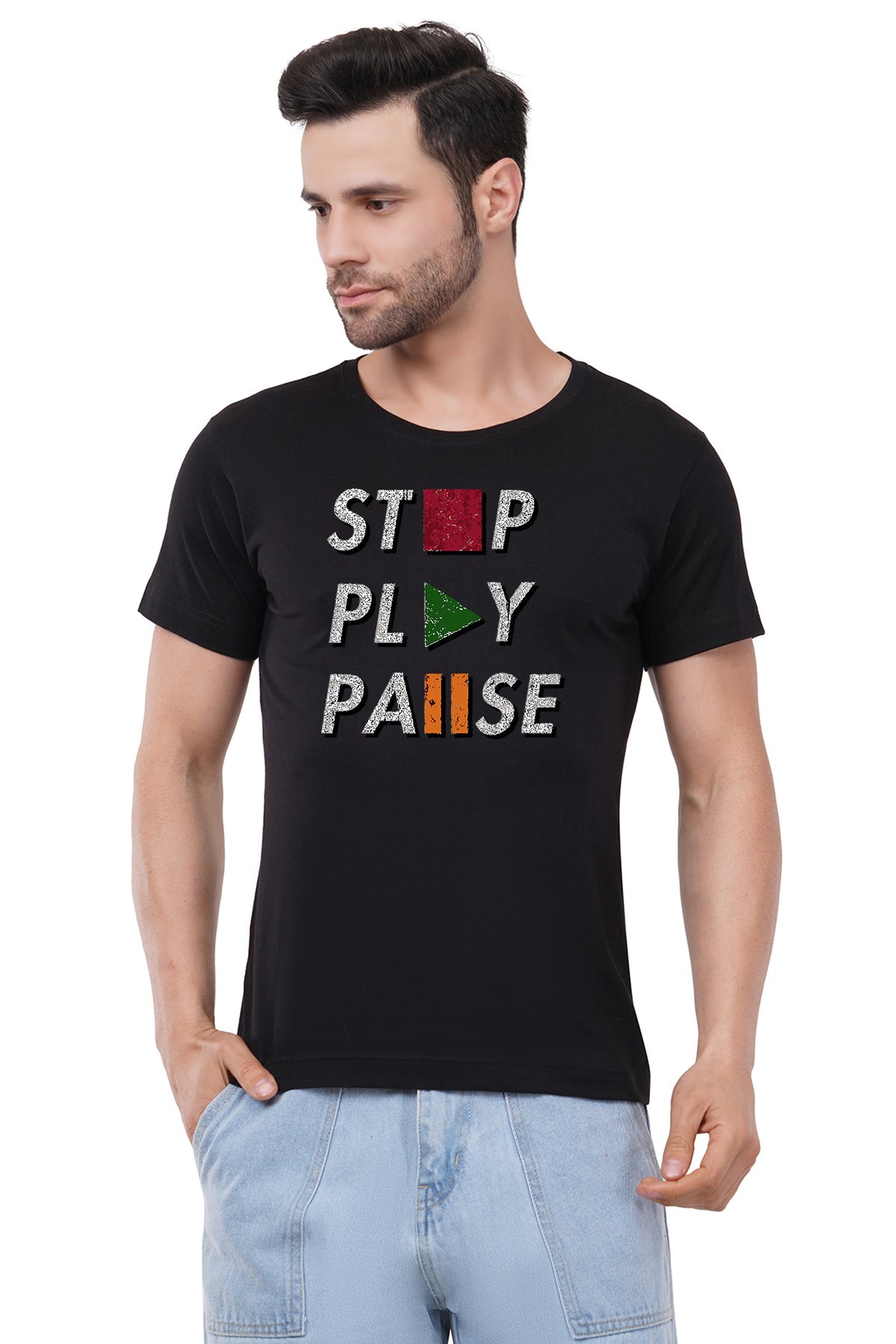 Caseria Men's Cotton Graphic Printed Half Sleeve T-Shirt - Stop Pause