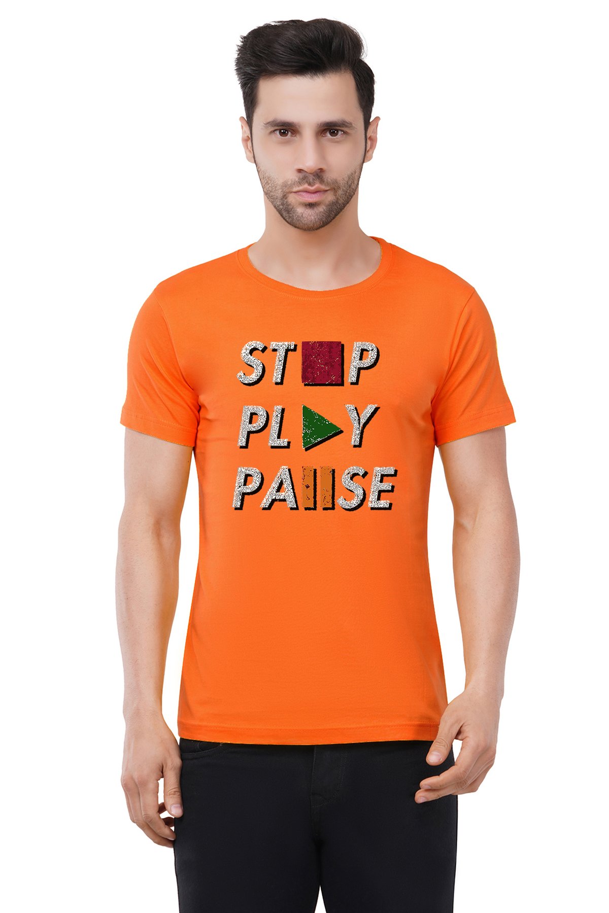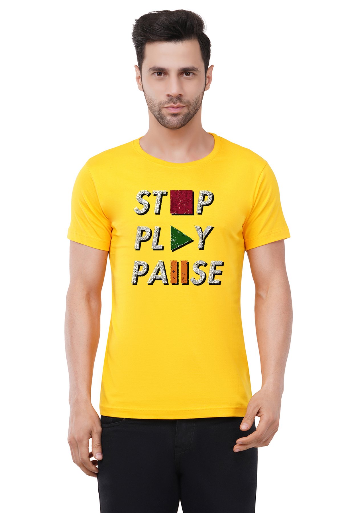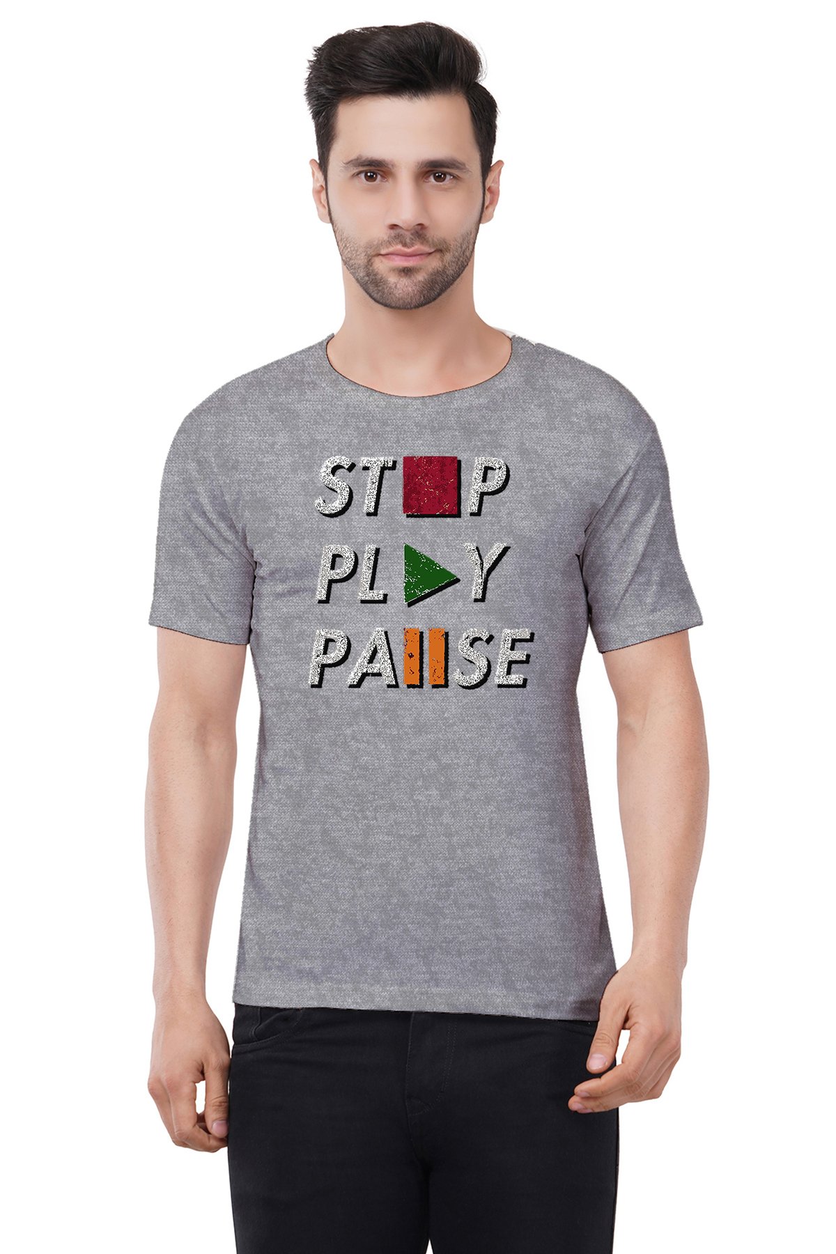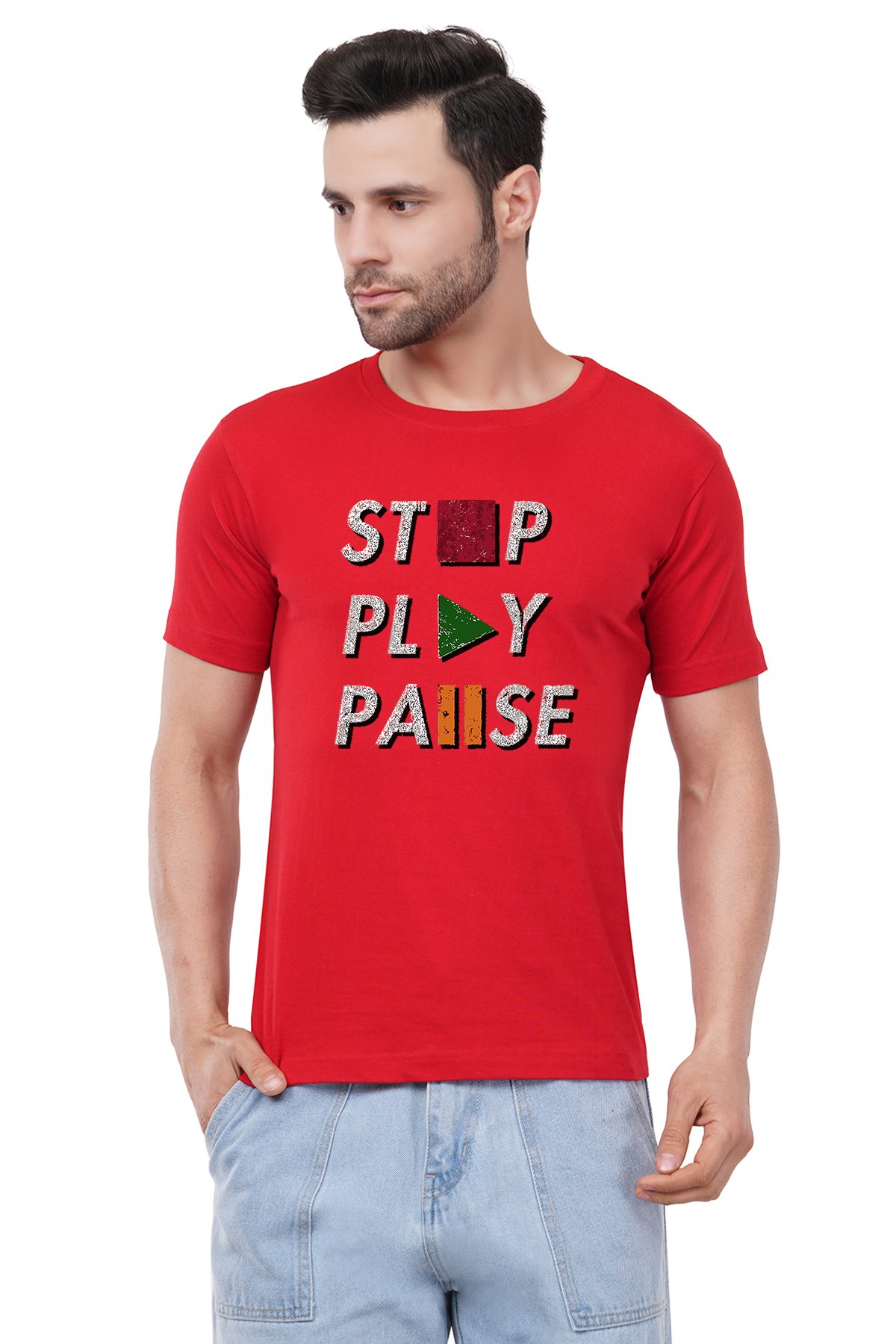 Caseria Men's Cotton Graphic Printed Half Sleeve T-Shirt - Stop Pause