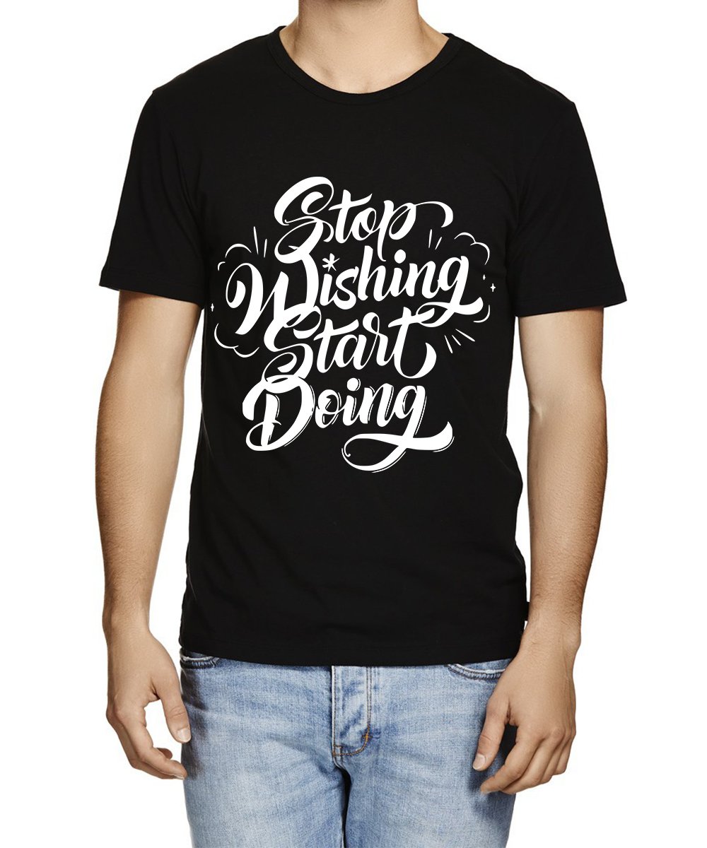 Caseria Men's Cotton Graphic Printed Half Sleeve T-Shirt - Stop Wishing Start Doing