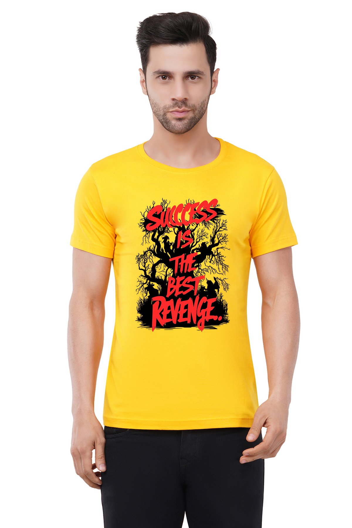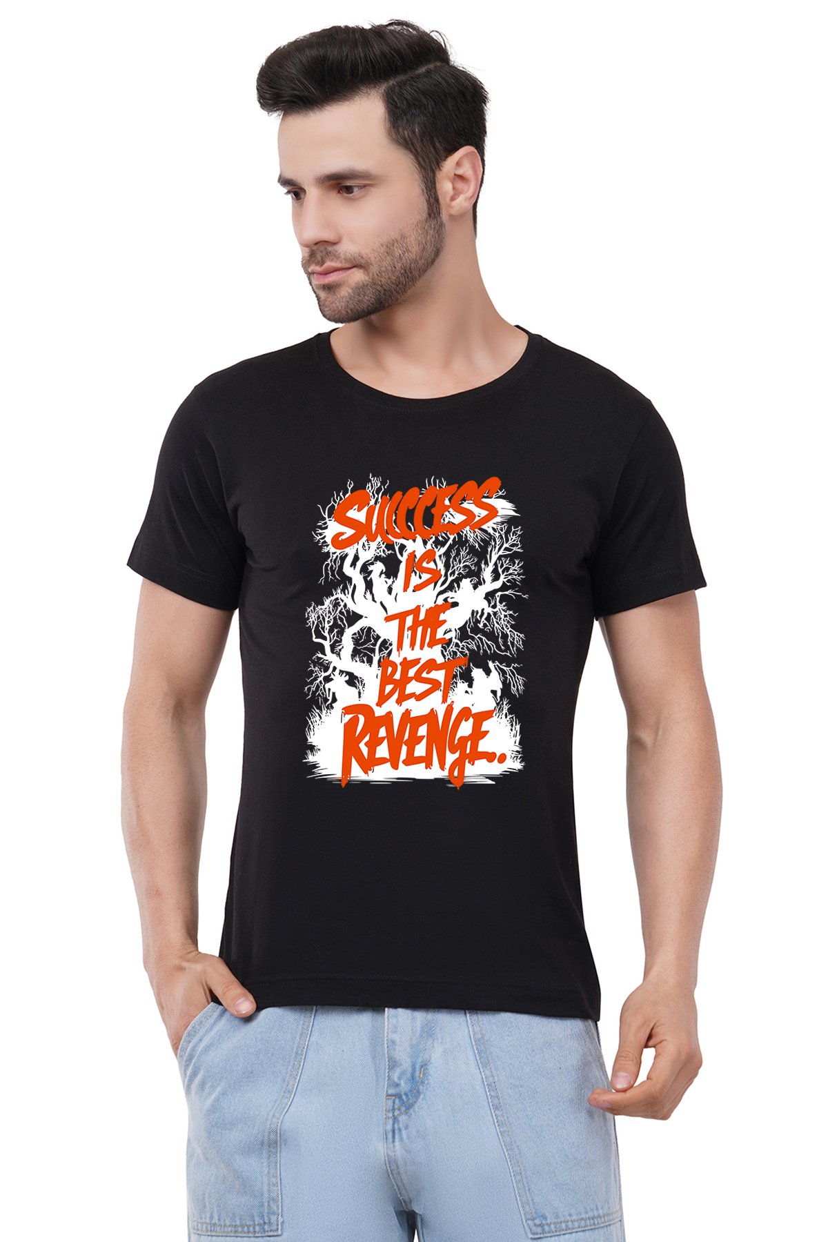 Caseria Men's Cotton Graphic Printed Half Sleeve T-Shirt - Success Best Revenge