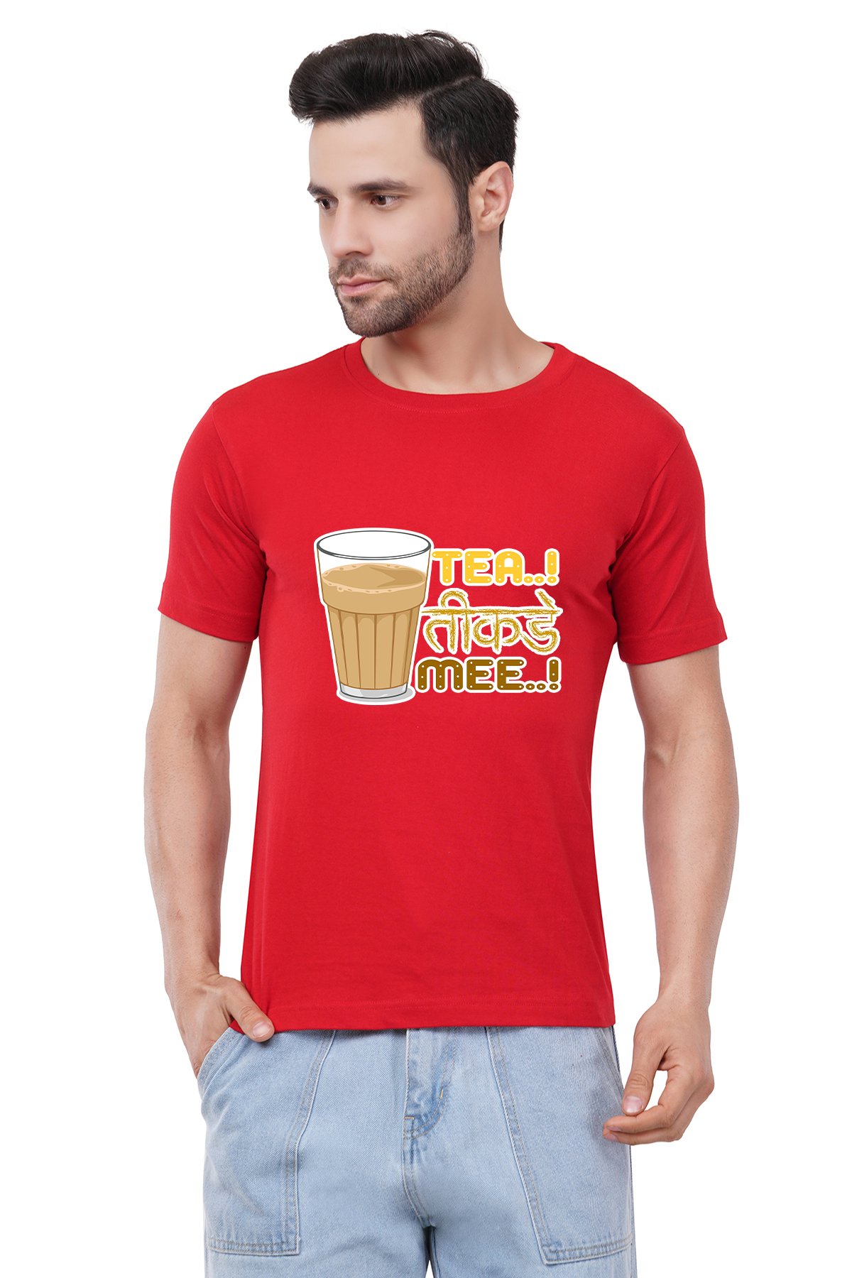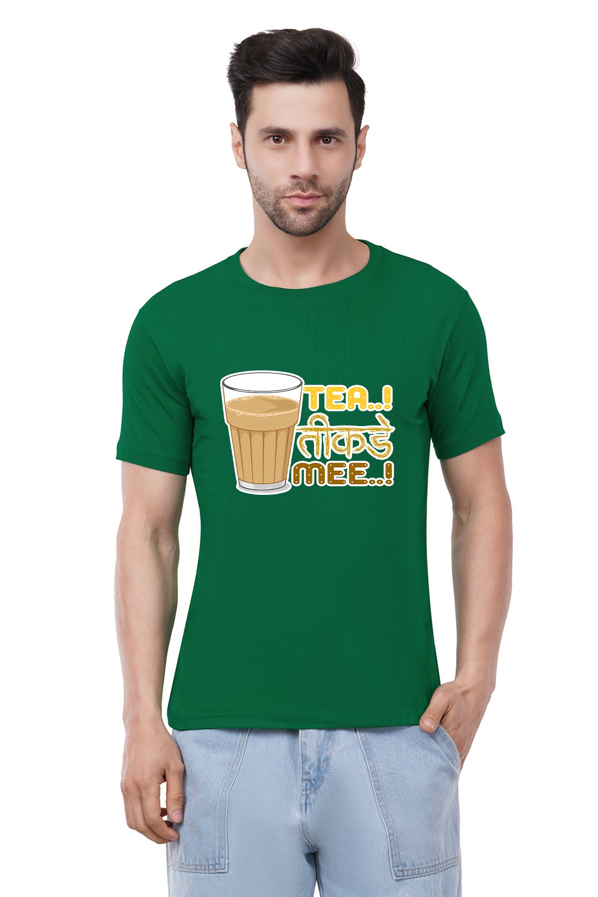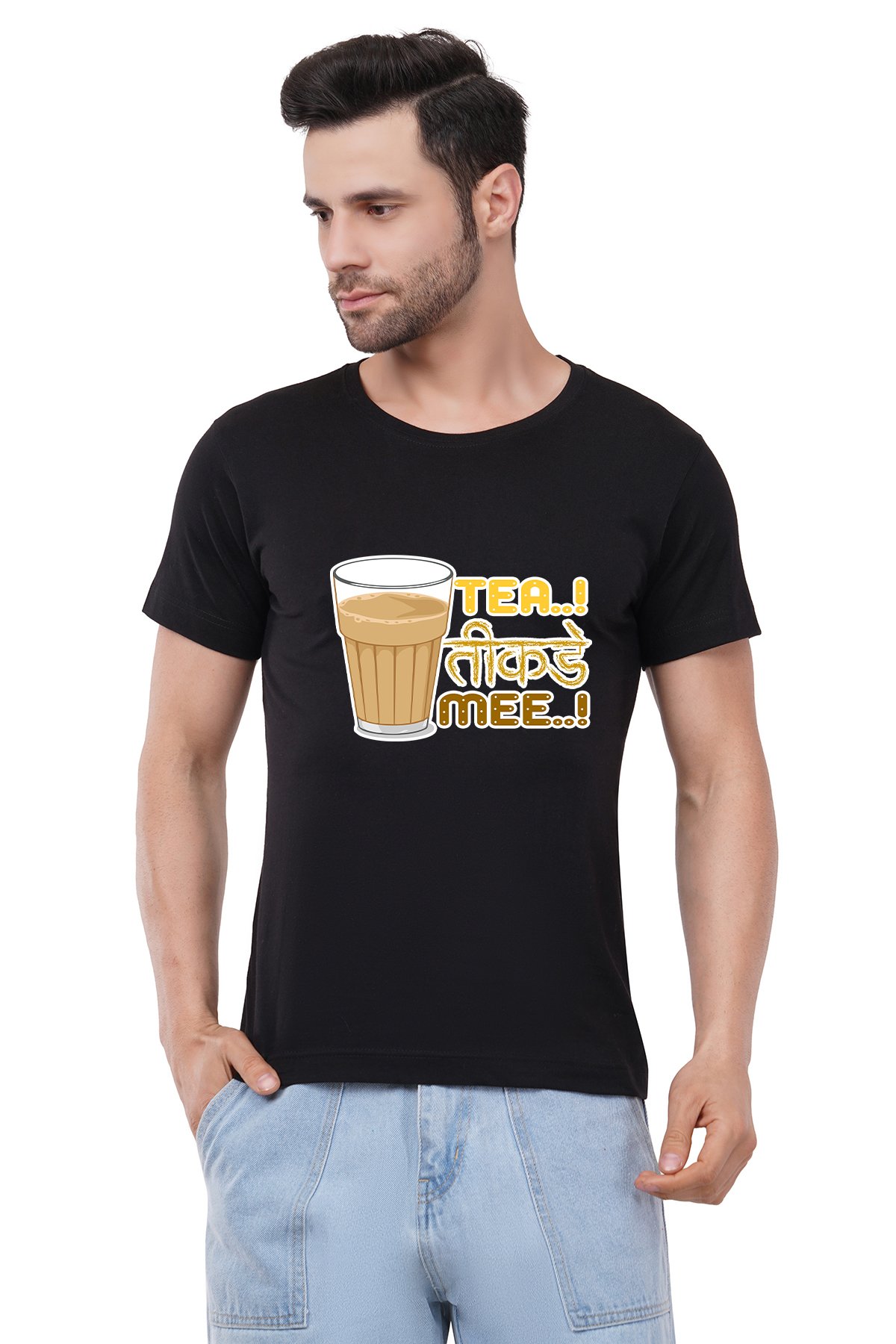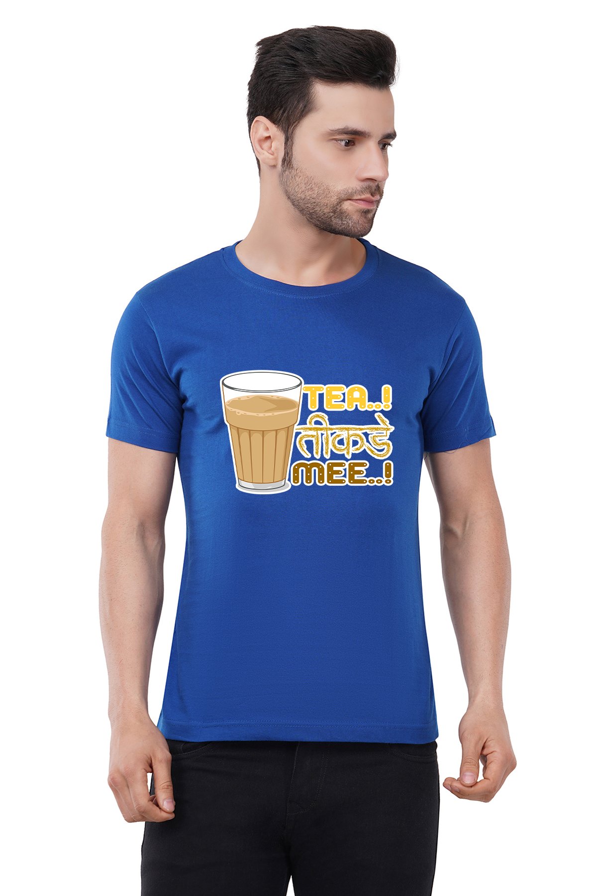 Caseria Men's Cotton Graphic Printed Half Sleeve T-Shirt - Tea Tikde Mee (Marathi)