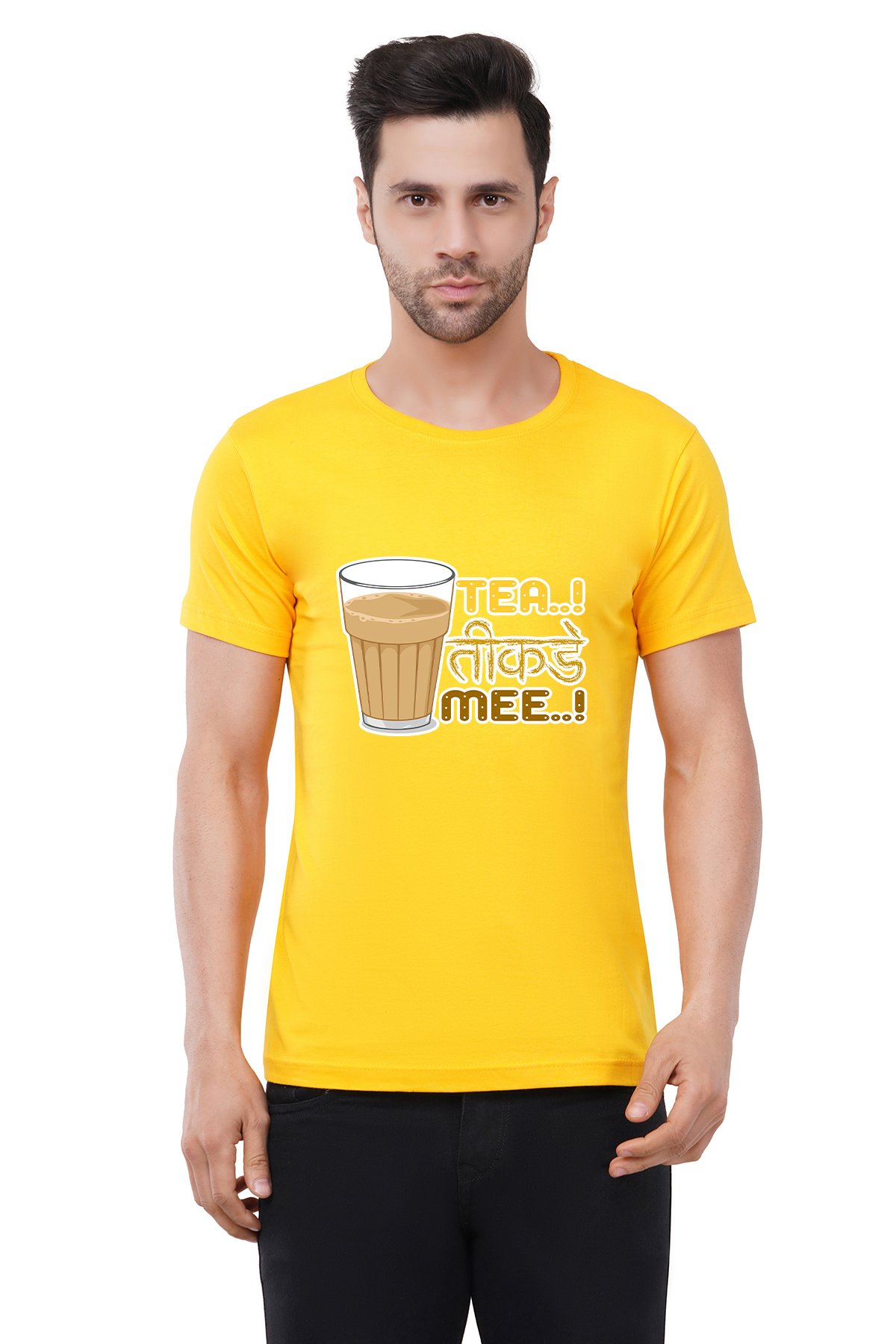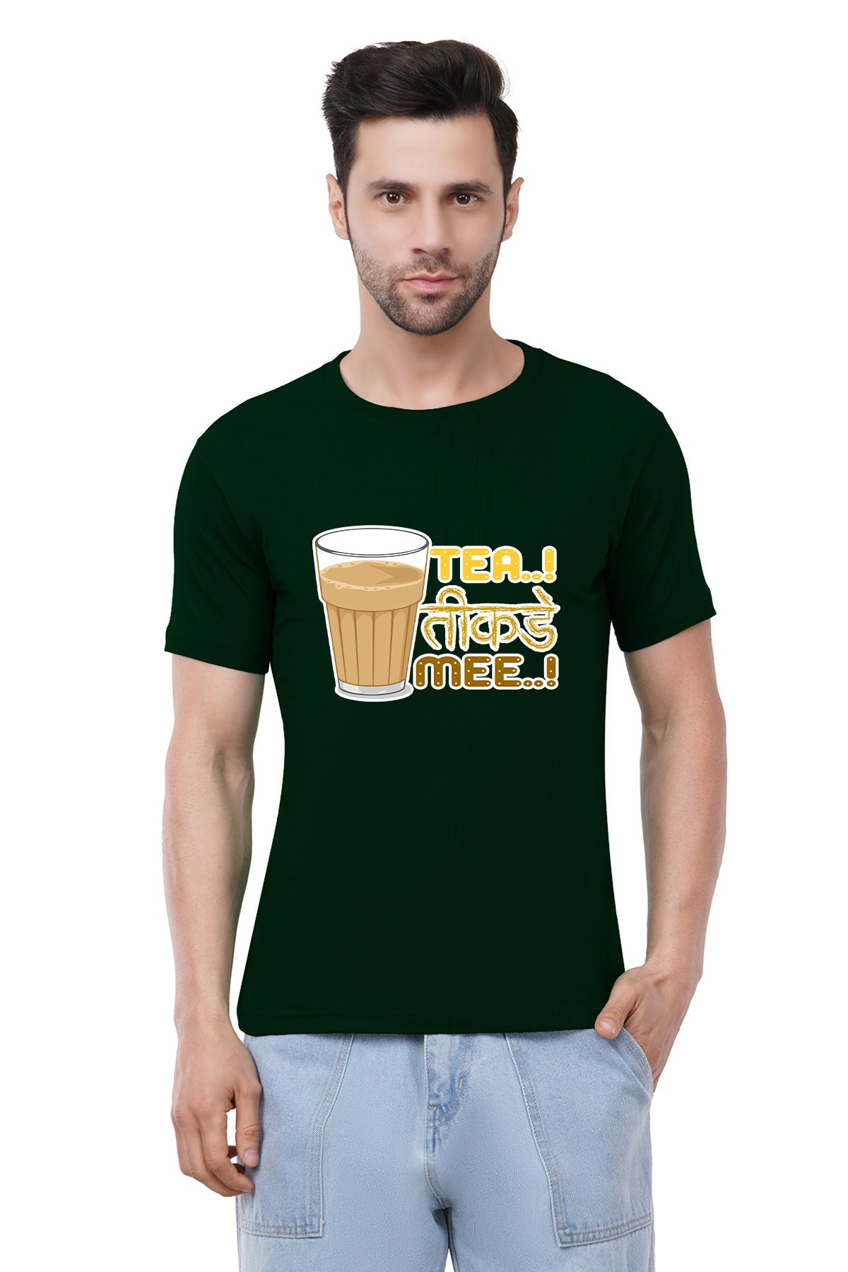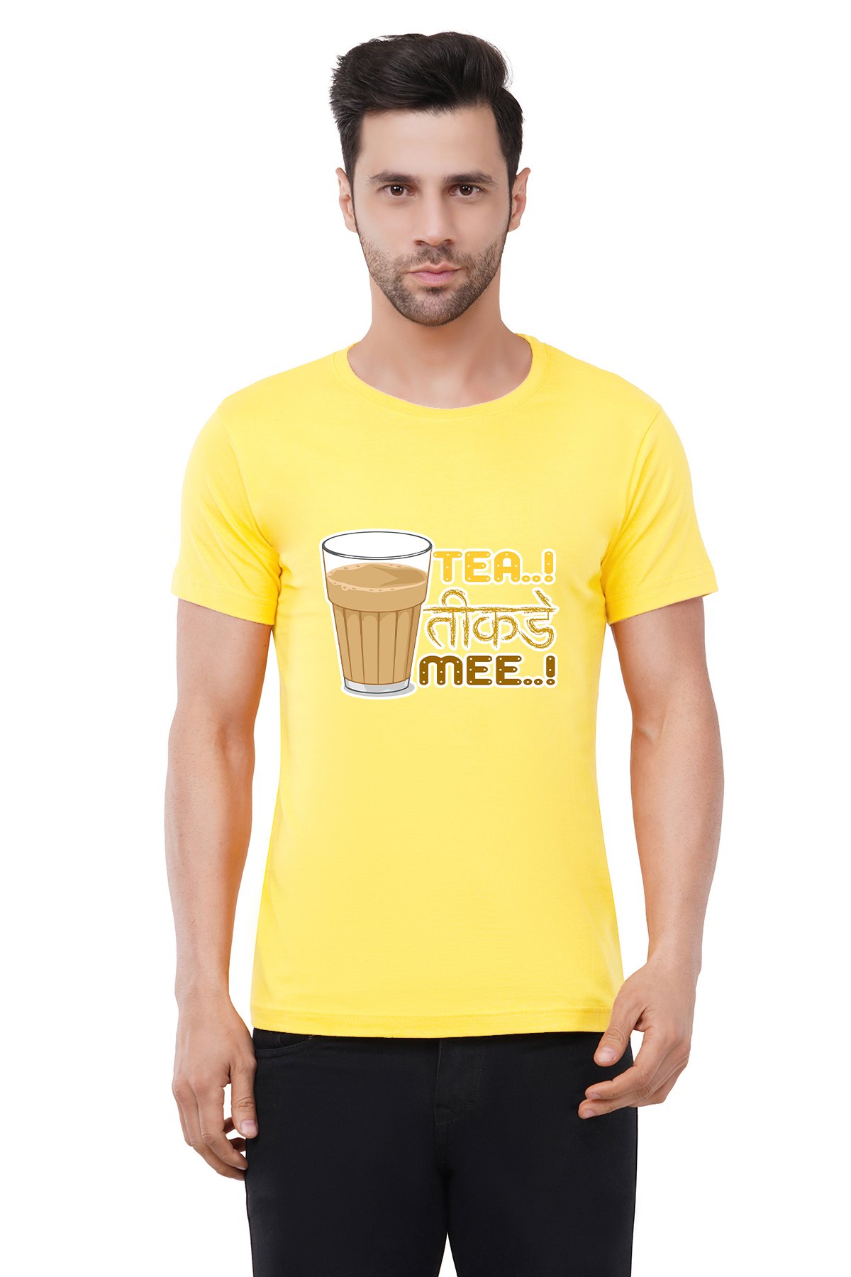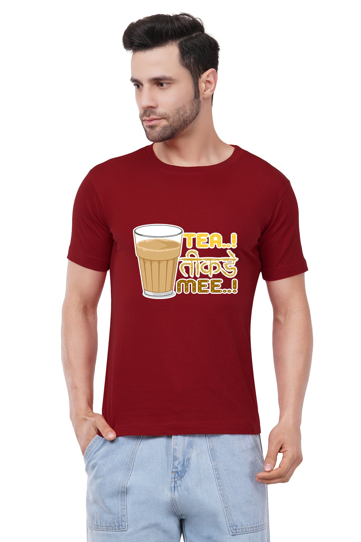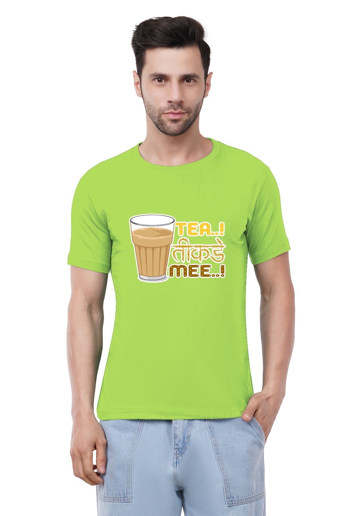 Caseria Men's Cotton Graphic Printed Half Sleeve T-Shirt - Tea Tikde Mee (Marathi)