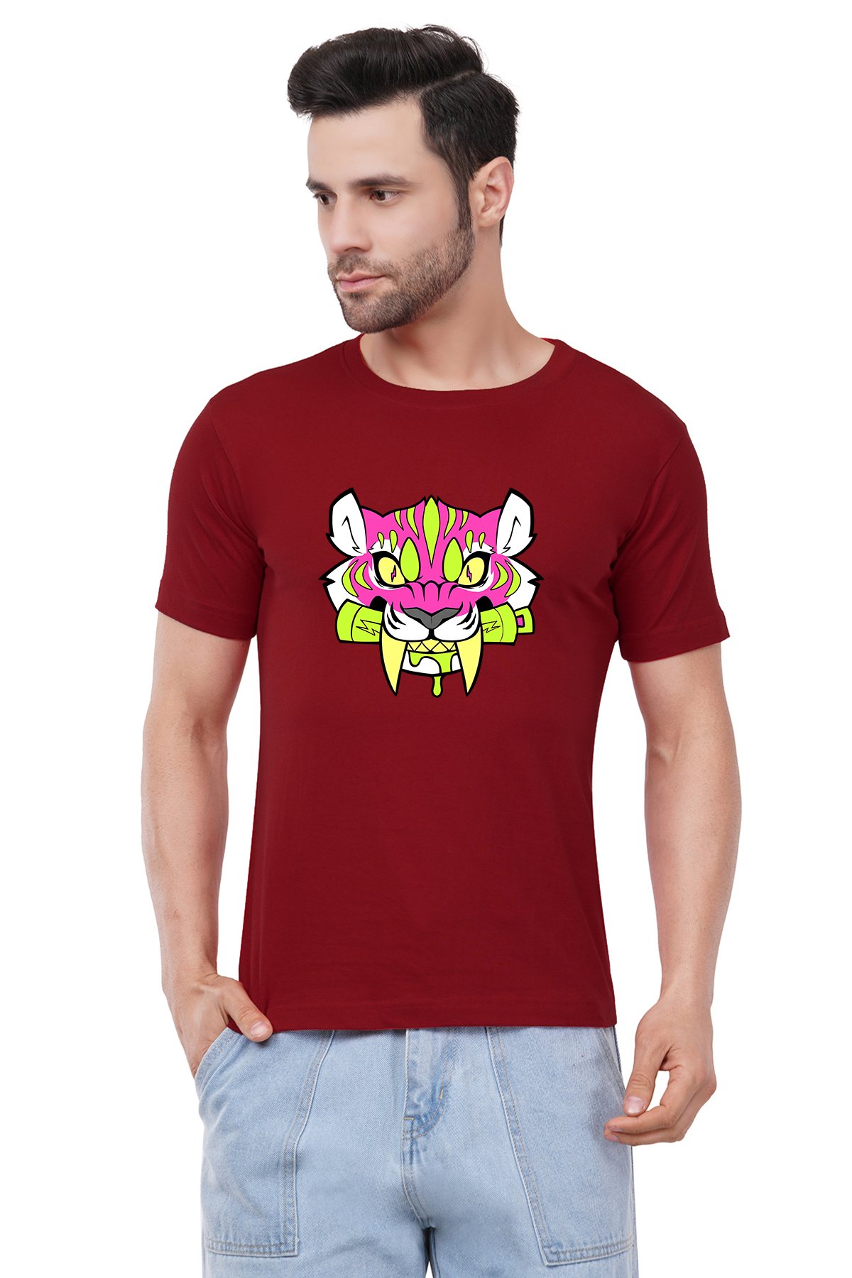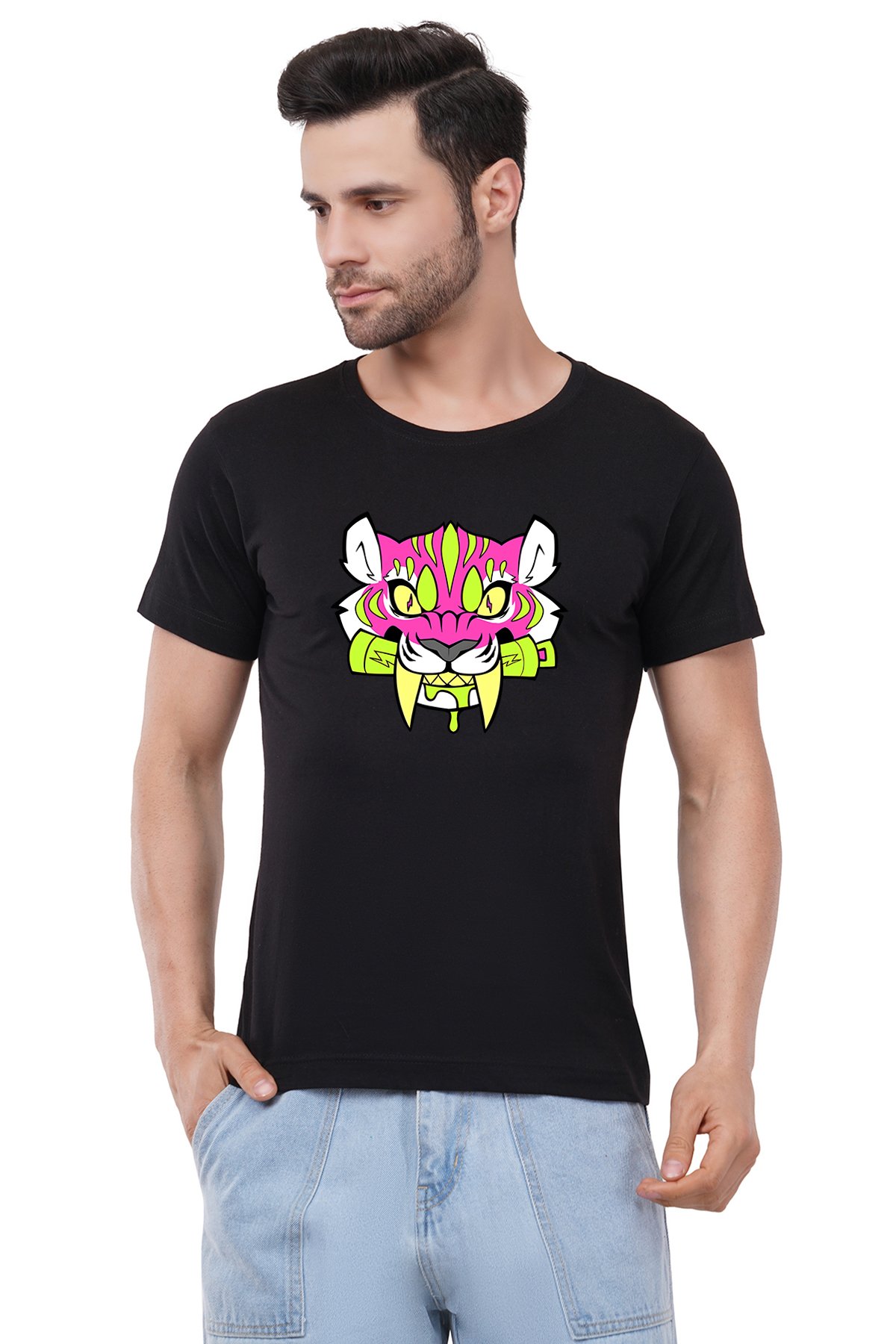 Caseria Men's Cotton Graphic Printed Half Sleeve T-Shirt - Tiger Roll