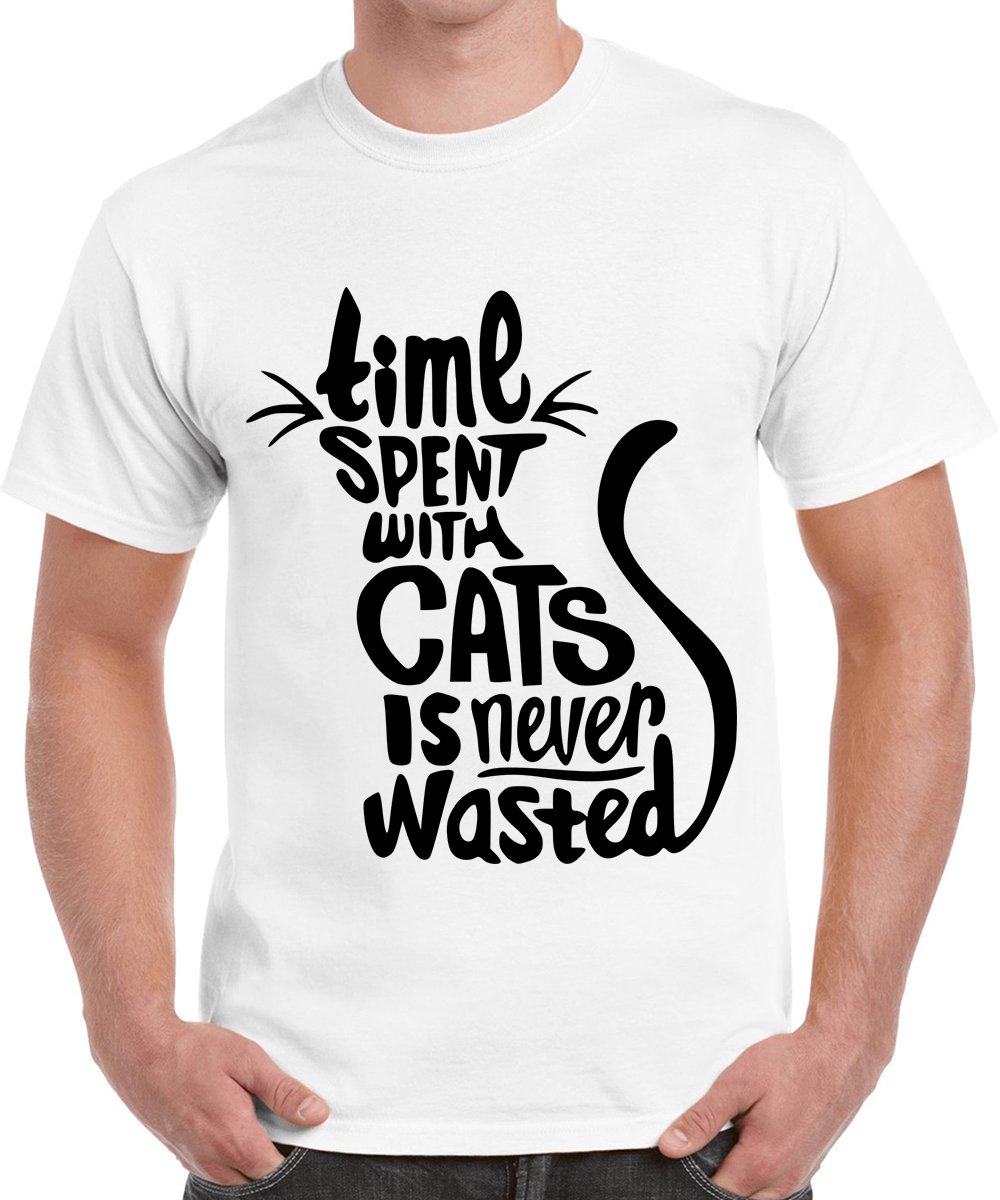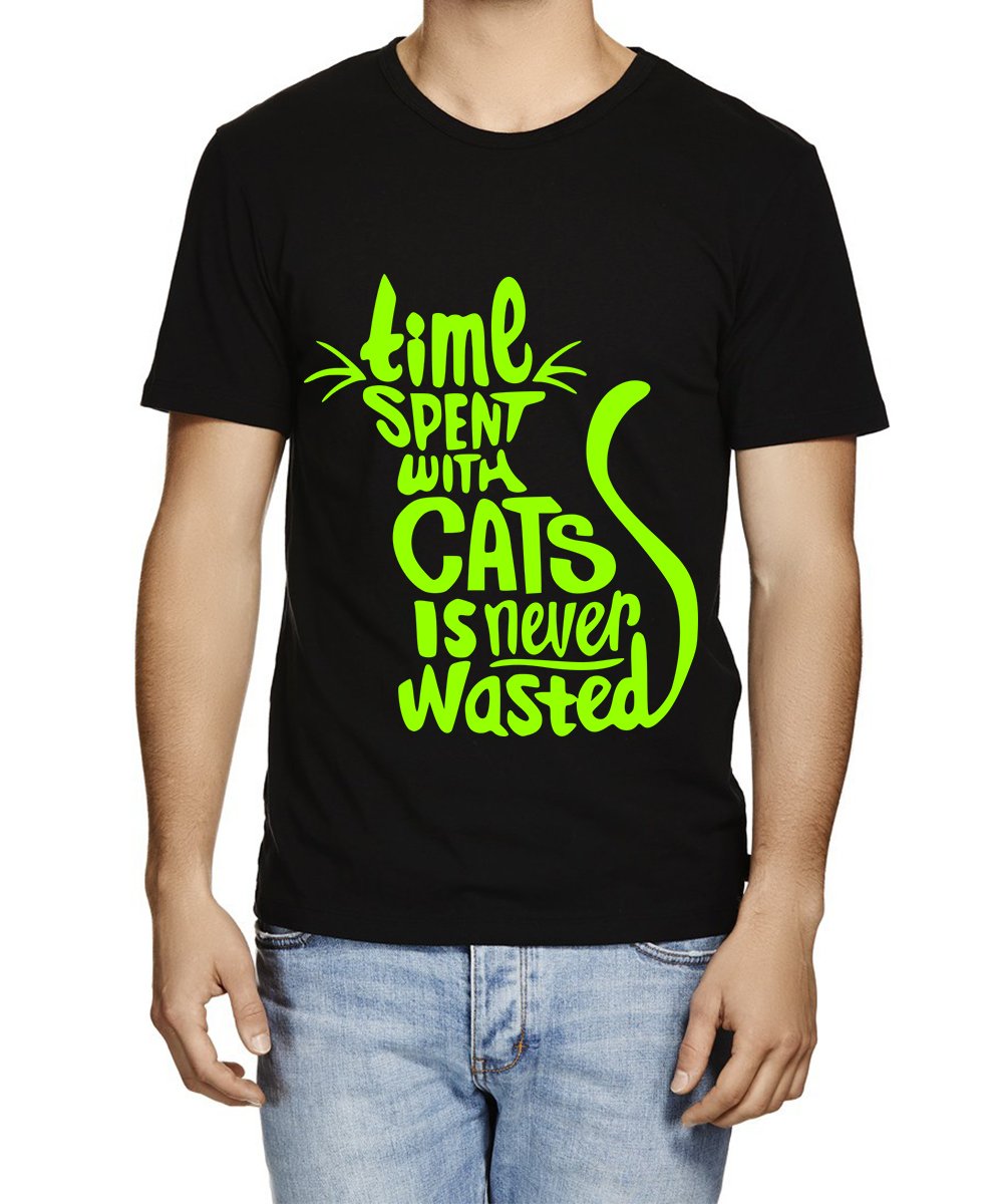 Caseria Men's Cotton Graphic Printed Half Sleeve T-Shirt - Time Never Wasted Cats Wasted
