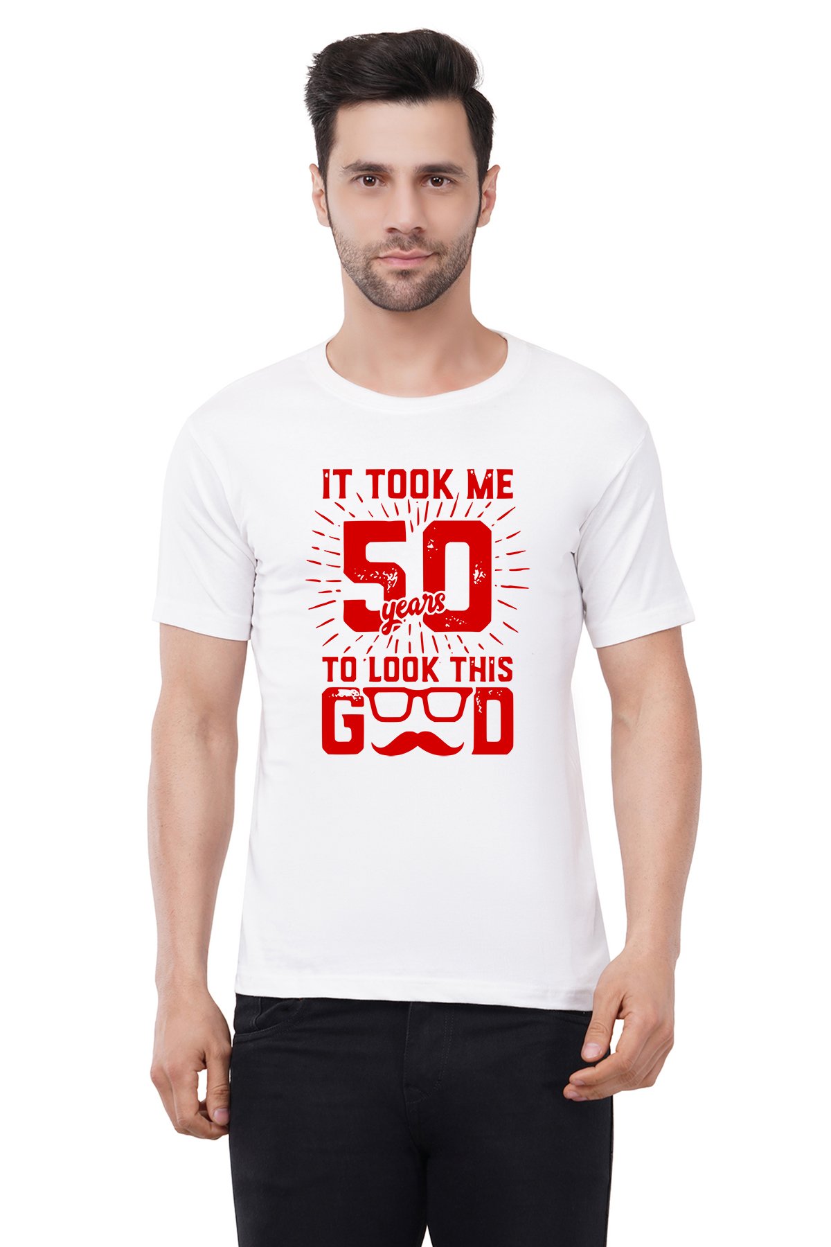 Caseria Men's Cotton Graphic Printed Half Sleeve T-Shirt - Took Me 50