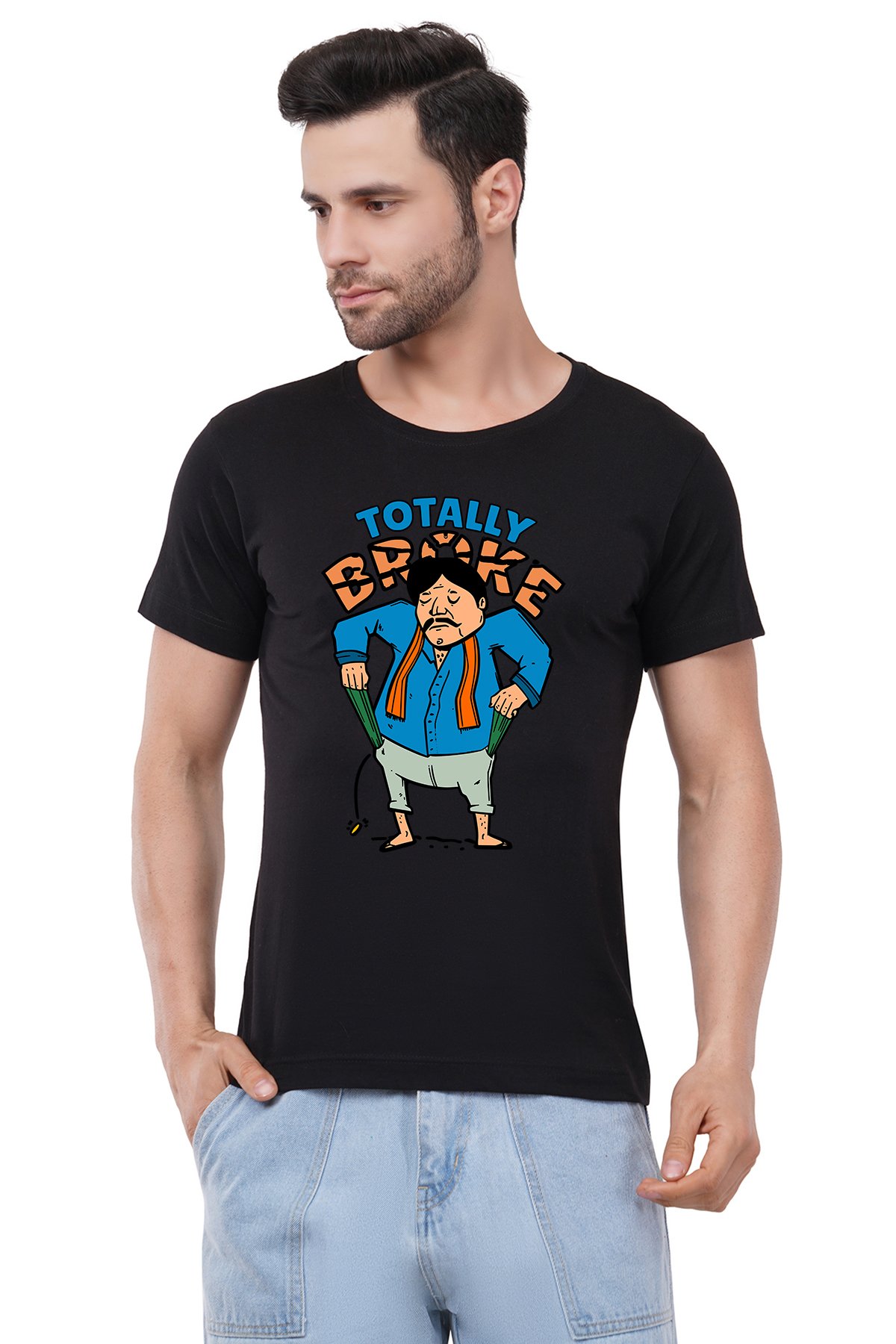 Caseria Men's Cotton Graphic Printed Half Sleeve T-Shirt - Totally Broke