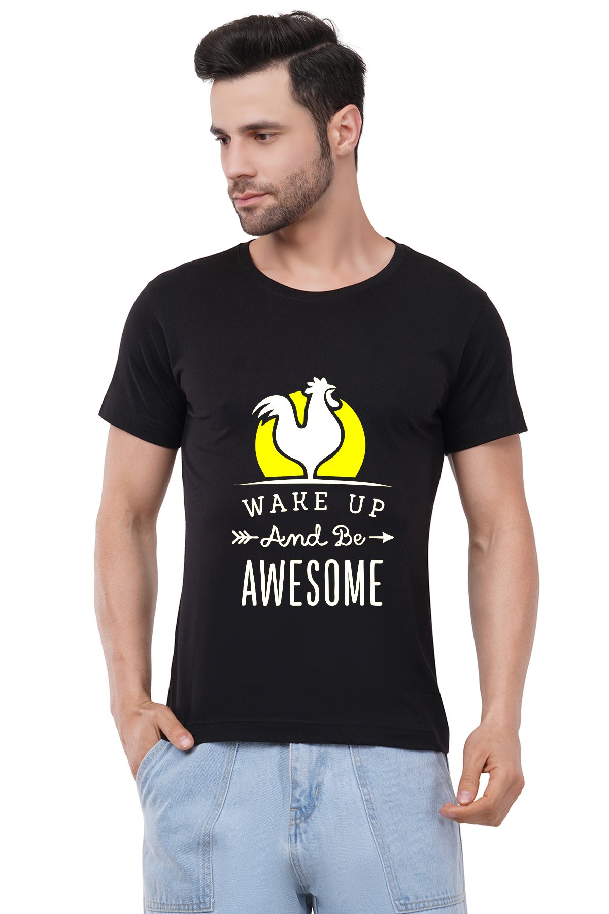 Caseria Men's Cotton Graphic Printed Half Sleeve T-Shirt - Wake Up Be Awesome