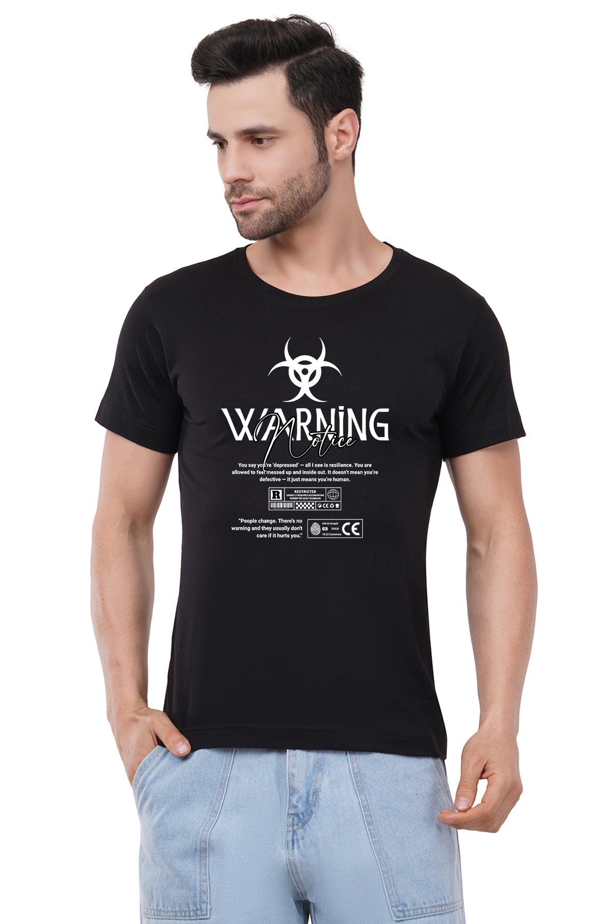 Caseria Men's Cotton Graphic Printed Half Sleeve T-Shirt - Warning Notice