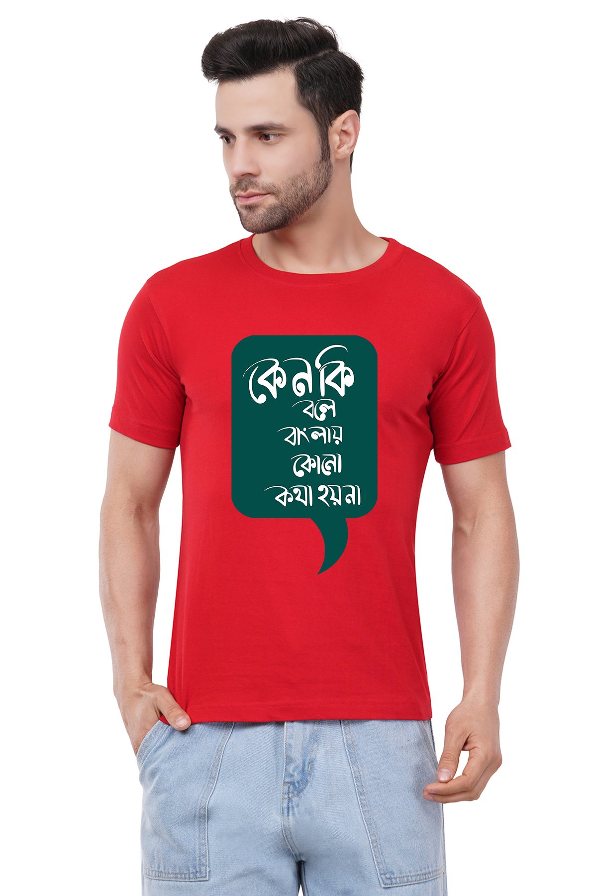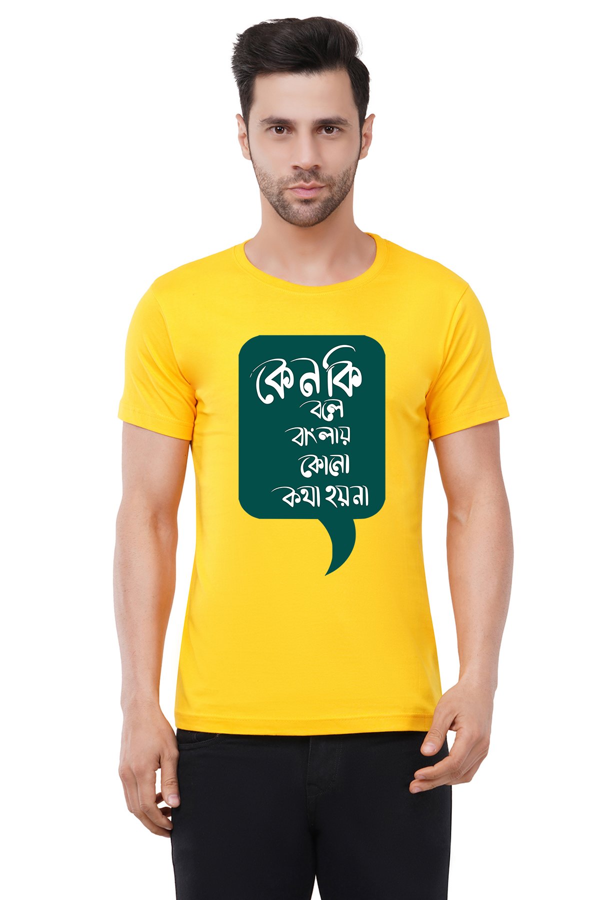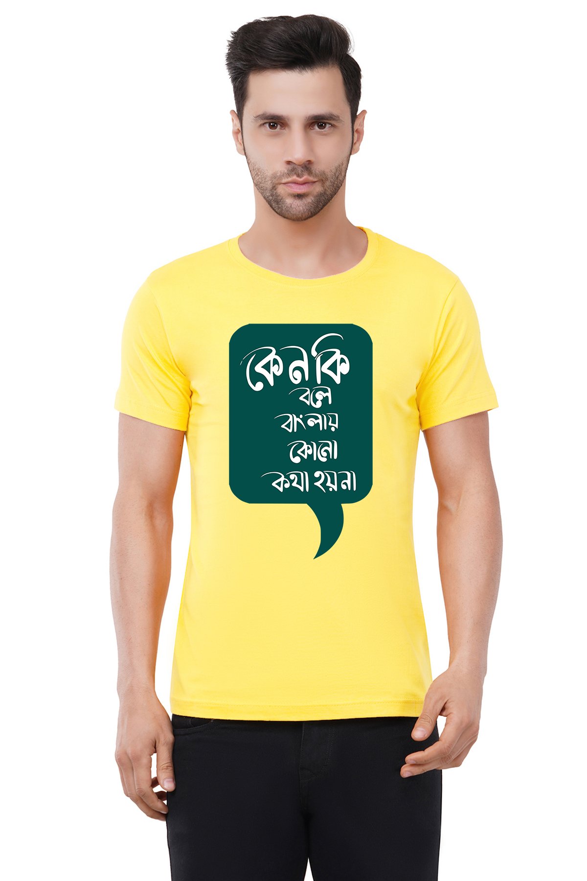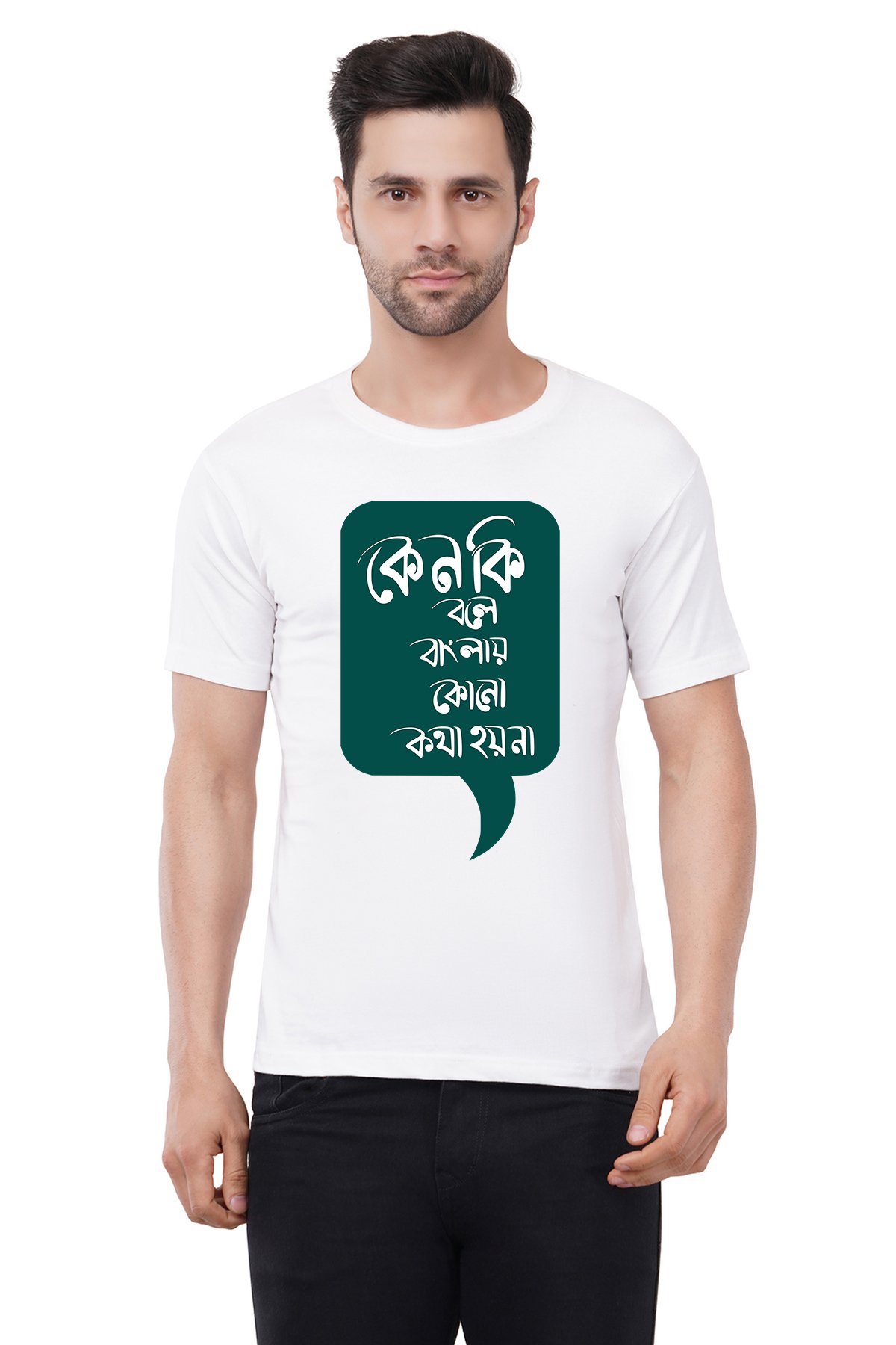Caseria Men's Cotton Graphic Printed Half Sleeve T-Shirt - Why is there no talk in Bengali?