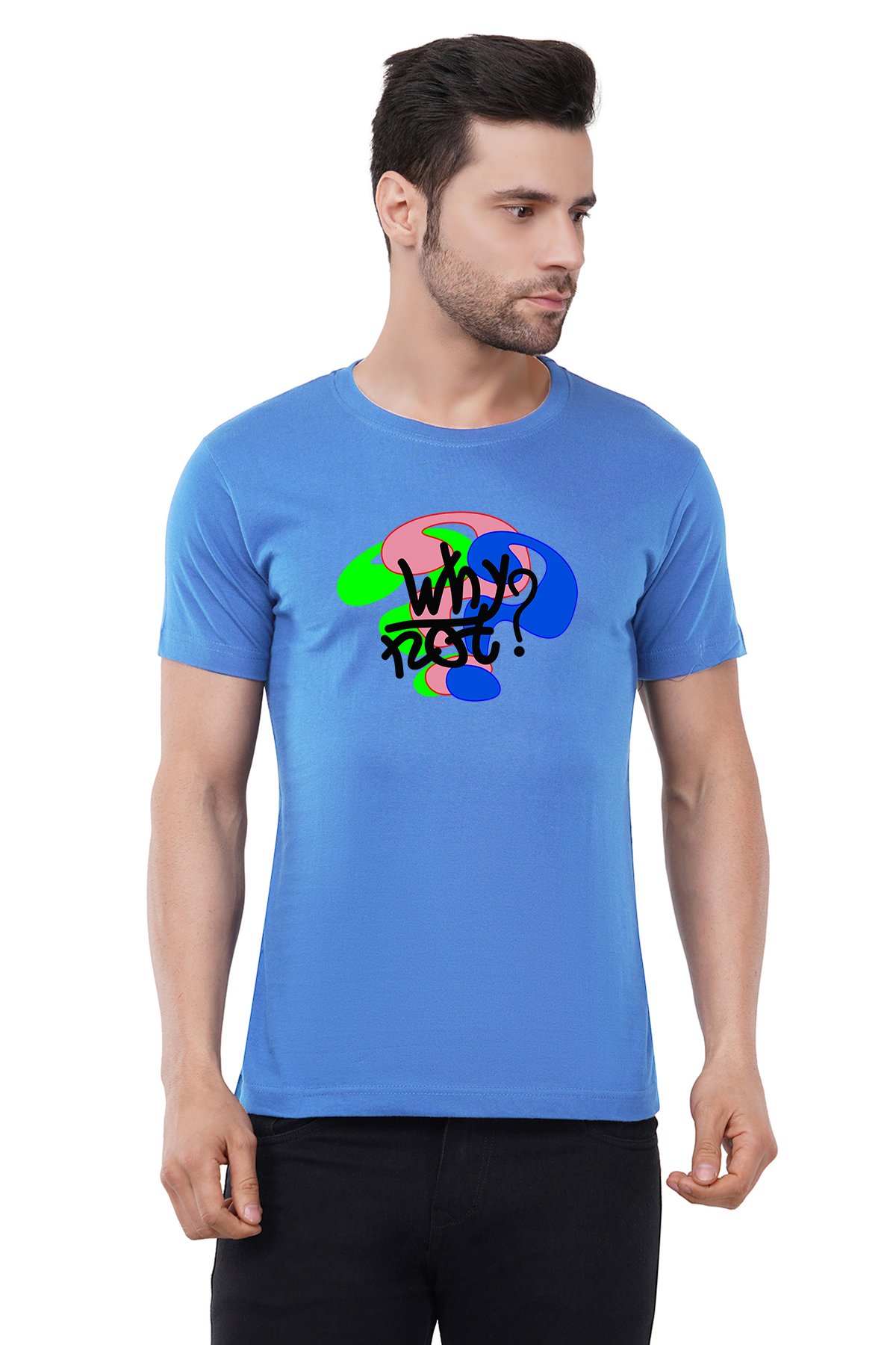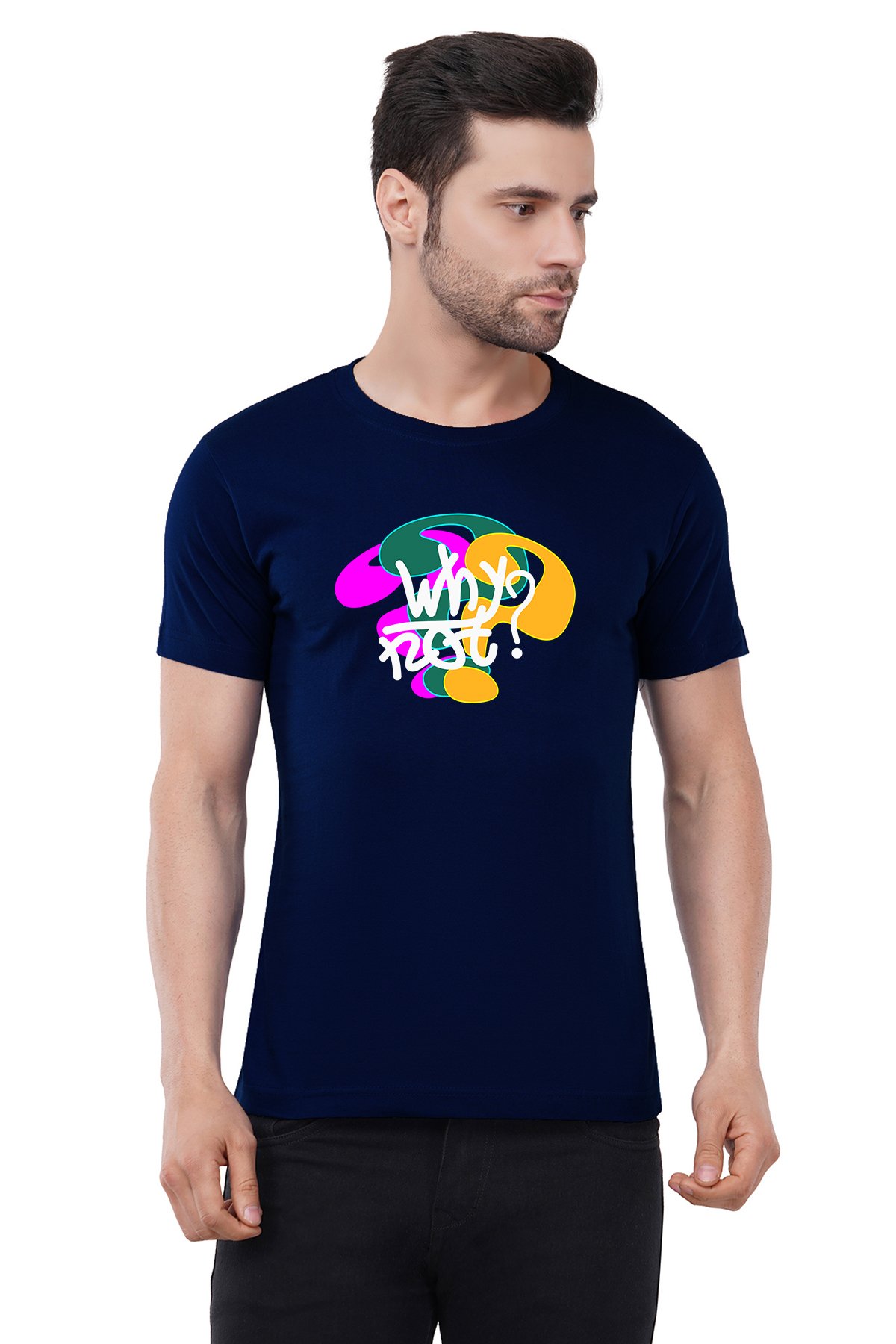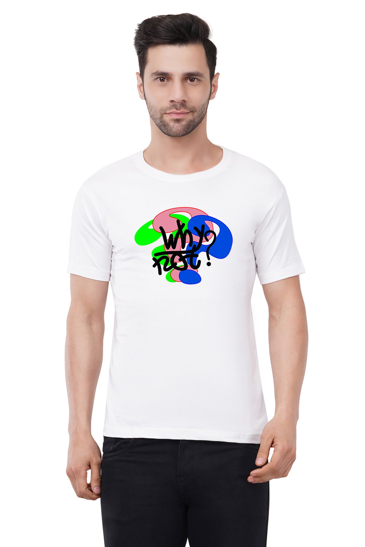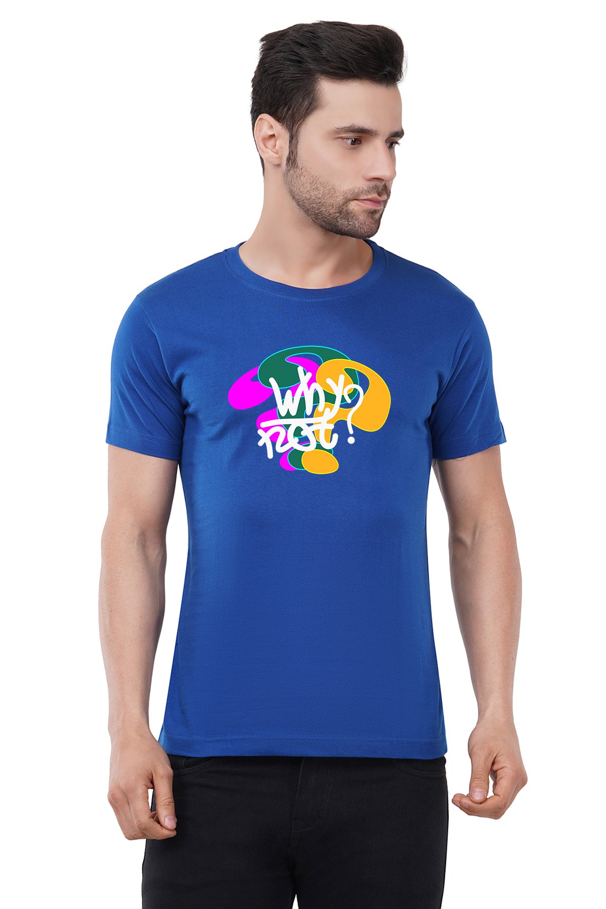 Caseria Men's Cotton Graphic Printed Half Sleeve T-Shirt - Why Not