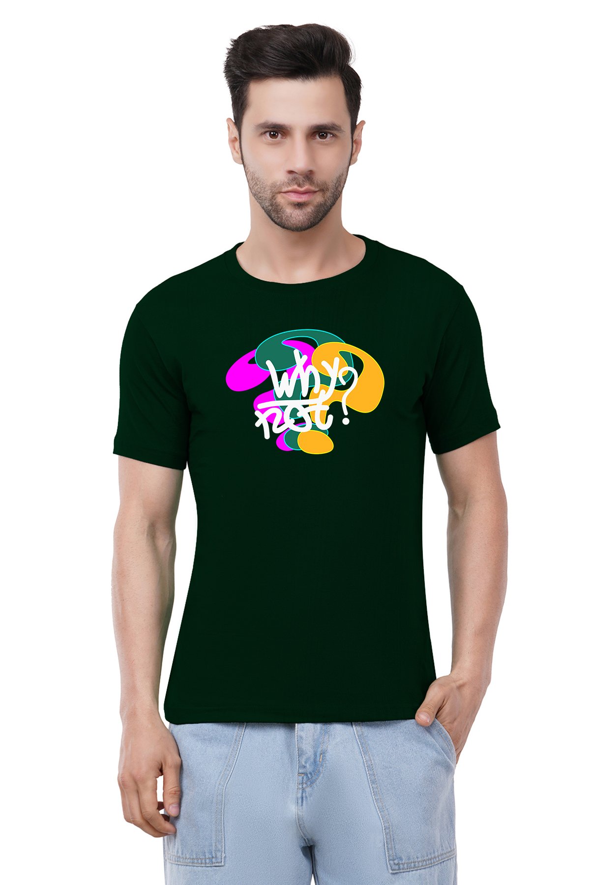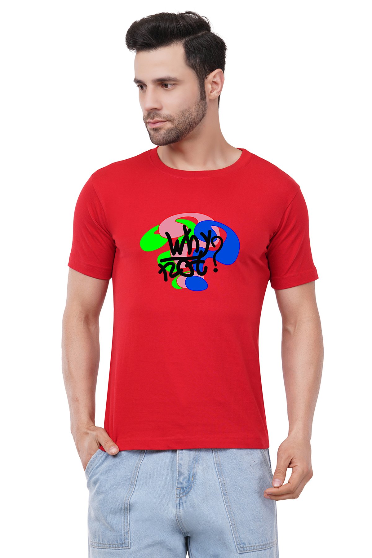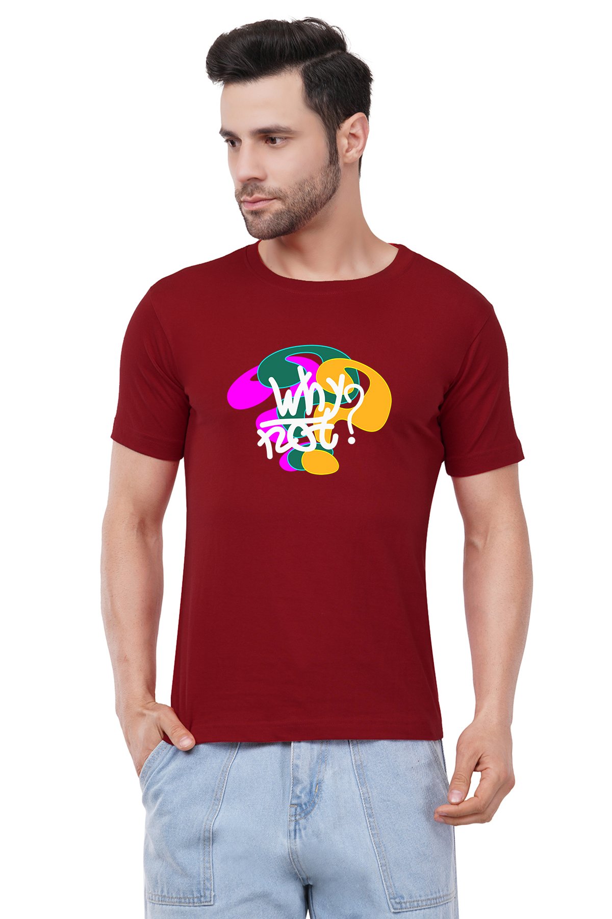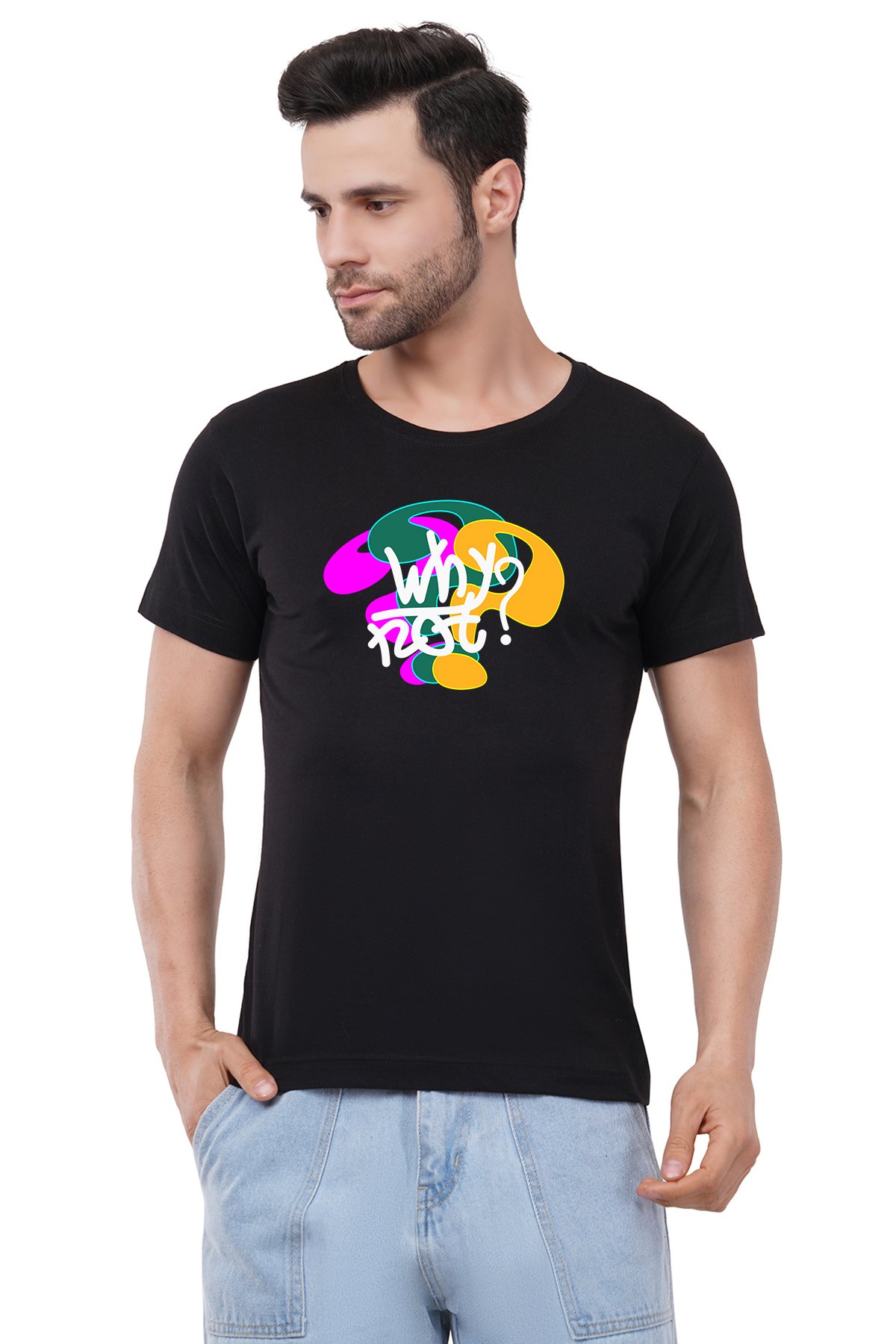 Caseria Men's Cotton Graphic Printed Half Sleeve T-Shirt - Why Not