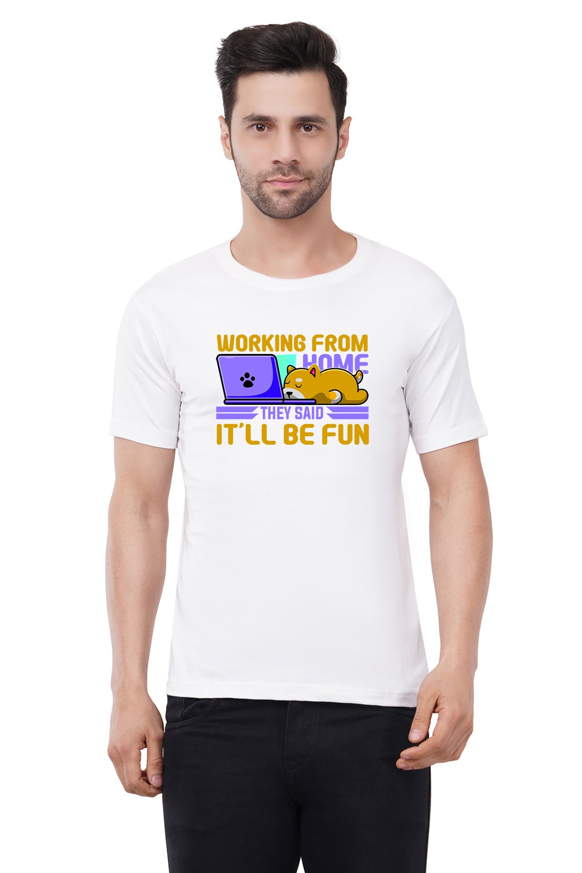 Caseria Men's Cotton Graphic Printed Half Sleeve T-Shirt - Work Be Fun