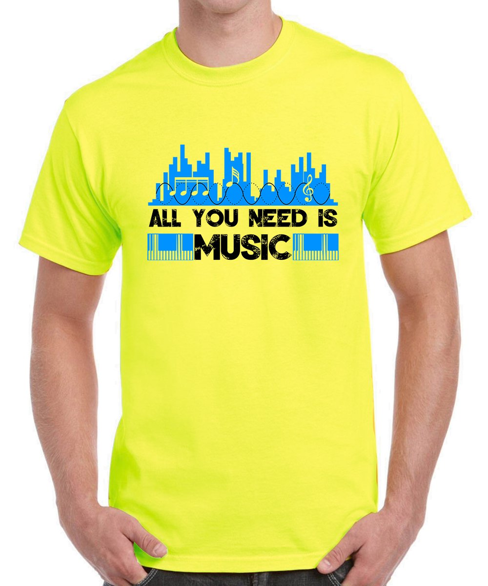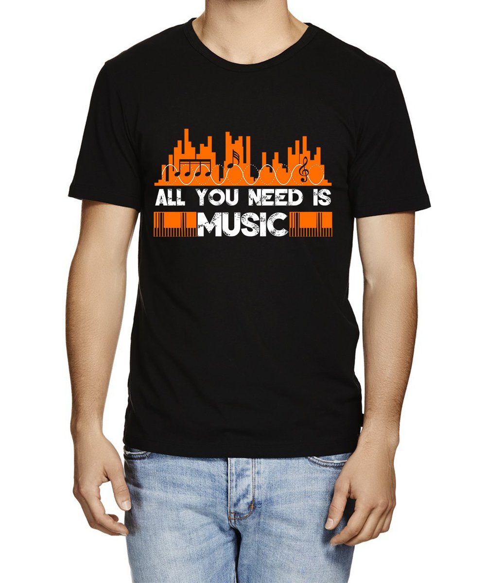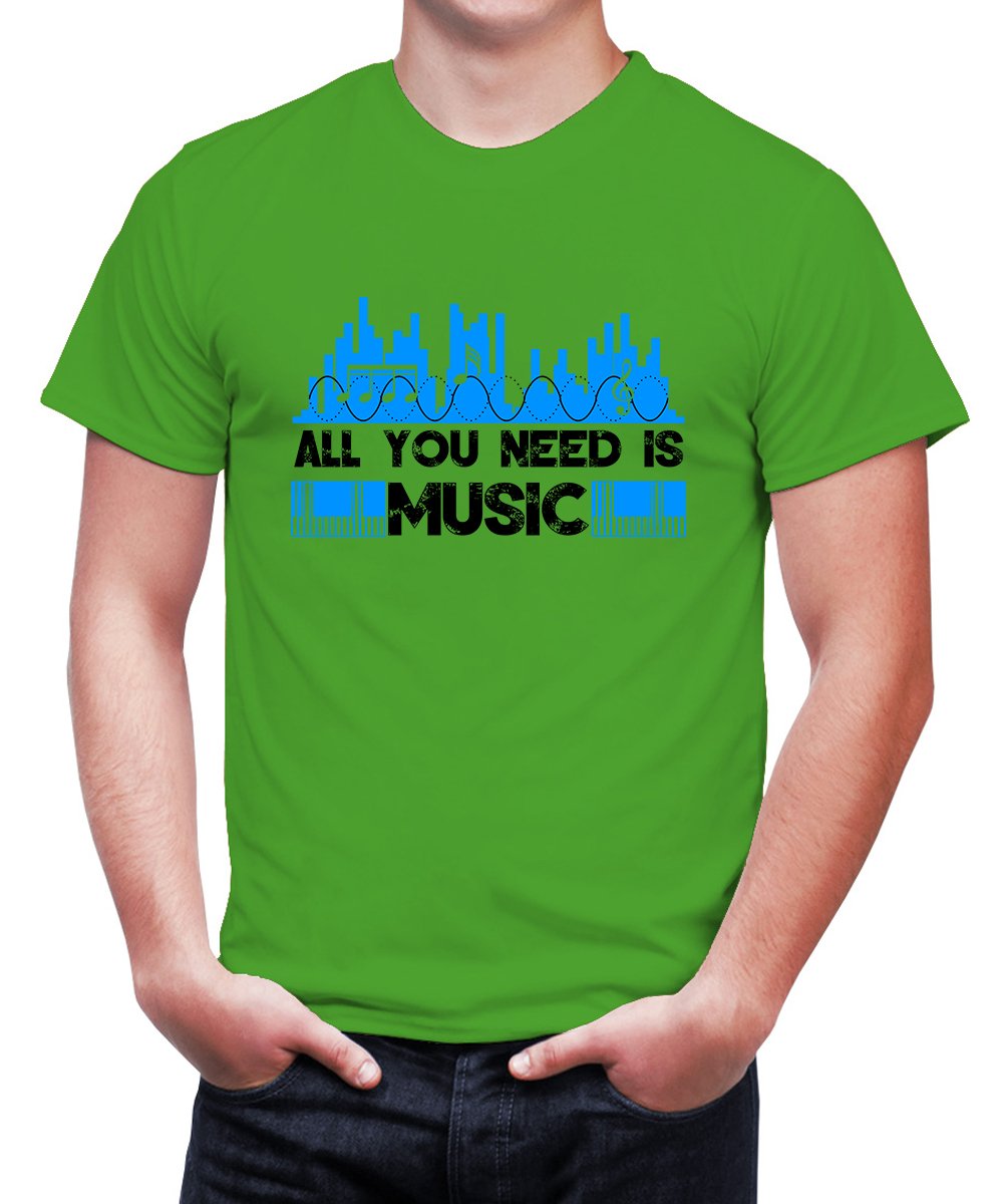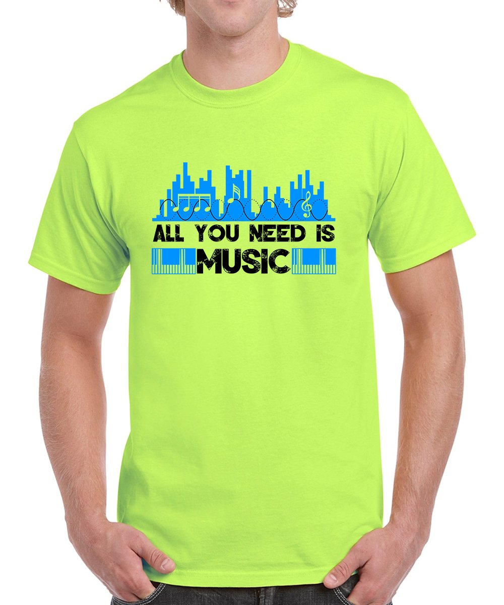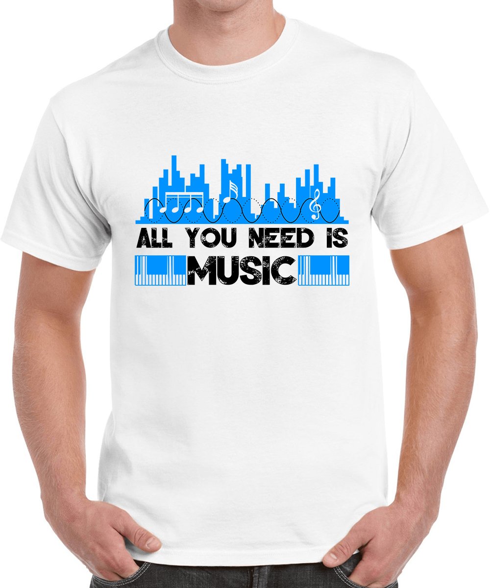 Caseria Men's Round Neck Cotton Half Sleeved T-Shirt With Printed Graphics - All You Need Is Music