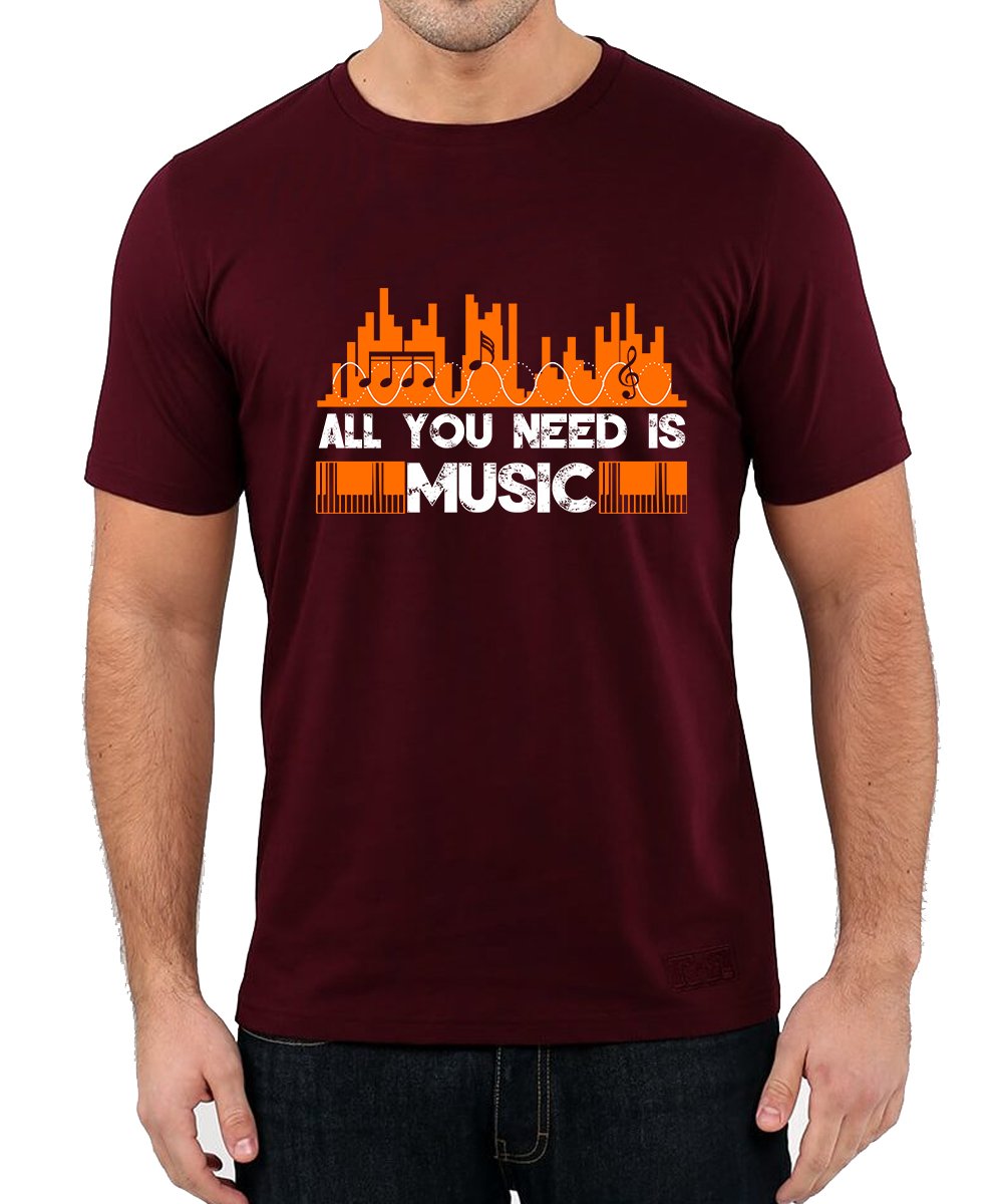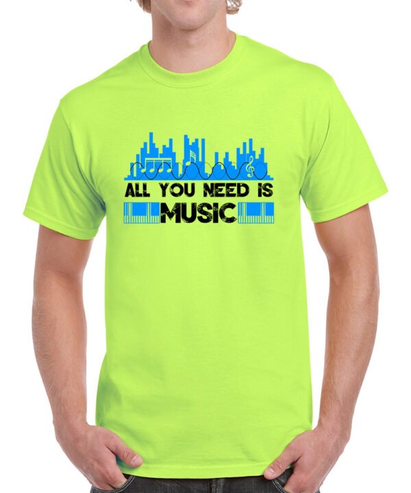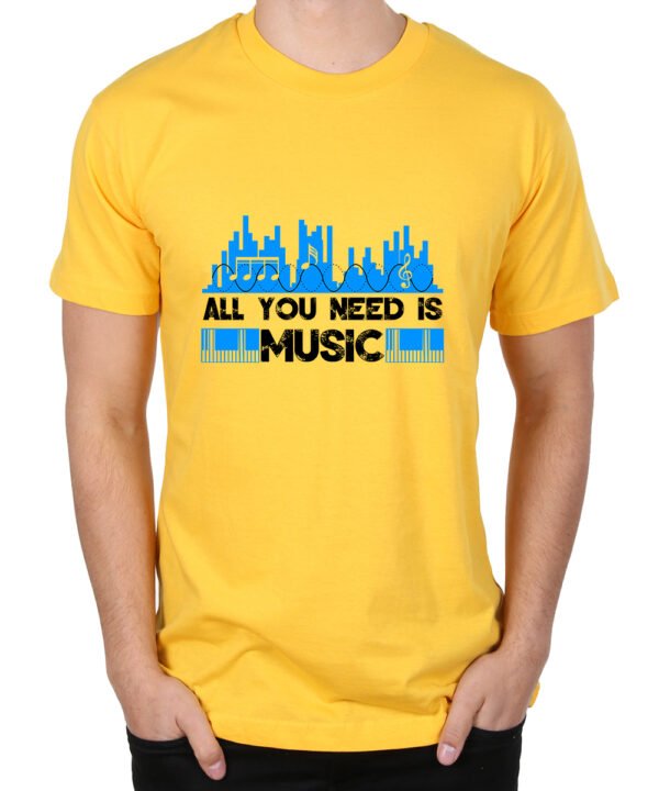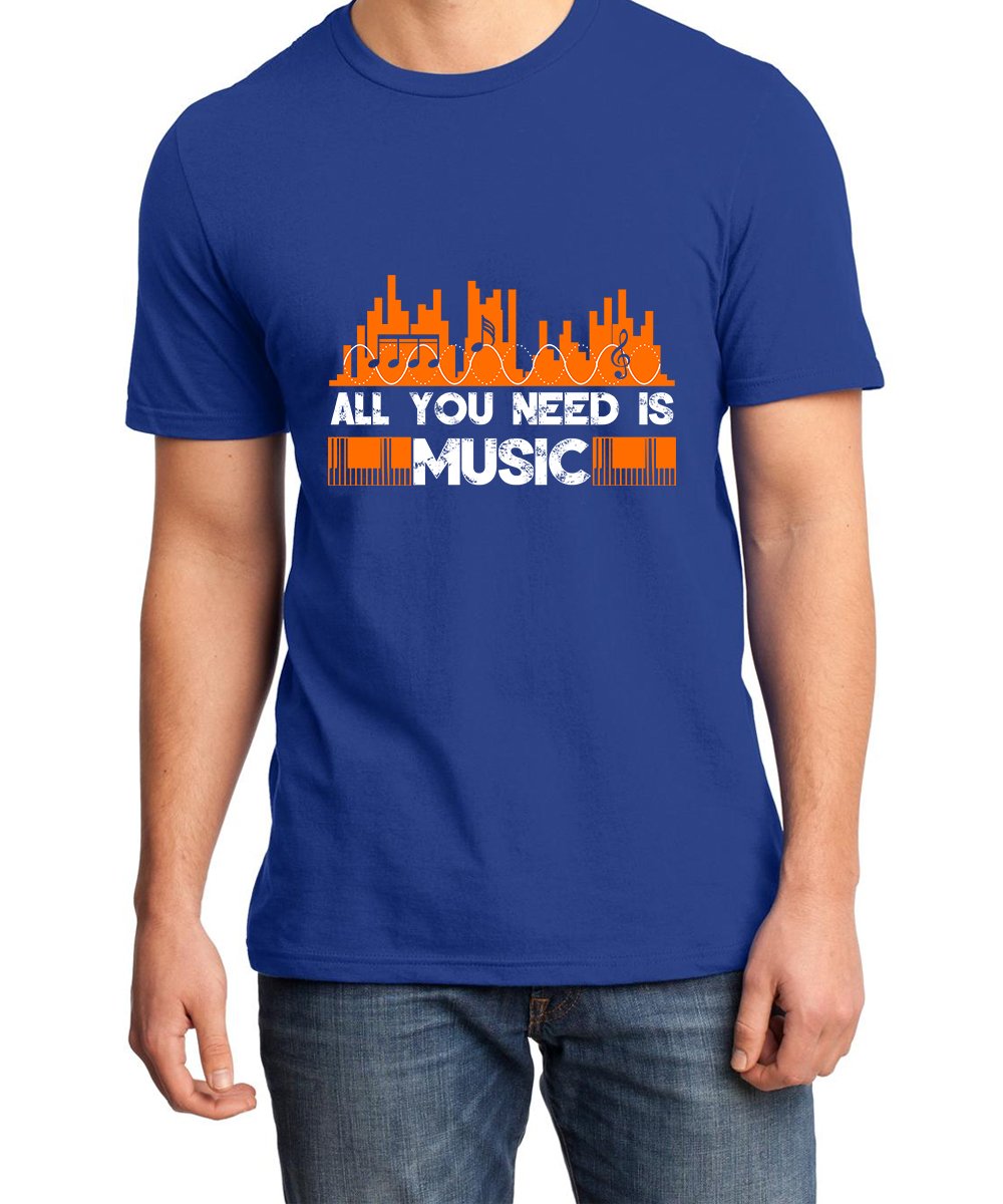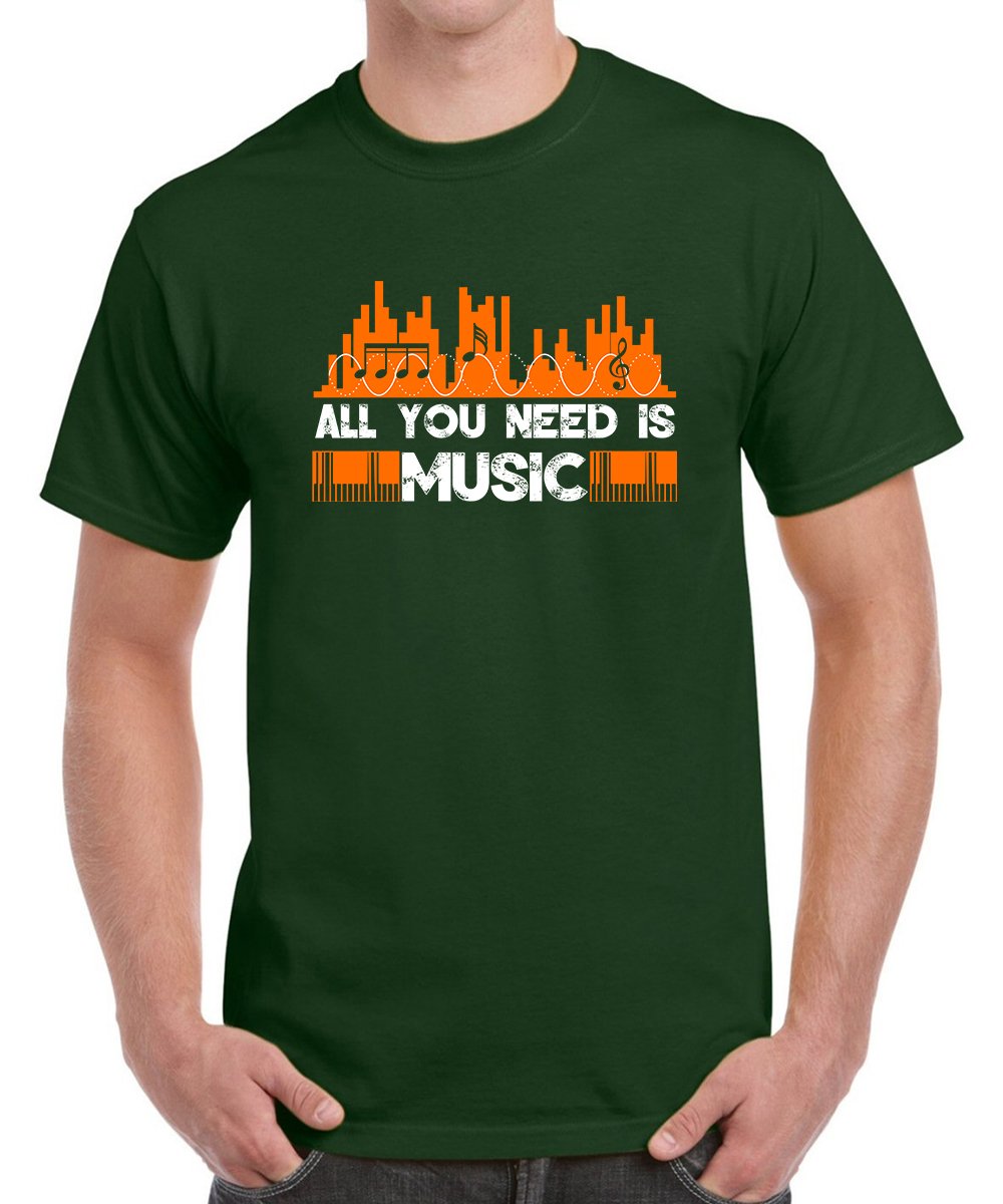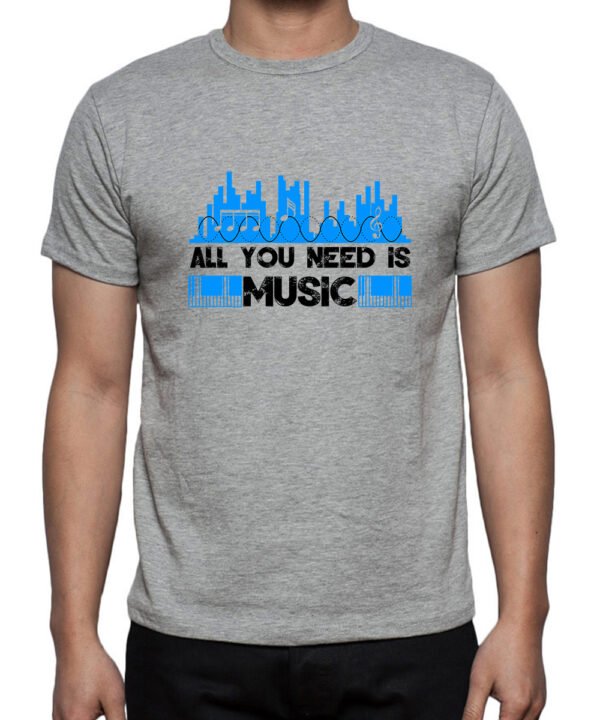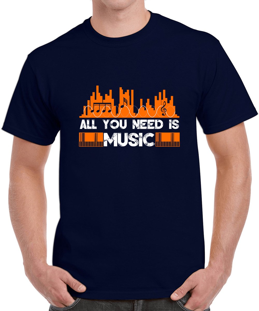 Caseria Men's Round Neck Cotton Half Sleeved T-Shirt With Printed Graphics - All You Need Is Music