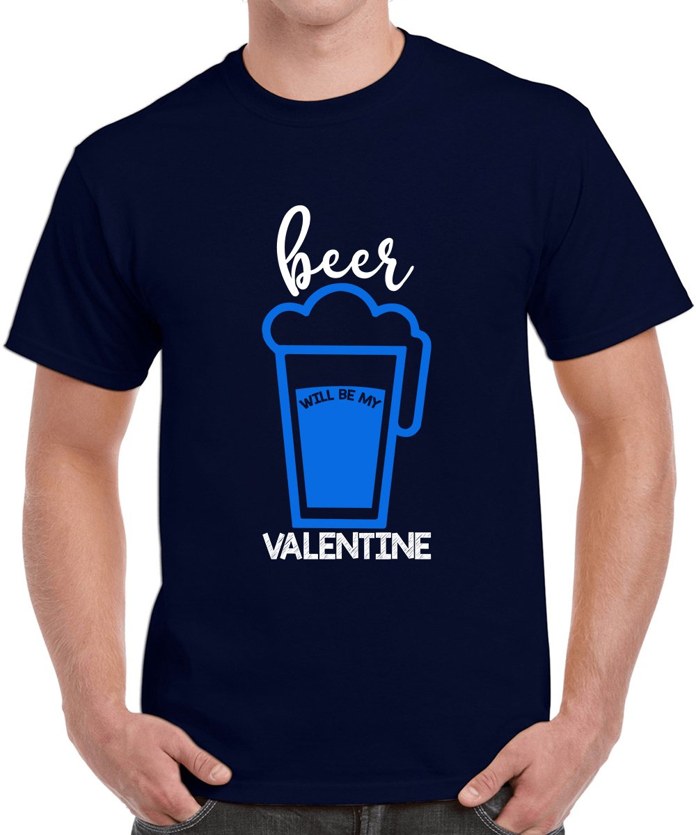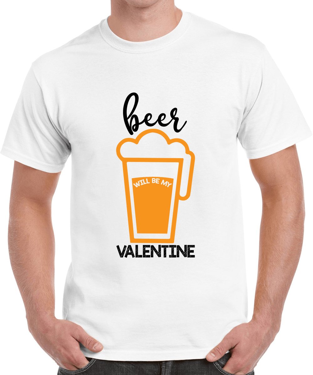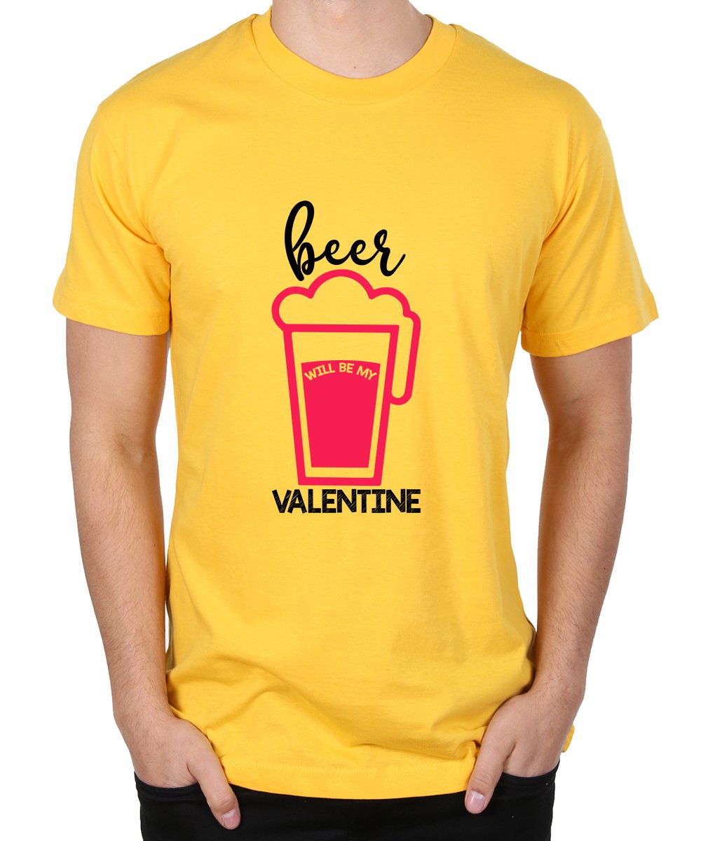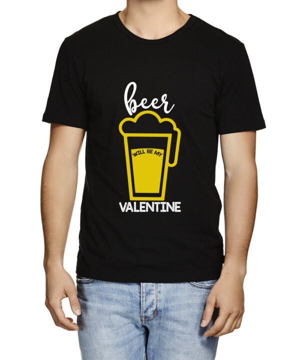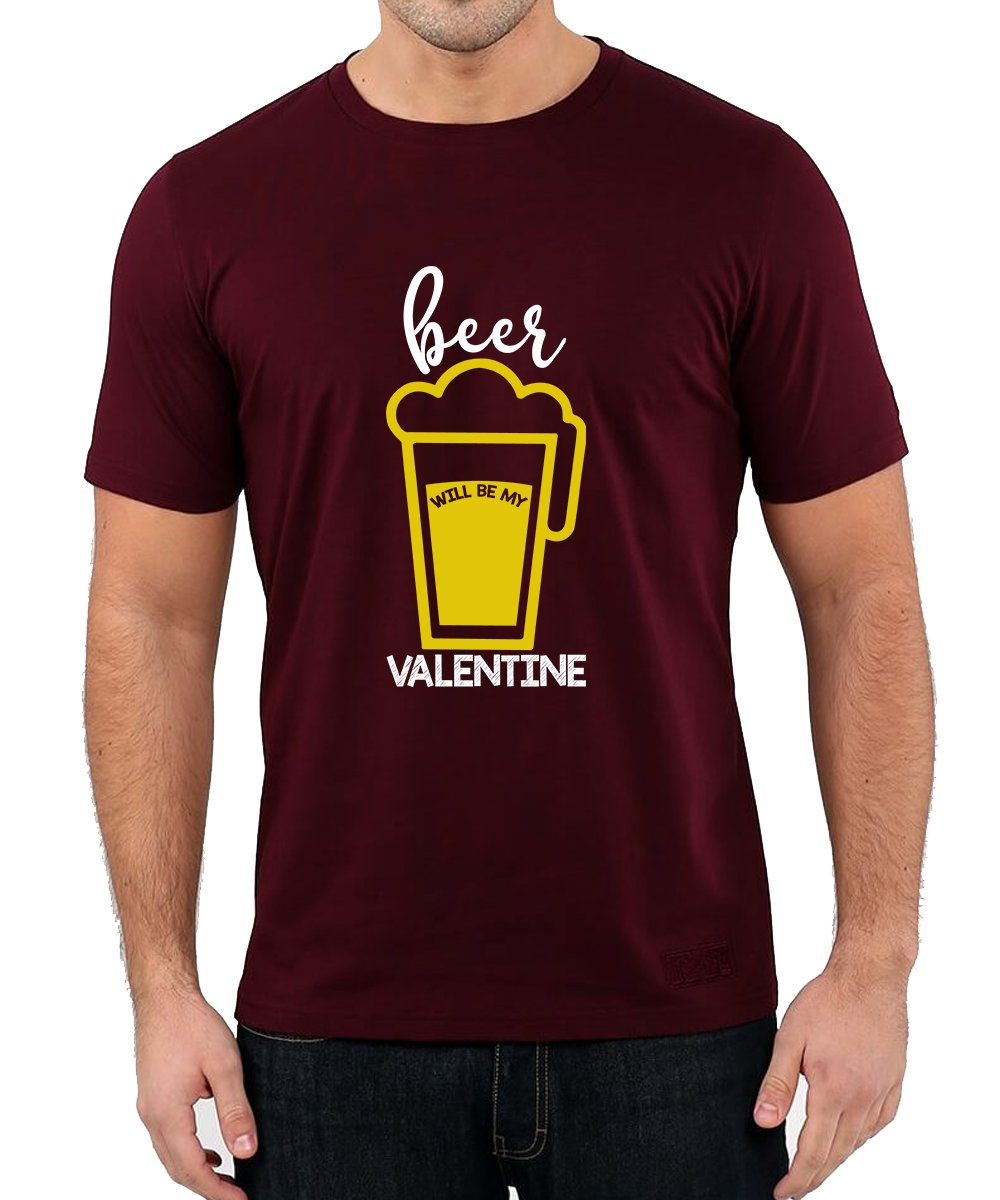 Caseria Men's Round Neck Cotton Half Sleeved T-Shirt With Printed Graphics - Beer My Valentine
