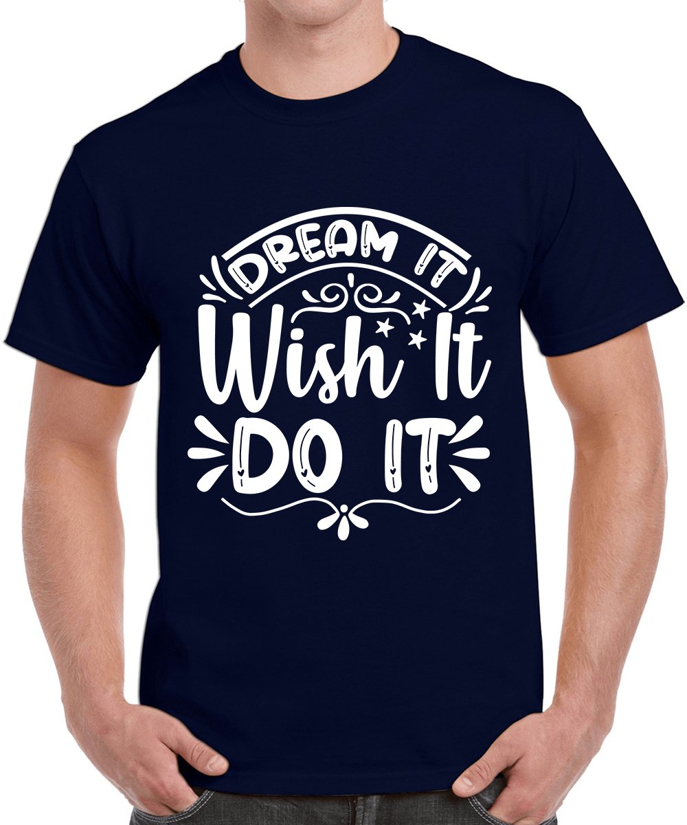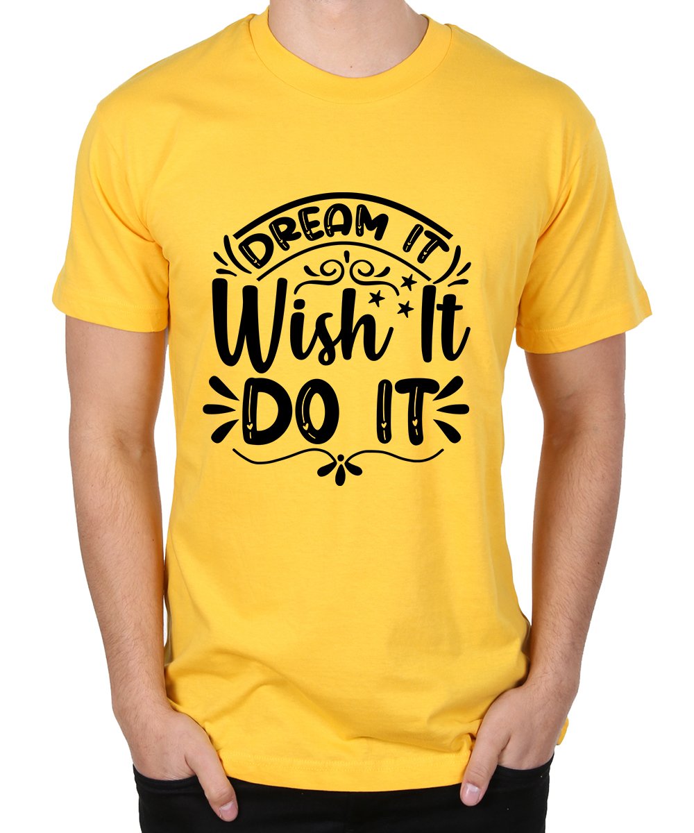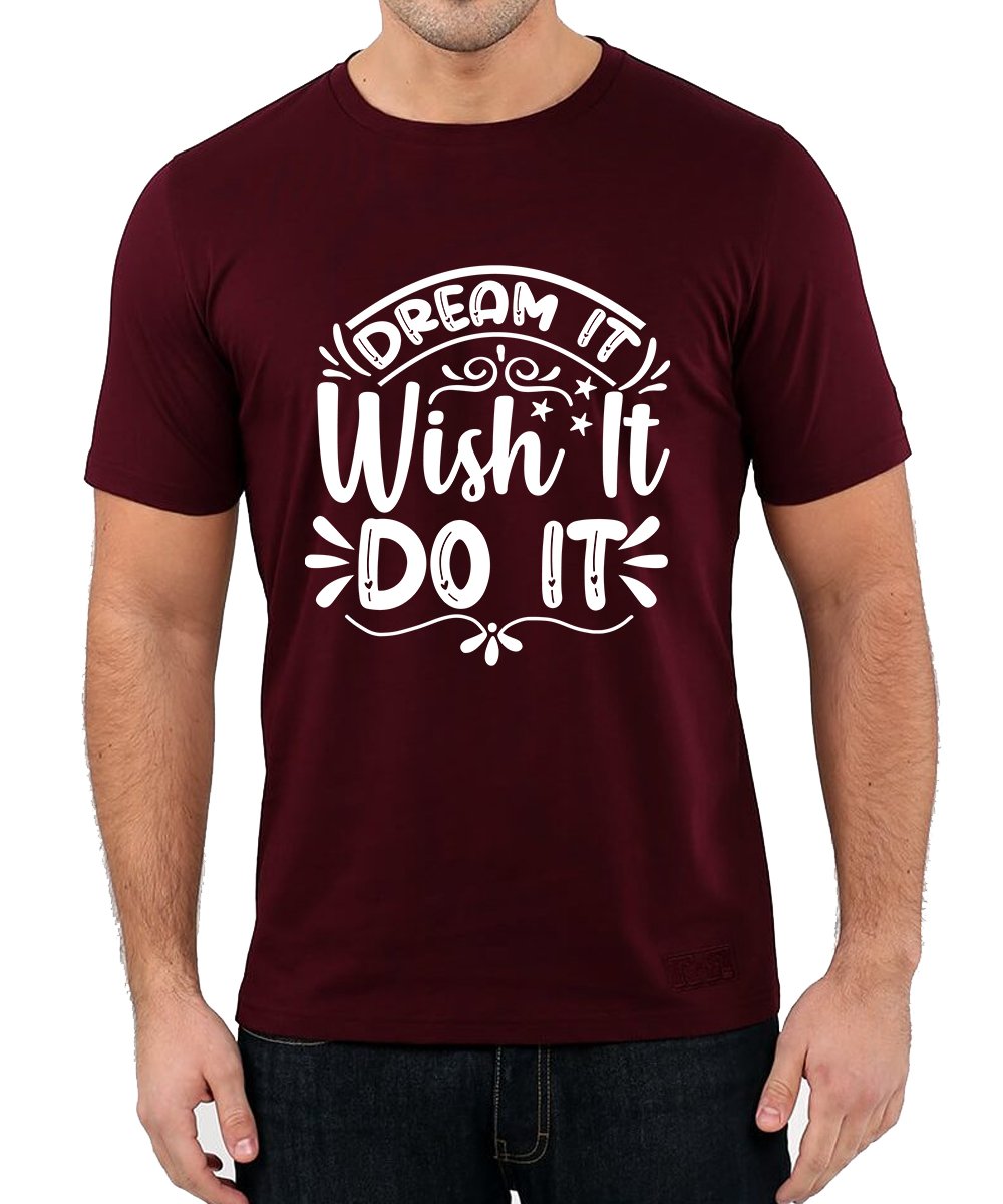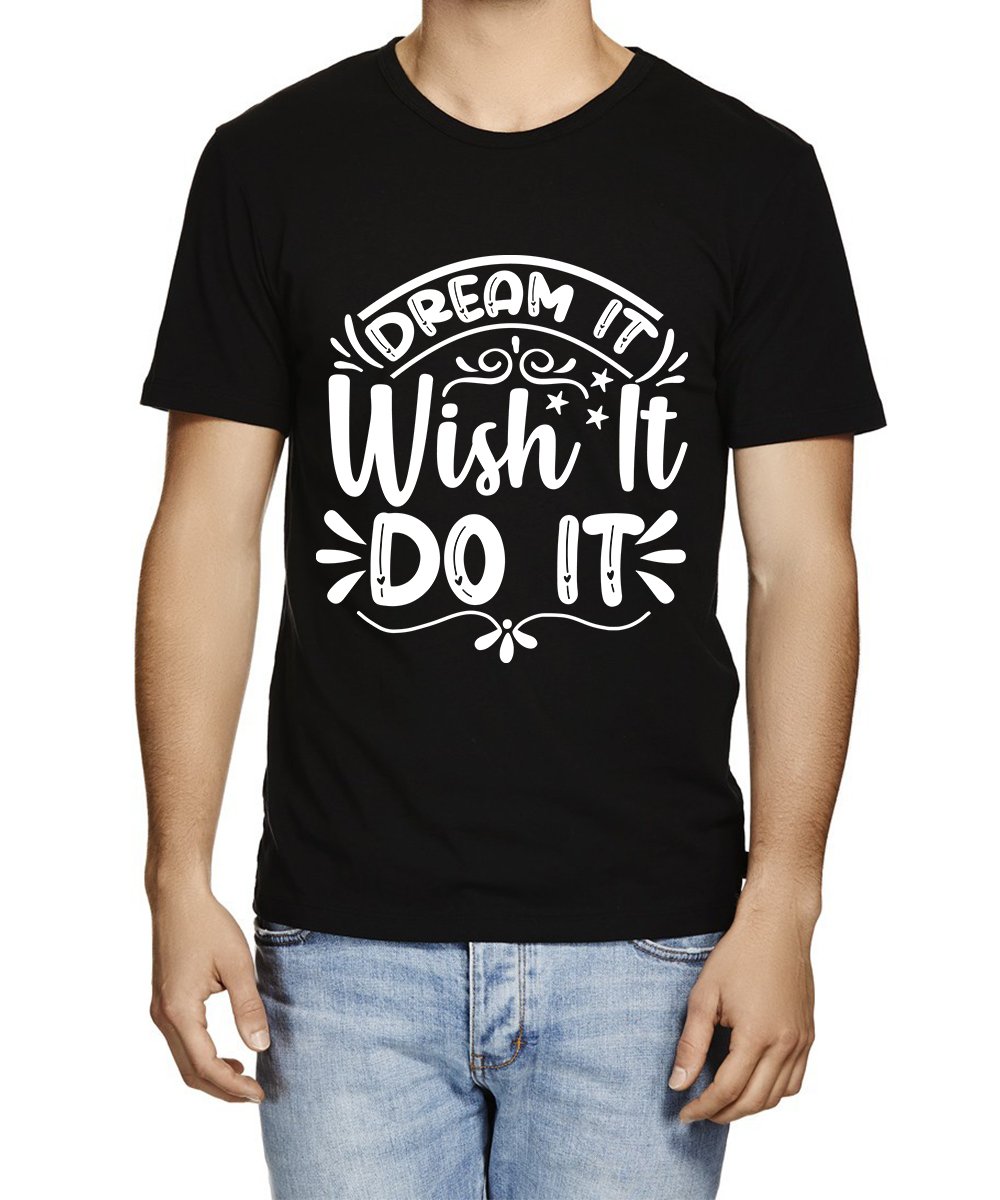 Caseria Men's Round Neck Cotton Half Sleeved T-Shirt With Printed Graphics - Dream It Wish It