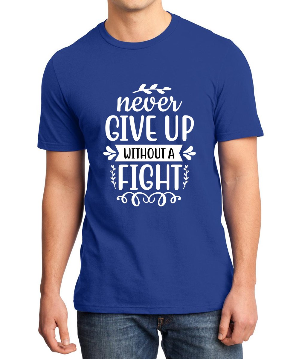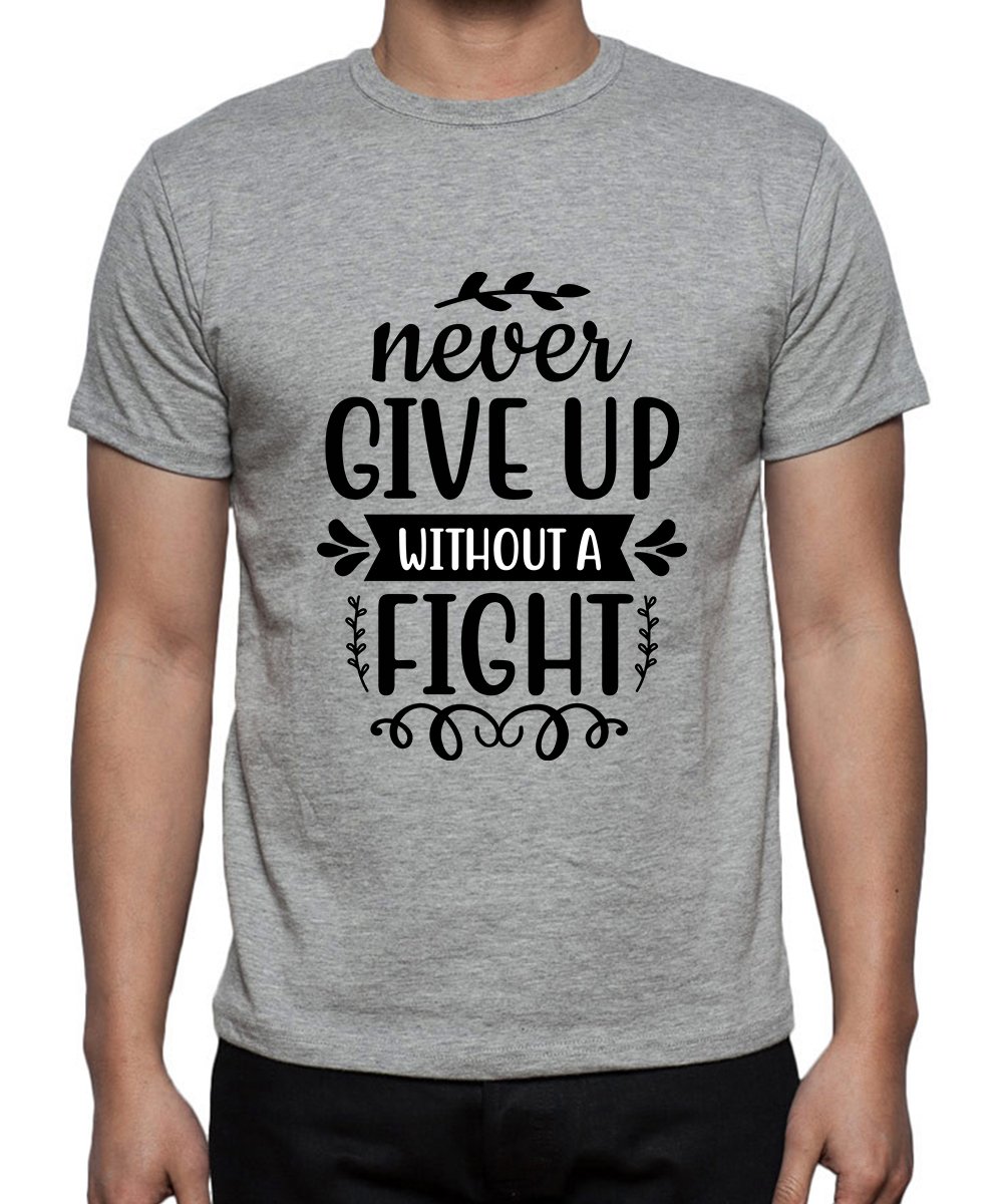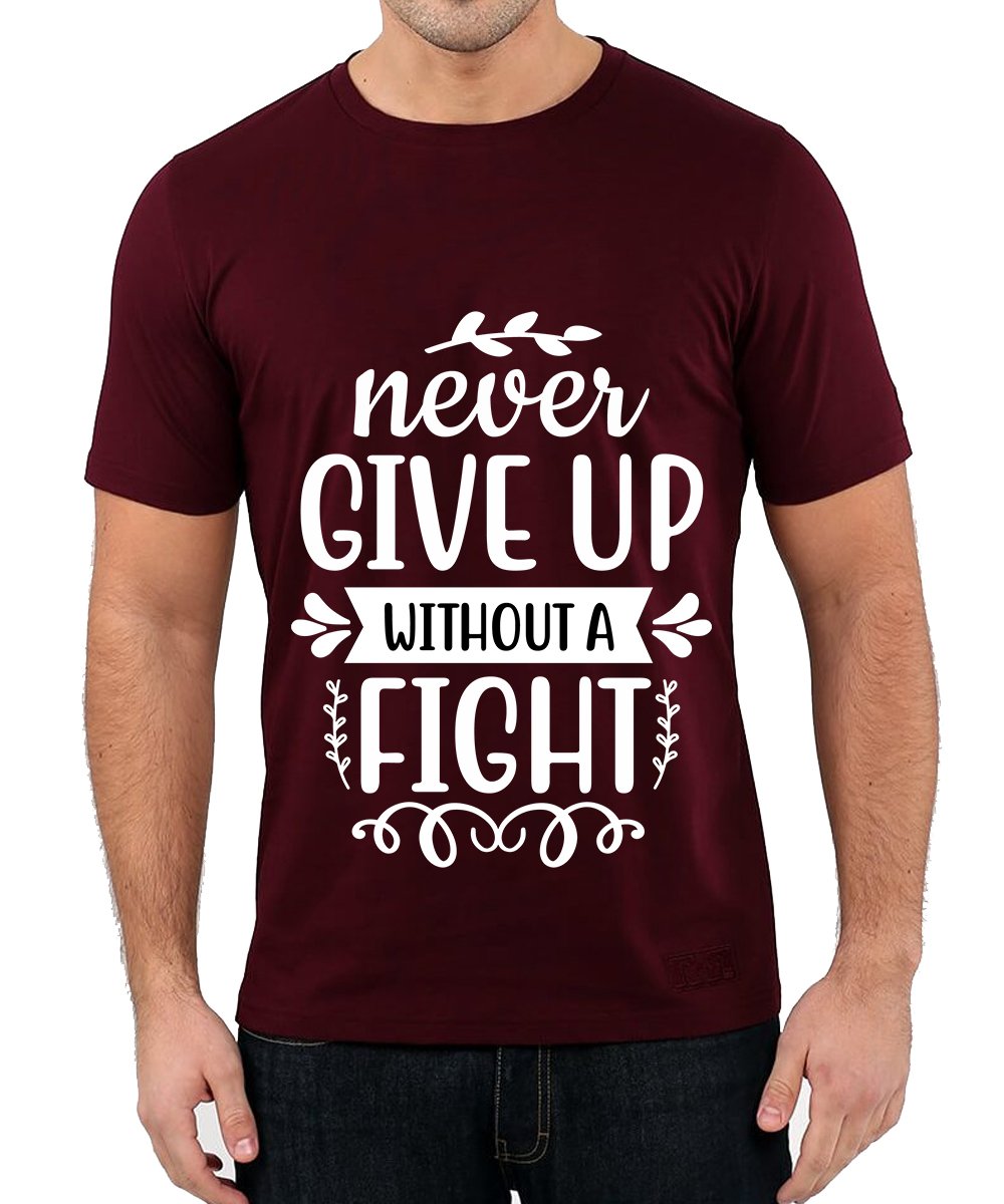 Caseria Men's Round Neck Cotton Half Sleeved T-Shirt With Printed Graphics - Fight Never