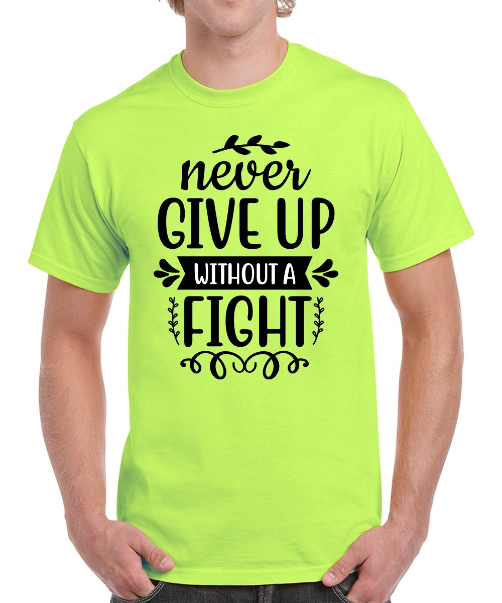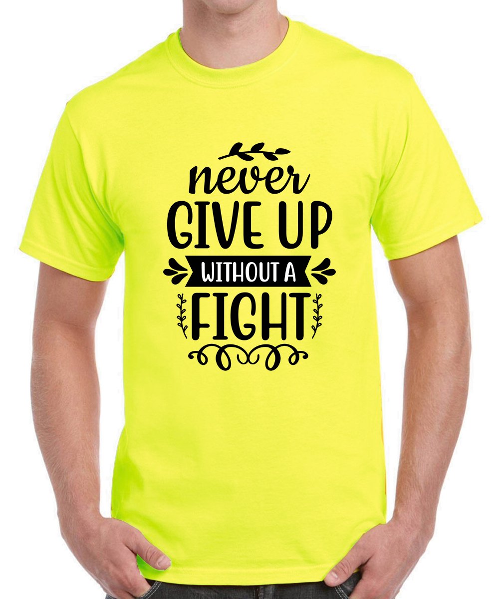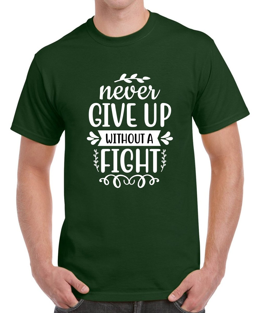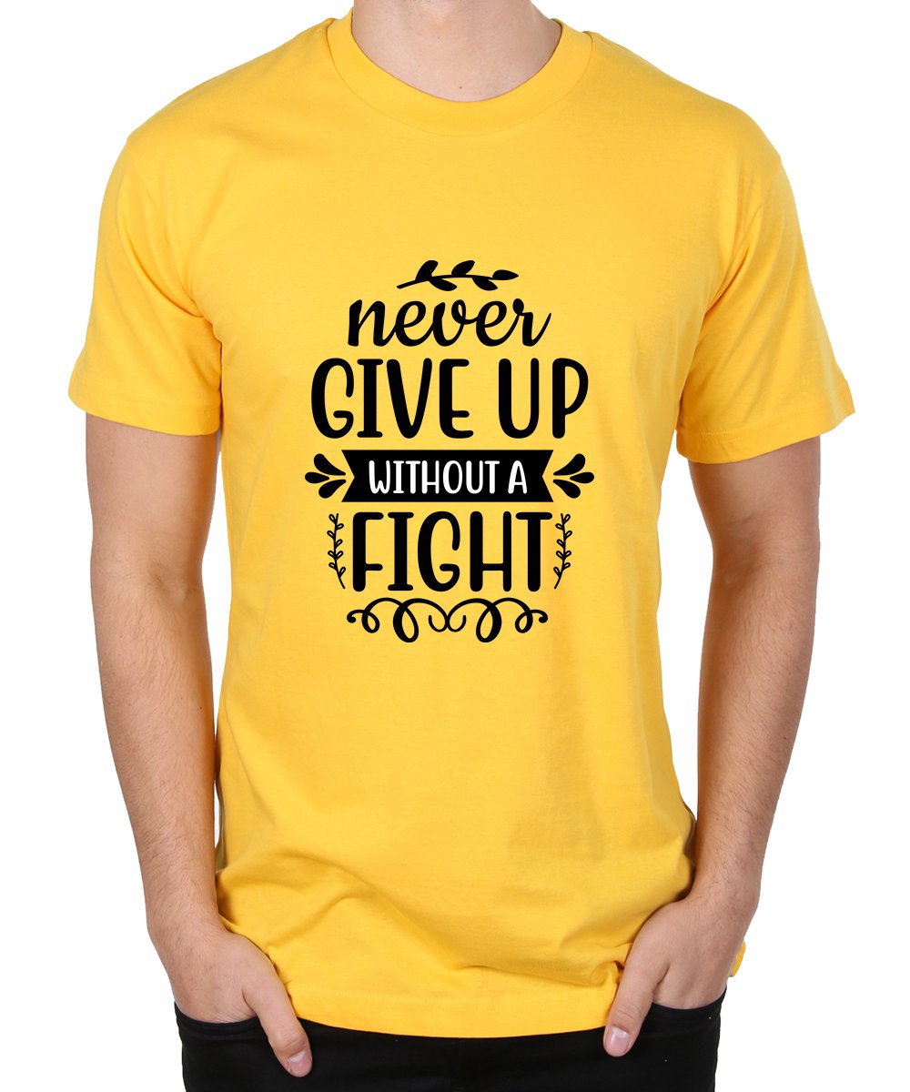 Caseria Men's Round Neck Cotton Half Sleeved T-Shirt With Printed Graphics - Fight Never