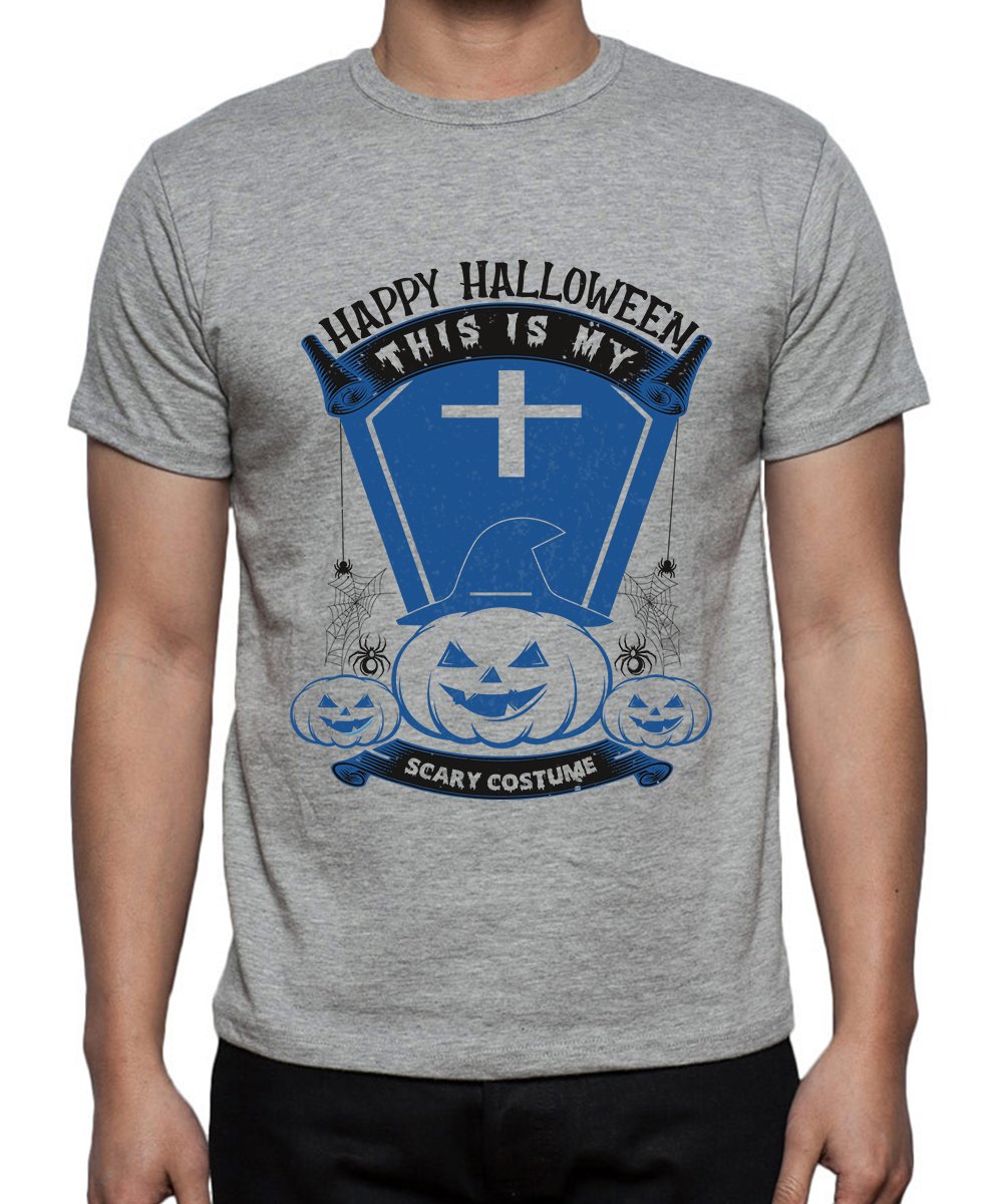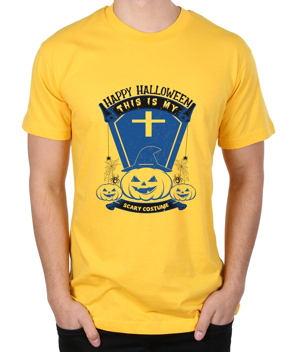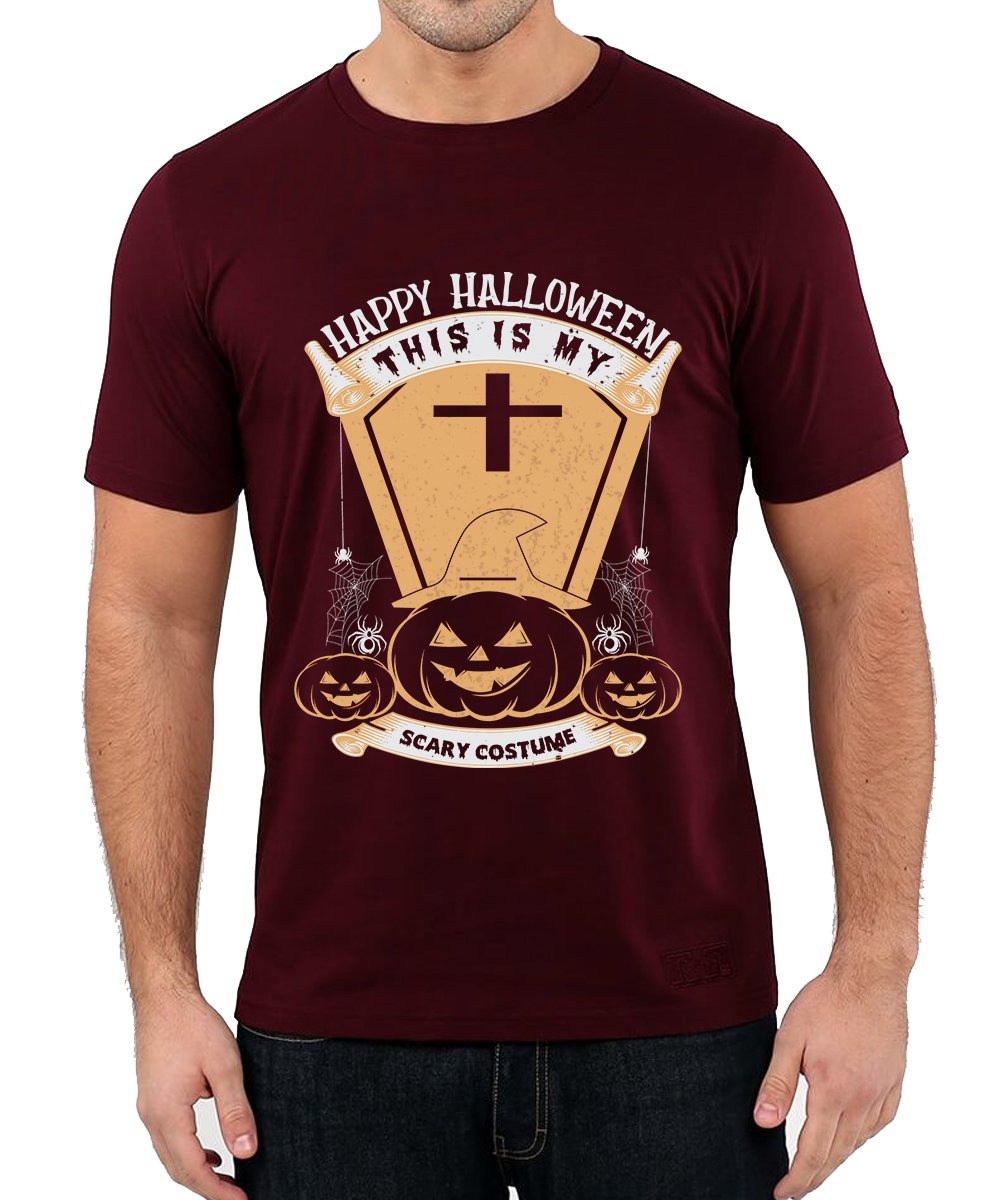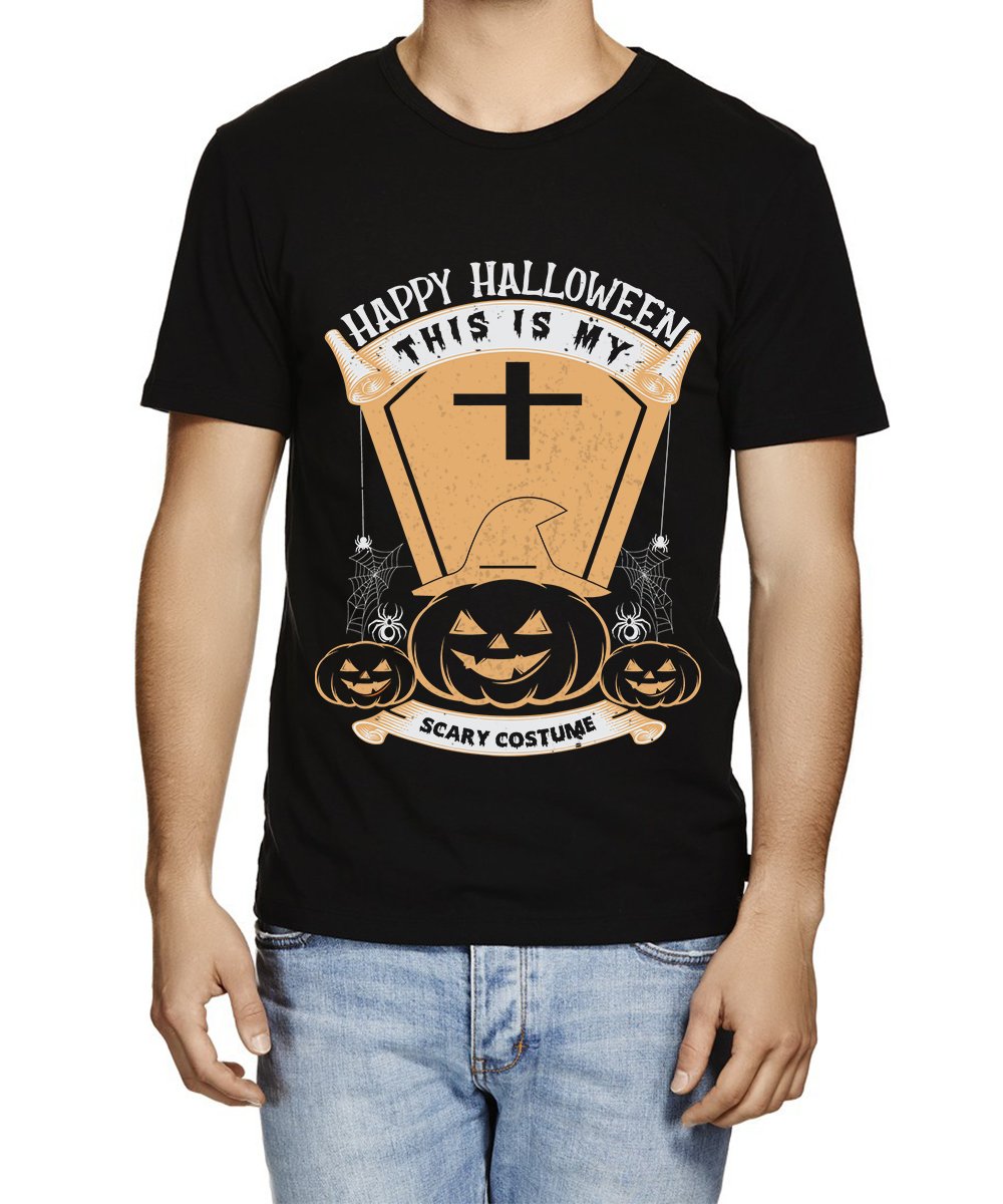 Caseria Men's Round Neck Cotton Half Sleeved T-Shirt With Printed Graphics - Happy My Scary